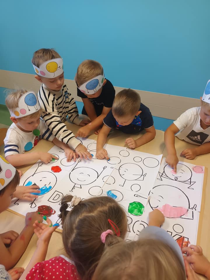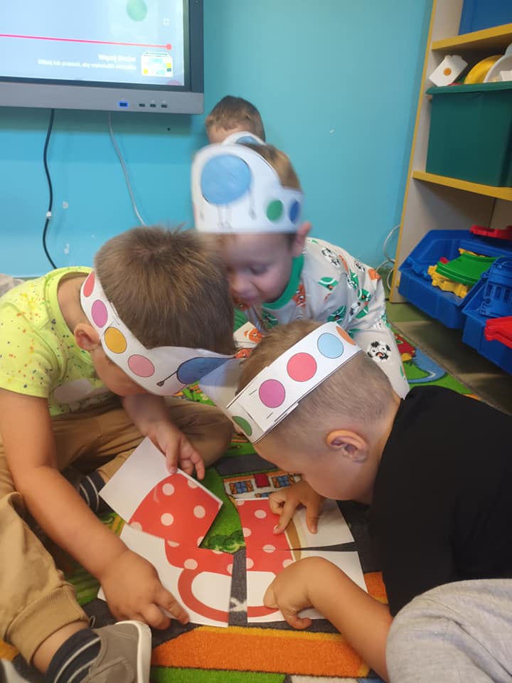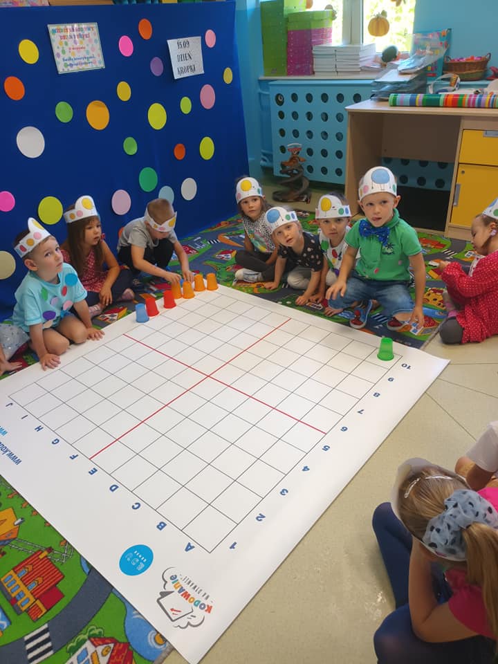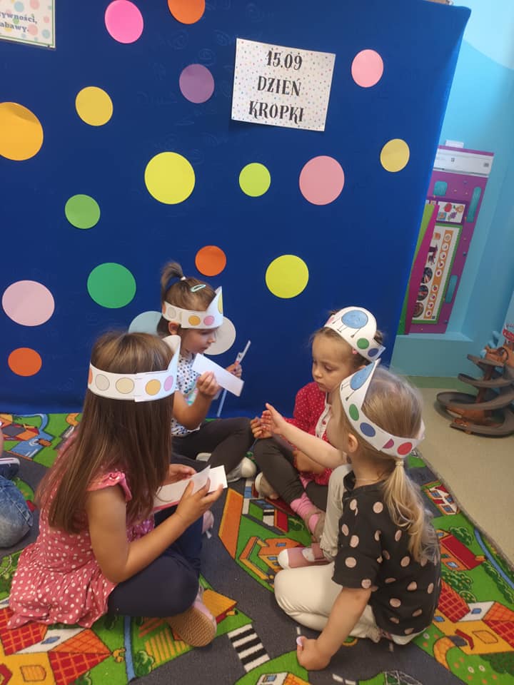 Międzynarodowy Dzień Kropki- jest to święto kreatywności, wiary we własne możliwości, odkrywania talentów. Podczas "kropkowych" zajęć dzieci poznały genezę tego święta, a także wykonywały wiele ciekawych tematycznie aktywności, m.in. układały puzzle ze wzorami pełnymi kolorowych kropek, ustawiały kubki na macie do kodowania zgodnie z przeczytaną instrukcją, stemplowały kropkowy obraz oraz brały udział w zabawach rytmicznych z wykorzystaniem kolorowych kropek.