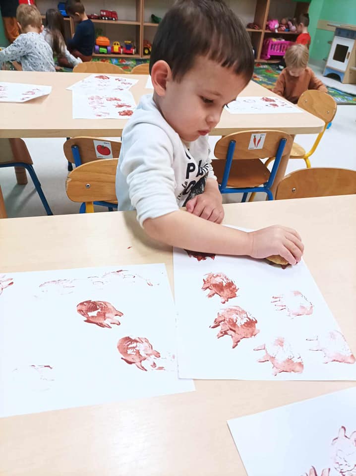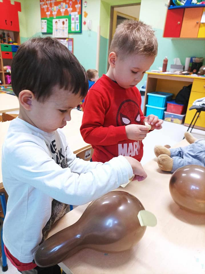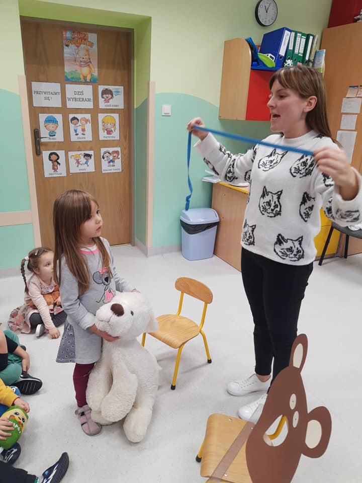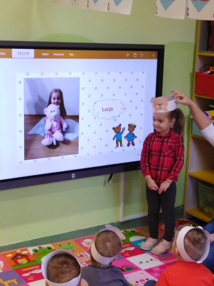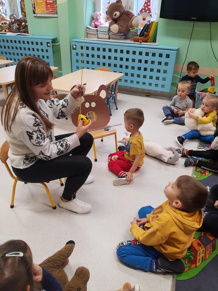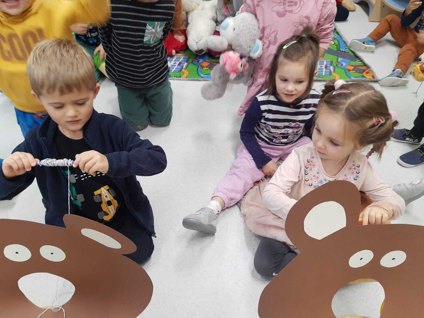 Dziś, 27 listopada, obchodziliśmy Światowy Dzień Pluszowego Misia. Z tej okazji każdy przedszkolak mógł przynieść z domu swojego ulubionego misia, którego, podczas zajęć, zaprezentował na forum grupy. Poznaliśmy imiona domowych misiów oraz zabawy, w które dzieci najbardziej lubią się z nimi bawić. Następnie zatańczyliśmy do piosenki „Jadą, jadą misie”. Wysłuchaliśmy wiersza Jana Brzechwy "Proszę Państwa, oto miś" i obejrzeliśmy fragment bajki o Misiu Uszatku. Porównywaliśmy wielkość pluszaków przy pomocy różnych narzędzi pomiaru, tj. miarki budowlanej, centymetra krawieckiego, linijki oraz stóp. Na koniec dnia zrobiliśmy balonikowe misie, zabawiliśmy się w stemplowanie niedźwiedzich łap, a także przystąpiliśmy do "zawodów w zjadanie makaronu na czas". Oczywiście nie obeszło się bez ulubionej zabawy w "Starego niedźwiedzia. Poniedziałkowy dzień był pełen uśmiechu, radości oraz wspólnej zabawy.