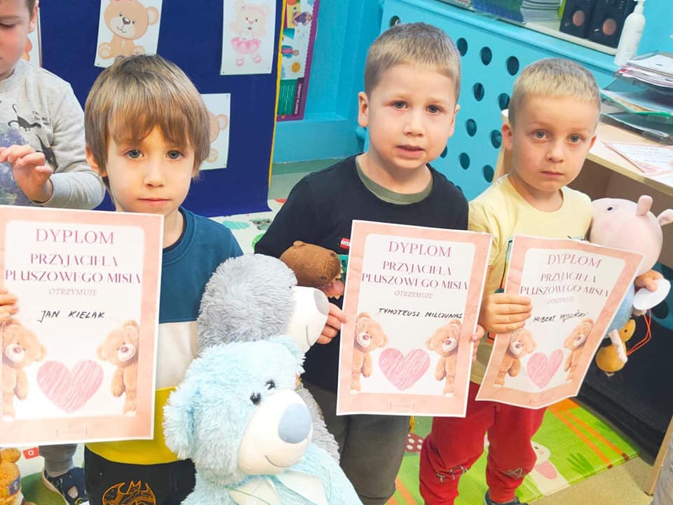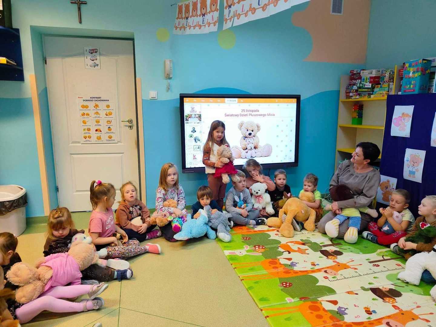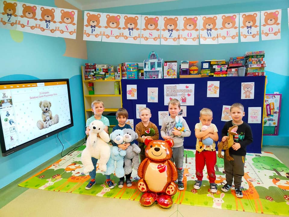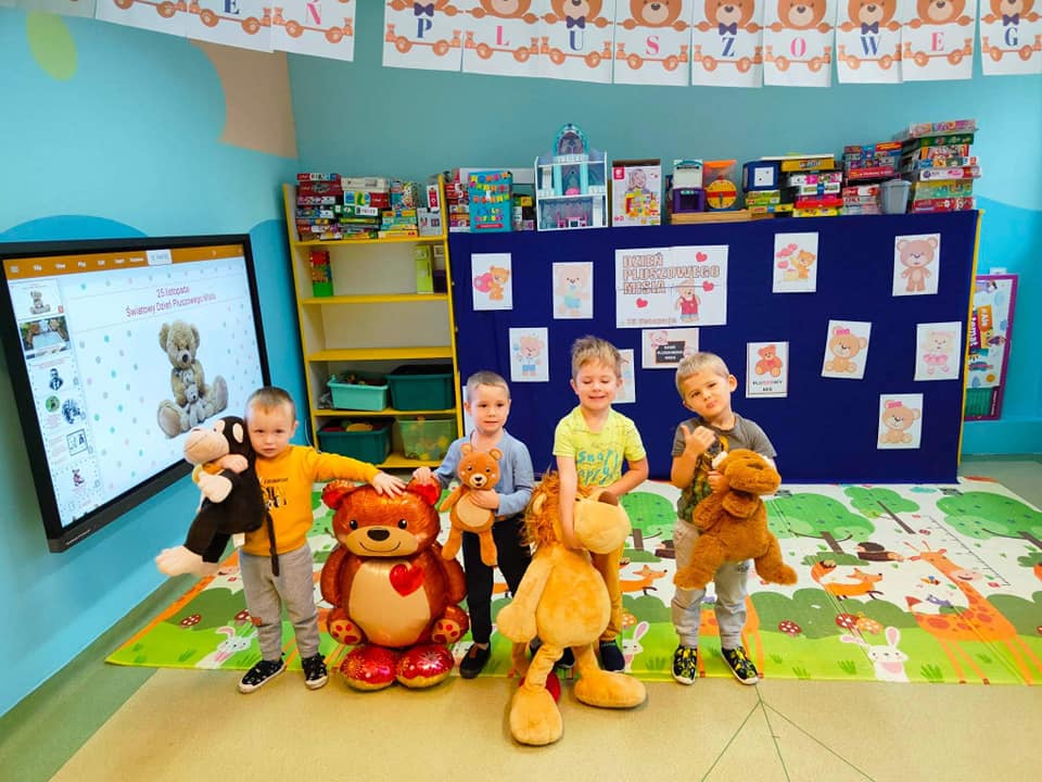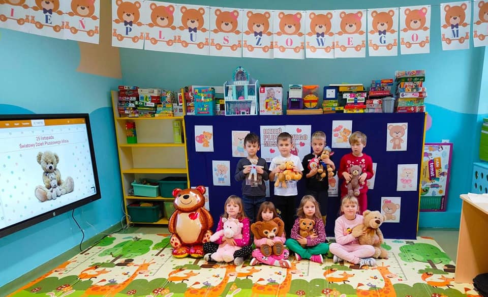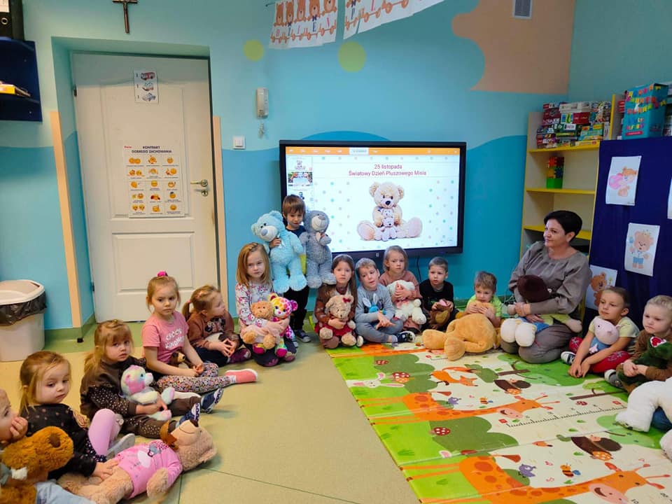 W dniu 25 listopada wszystkie dzieci z naszego przedszkola uroczyście obchodziły,, Światowy Dzień Pluszowego Misia".W naszym przedszkolu obchodzenie tego święta to już tradycja. Dzięki uprzejmości rodziców obejrzeliśmy zdjęcia ulubionych misiów naszych przedszkolaków . Następnie dzieci poznały historię powstania pluszowego misia oraz rozpoznawały misie z dziecięcych bajek. Przedszkolaki odgadywały zagadki związane z misiami, liczyły miodek
