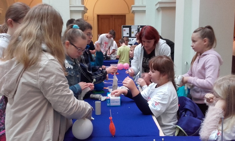 Przez trzy godziny otaczała nas duża grupa zaciekawionych, zarówno dzieci, jak i dorosłych. Zatarły się wszelkie bariery. Wszyscy podchodzili, słuchali co mamy do powiedzenia i z wielką radością, uwagą i zaangażowaniem, przy naszym wsparciu, wykonywali pokazywane przez nas doświadczenia.