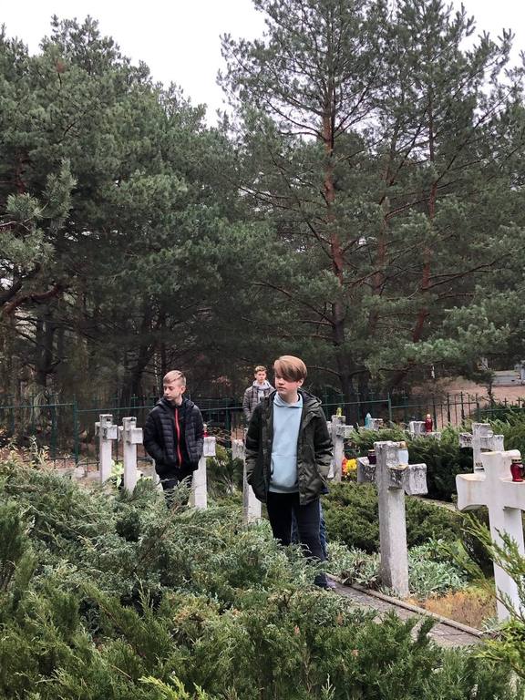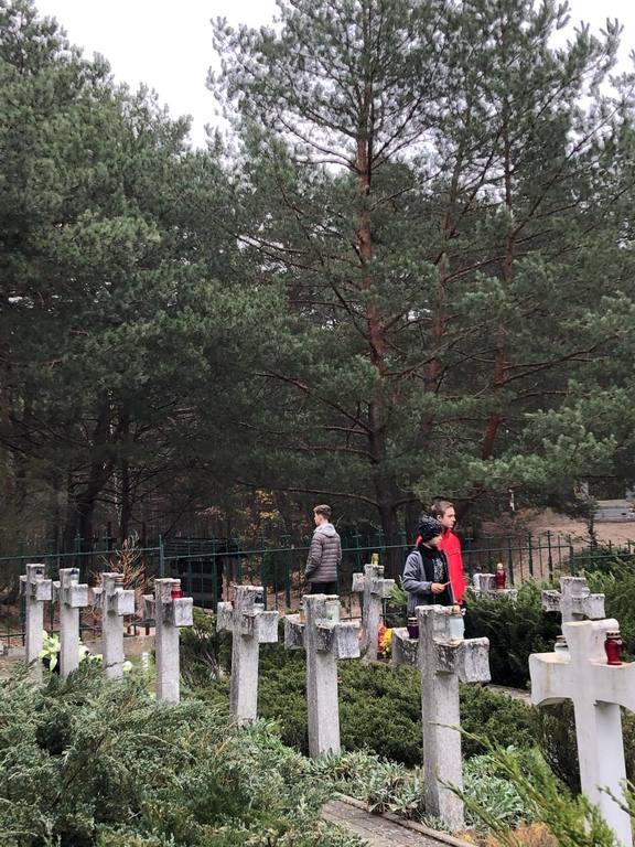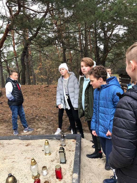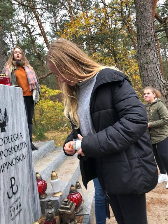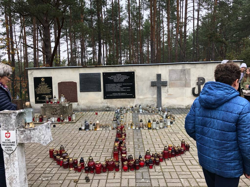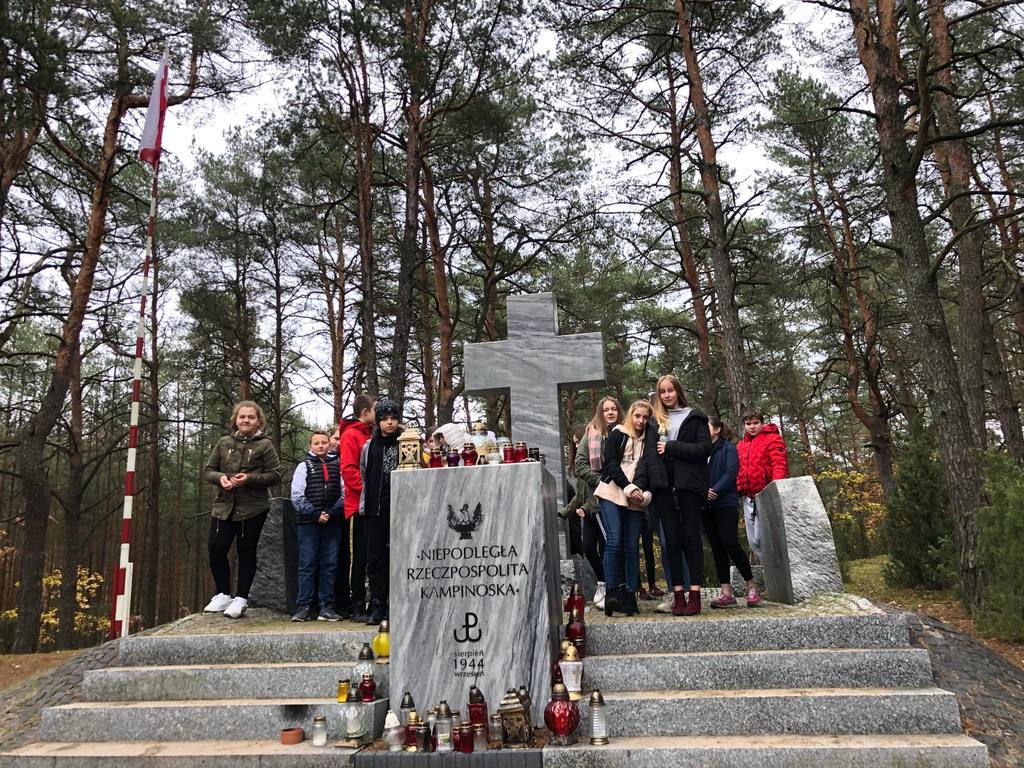 Uczniowie klasy O oraz klas VI, VII i VIII odwiedzili cmentarz wojenny w Wierszach na terenie Puszczy Kampinoskiej, gdzie spoczywa 54 żołnierzy Grupy AK "Kampinos" oraz zapalili znicze.