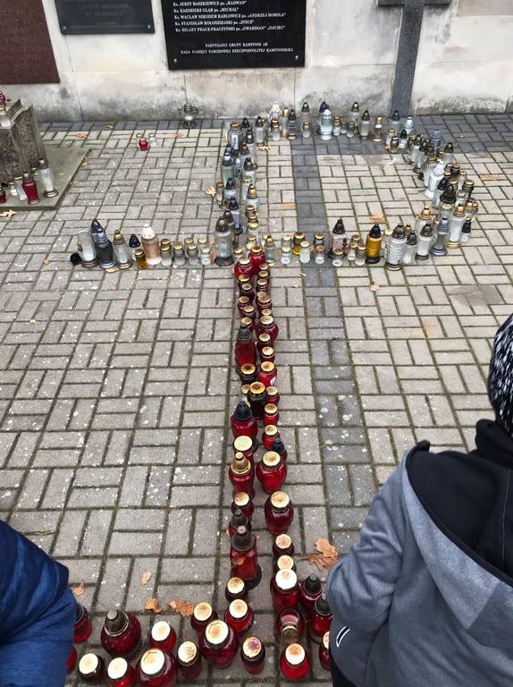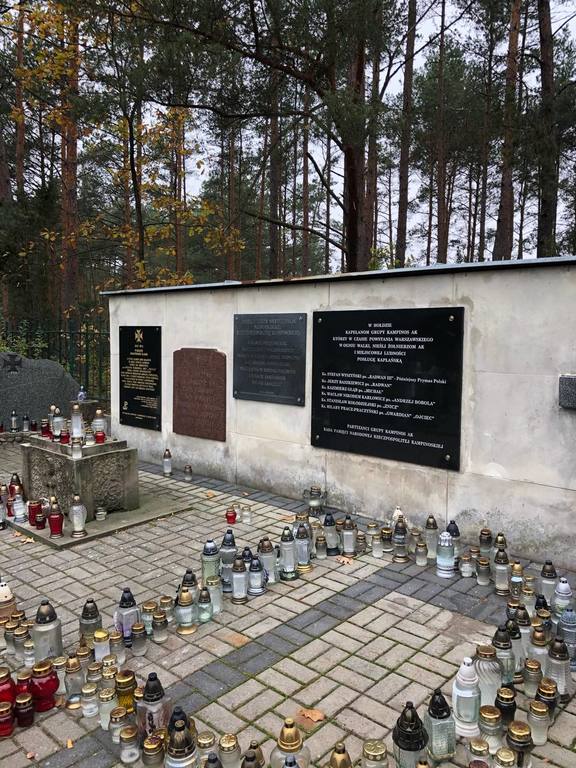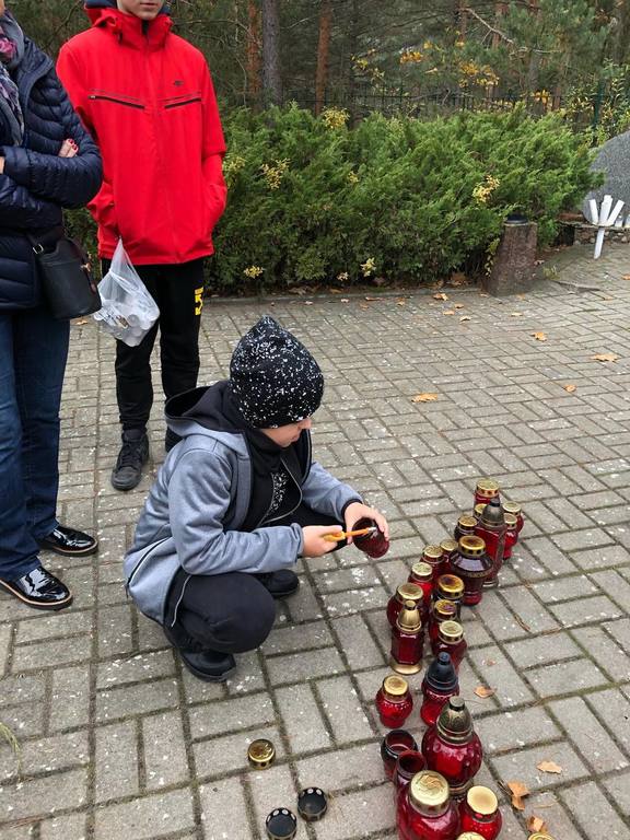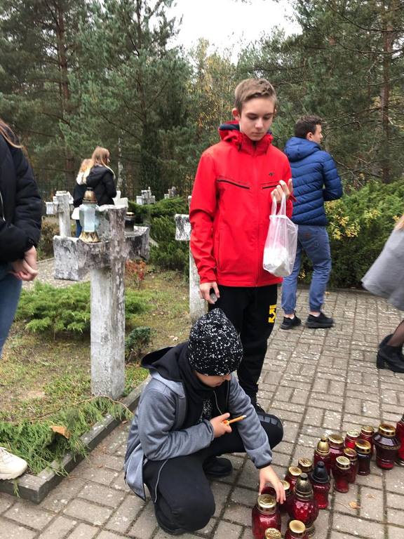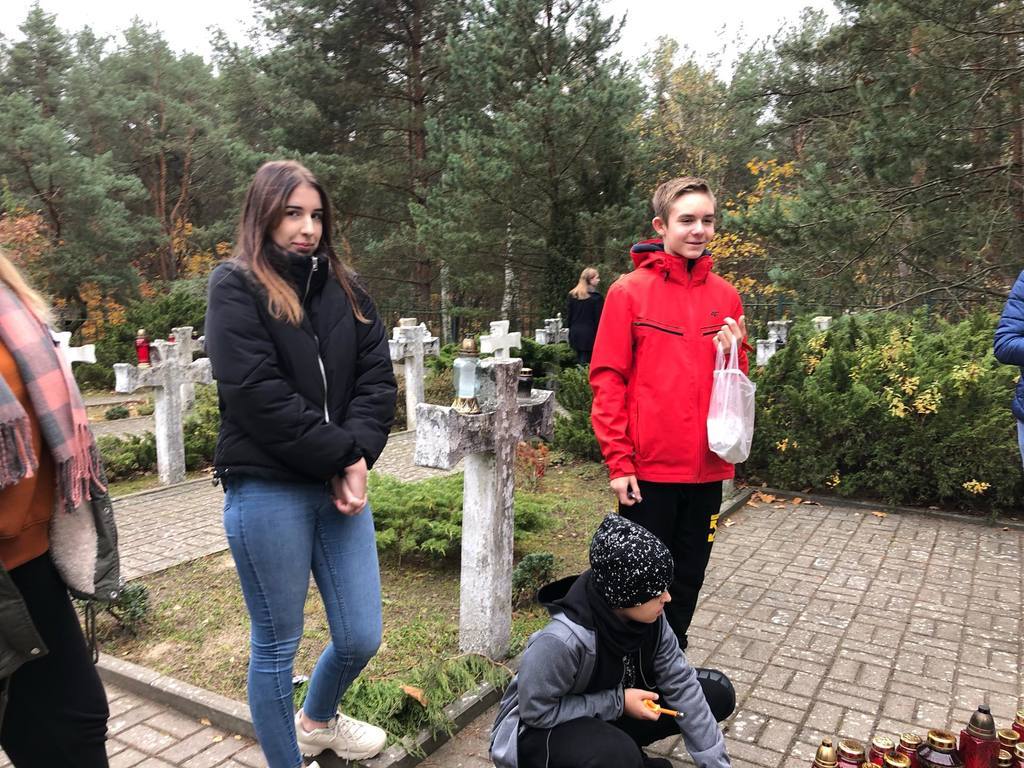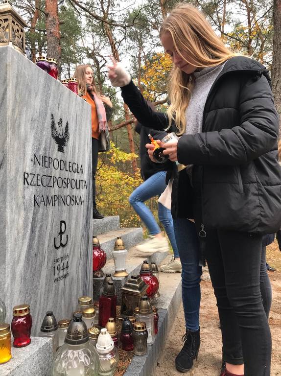 Uczniowie klasy O oraz klas VI, VII i VIII odwiedzili cmentarz wojenny w Wierszach na terenie Puszczy Kampinoskiej, gdzie spoczywa 54 żołnierzy Grupy AK "Kampinos" oraz zapalili znicze.