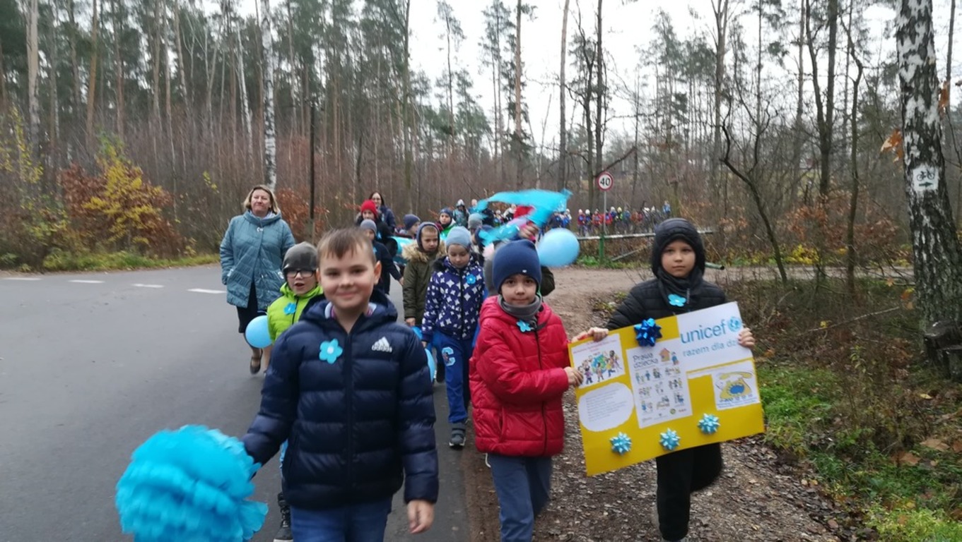 Dnia 20 listopada 2019r. uczniowie naszej Szkoły świętowali 30-tą rocznicę uchwalenia Konwencji o prawach dziecka. Przyłączyliśmy się jak wiele innych miast w Polsce do tych szczególnych obchodów, ubierając się na niebiesko, tworząc niebieskie gazetki w klasach o tematyce Praw dziecka, tworząc artykuły, robiąc niebieskie transparenty oraz biorąc udział w niebieskim spacerze po okolicy Szkoły.