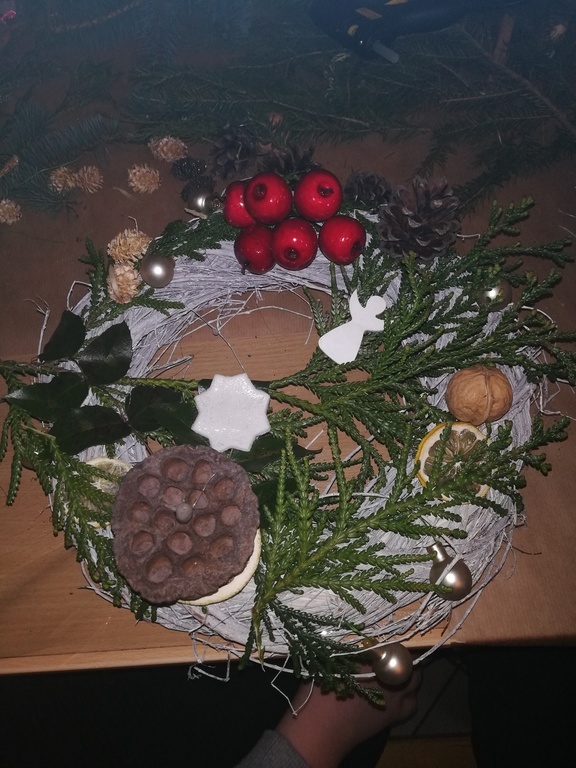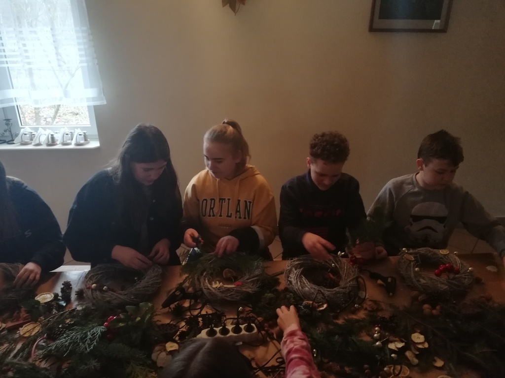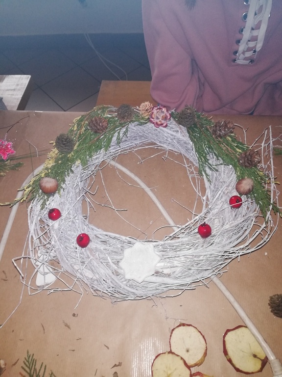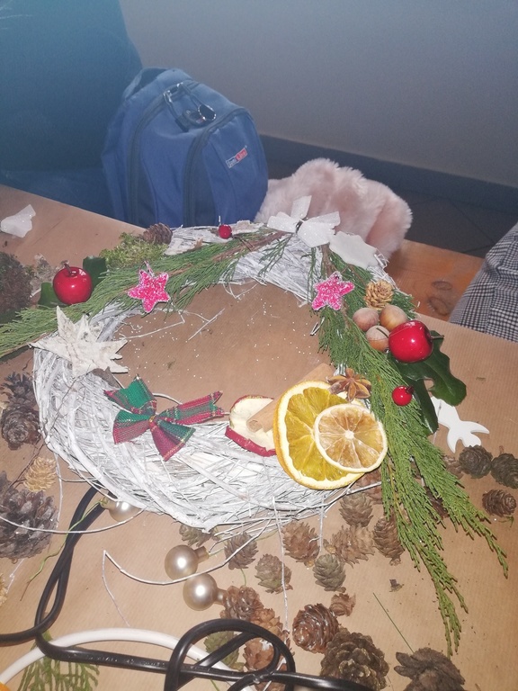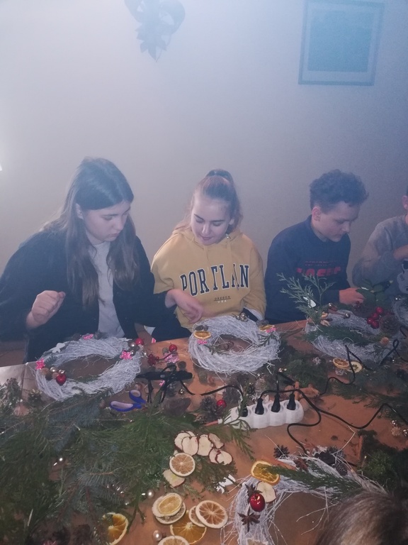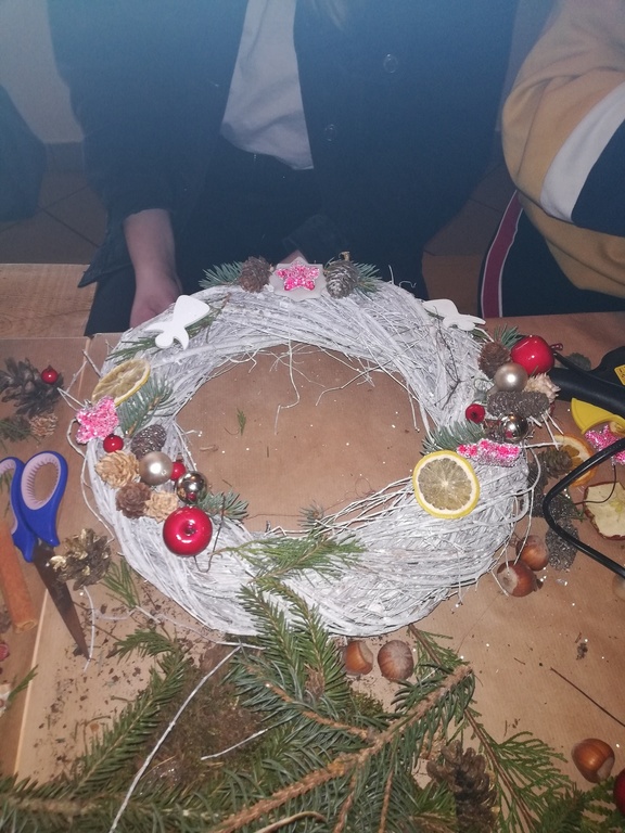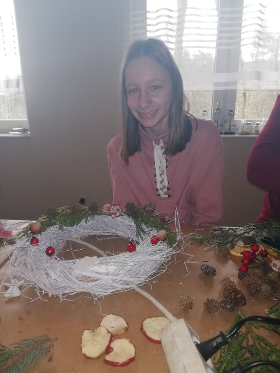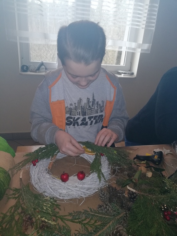 W dniu 17.12.2019 roku uczniowie z klasy VI i kolegą z klasy V uczestniczyli w wycieczce do Pomiechówka i Szczypiorna nad Wkrą. Dzieci odwiedziły kino w Pomiechówku gdzie obejrzały jedną z najnowszych polskich komedii. Następnie udali się do Modrzewiowego Zakątka w Szczypiornie nad Wkrą. Na miejscu uczniowie brali udział w warsztatach ozdób świątecznych wykonywanych własnoręcznie na podkładzie z gałązek. Uczestnicy wycieczki wykazywali się zmysłem artystycznym i pomysłowością wykonując stroik świąteczny, który zabrali do swoich domów. Strojenie naszych domów w okresie Świąt Bożego Narodzenia, było kiedyś tradycją, którą nasi uczniowie starają się podtrzymywać i pielęgnować. Dzięki warsztatom zapachniało już Świętami Bożego Narodzenia, a nasi uczniowie zintegrowali się ze sobą.