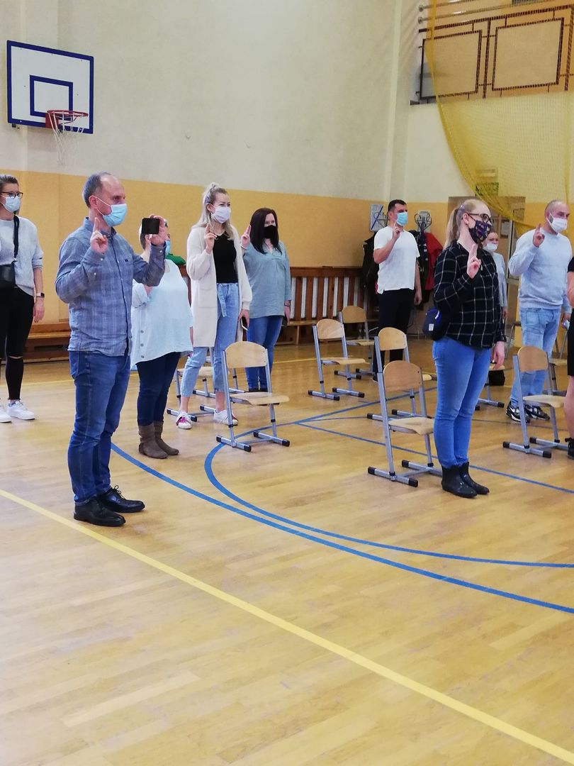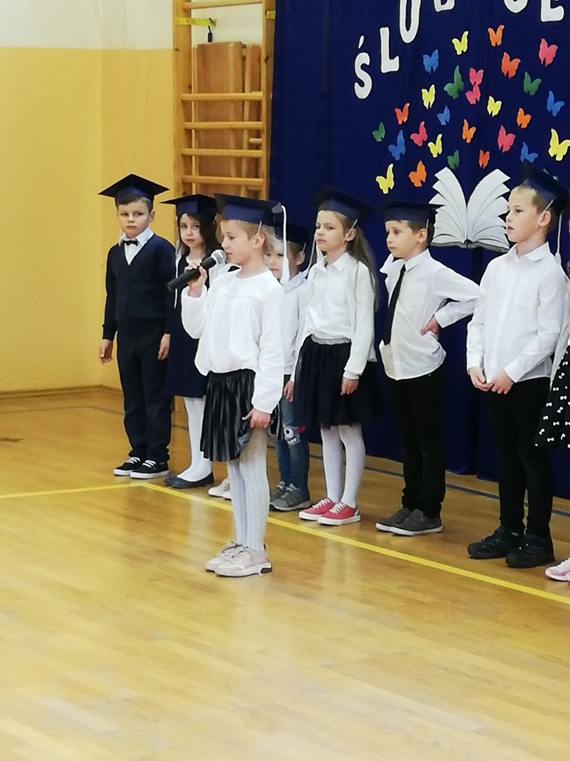 Pierwszoklasiści w obecności Dyrekcji Szkoły i Rodziców zaprezentowali krótki program artystyczny, w którym zdali pierwszy egzamin na ucznia.