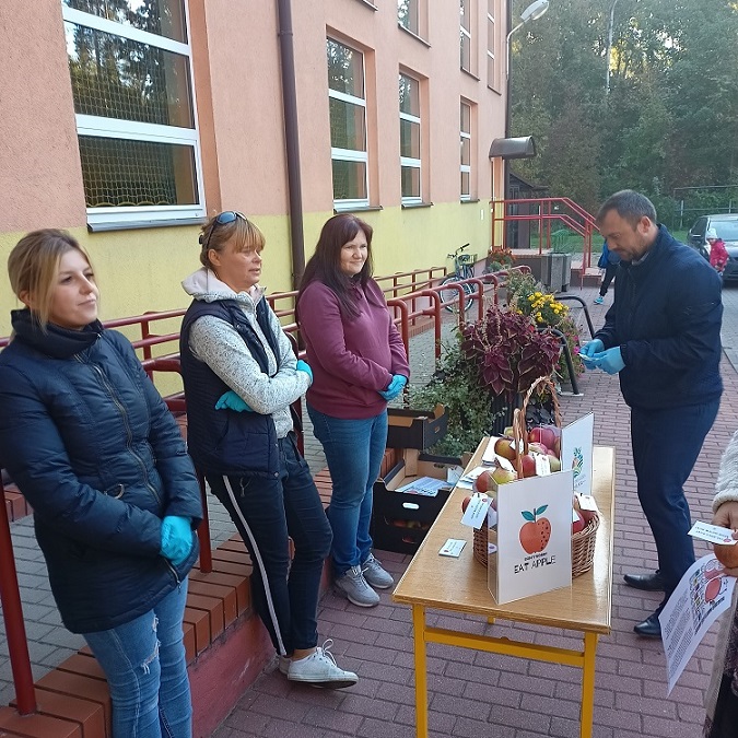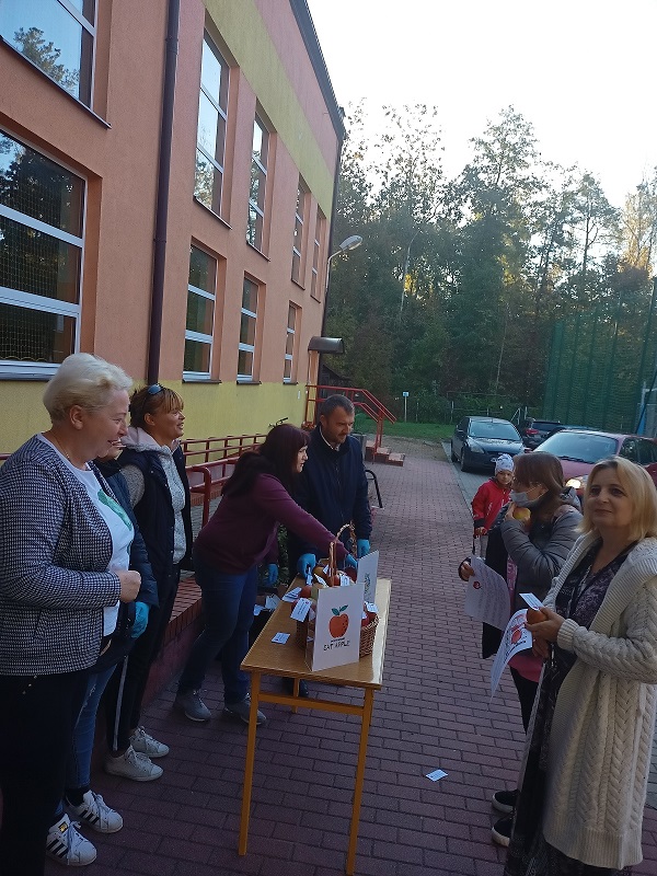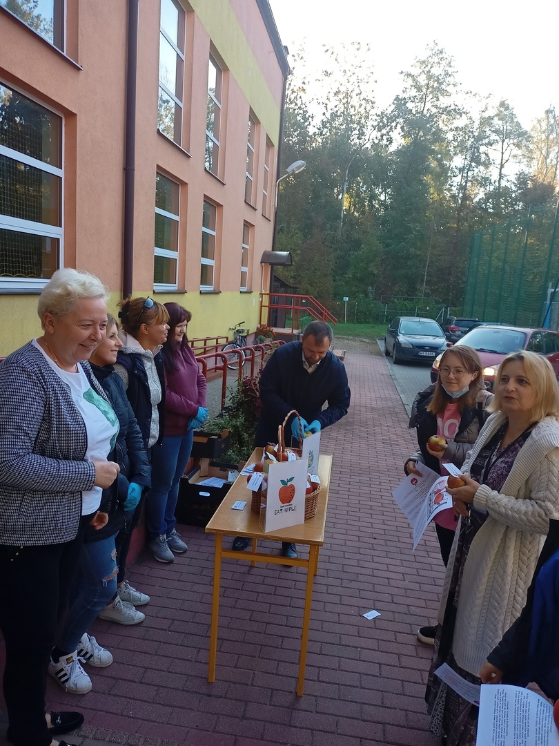 28 września 2021 r. świętowaliśmy "Światowy Dzień Jabłka". Rada Rodziców zakupiła dla wszystkich uczniów i pracowników szkoły owoce. Przed wejściem do szkoły zarząd Rady Rodziców częstował wchodzących smacznymi polskimi jabłkami.