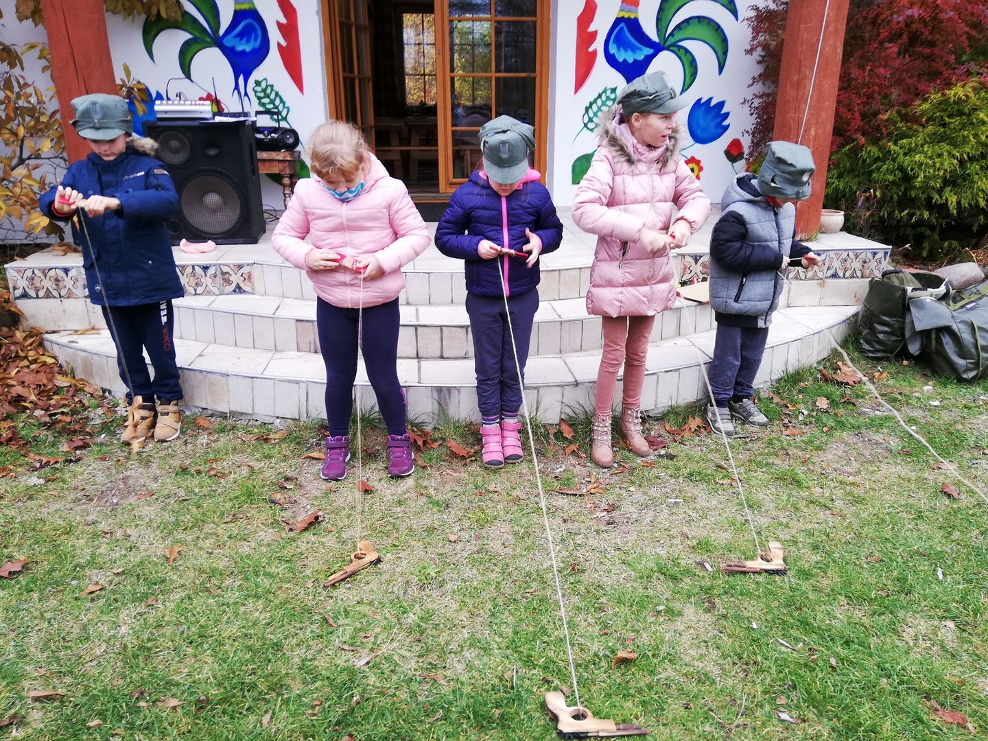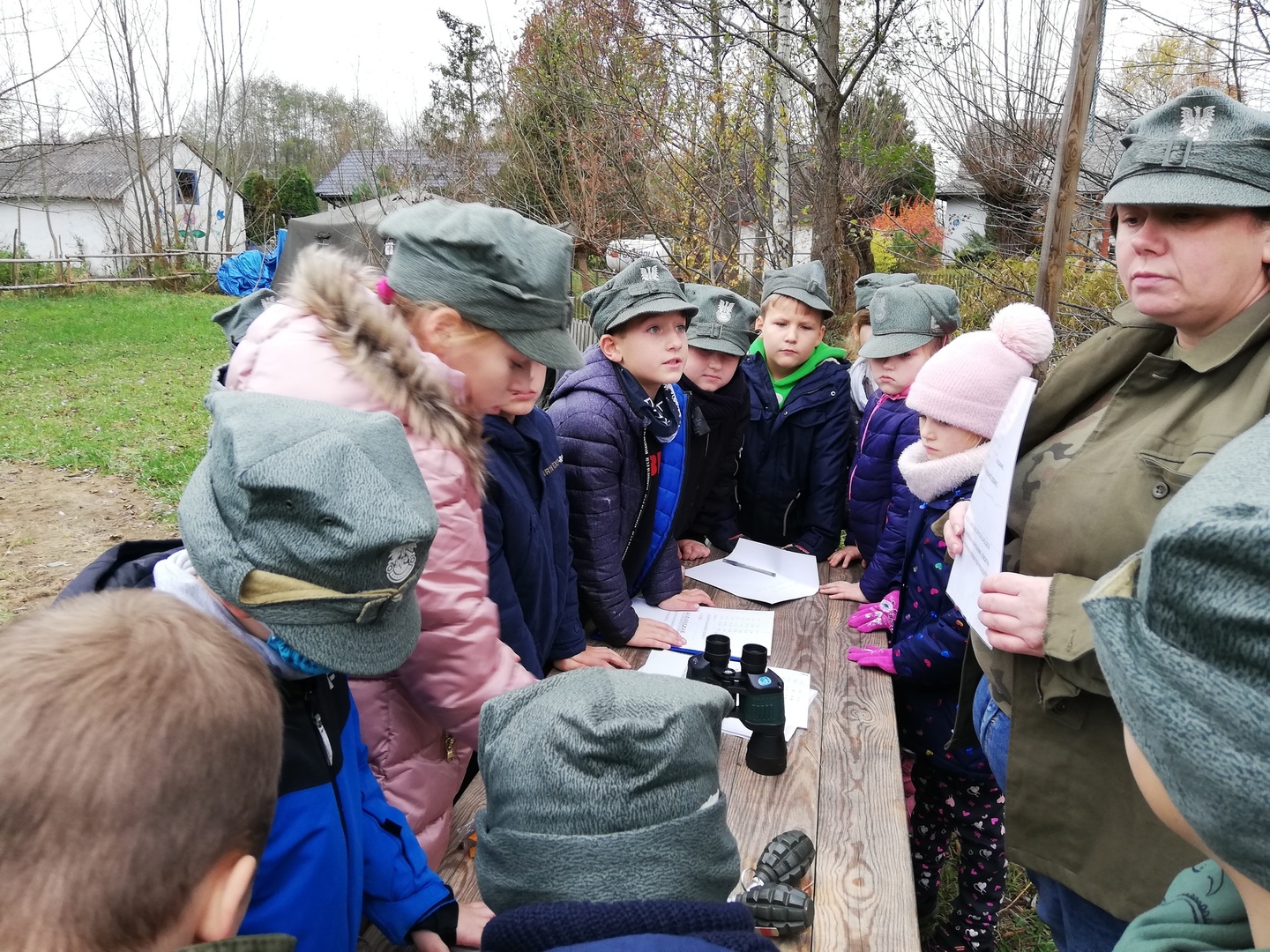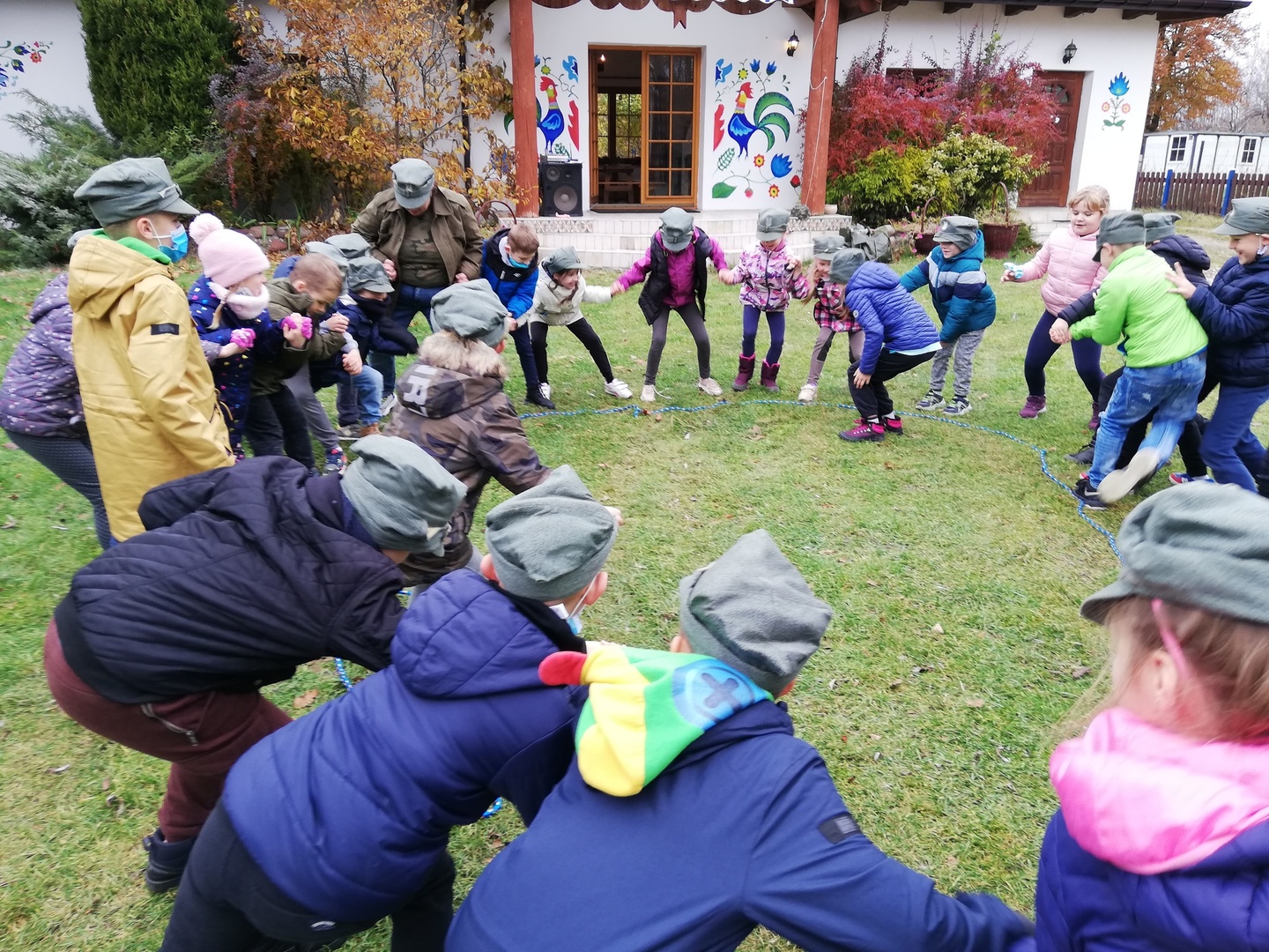 z Niepodległej Rzeczpospolitej Kampinoskiej (którzy mieszkali m. in. w Brzozówce), kiedy nie musieli walczyć z wrogiem. Wspólnie podejmowaliśmy się różnych codziennych zadań partyzantów takich jak np. produkcja partyzanckich dokumentów, szyfrowanie i odszyfrowanie meldunków, szukanie szpiegów i zwiadowców, szukanie niewypałów, konserwacja amunicji, znajdowanie zrzutów spadochronowych, rychtowanie mundurów, praca w szpitalu polowym, zdobywanie żywności. Mali partyzanci zostali zaproszeni na partyzancką zabawę: żołnierskie śpiewy i powitania. Na zakończenie wizyty dzieci otrzymały pamiątkowe dyplomy, oraz własnoręcznie zrobione odznaki i opaski. Po warsztatach pełnych wrażeń i fizycznych zmagań miło było usiąść przy ognisku i kiełbasce. A że pogoda dopisała, wszyscy wrócili uradowani, choć odrobinę zmęczeni.
