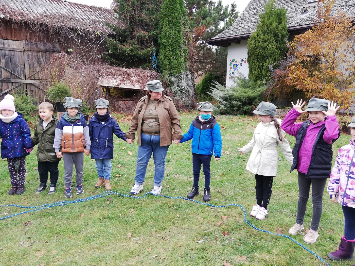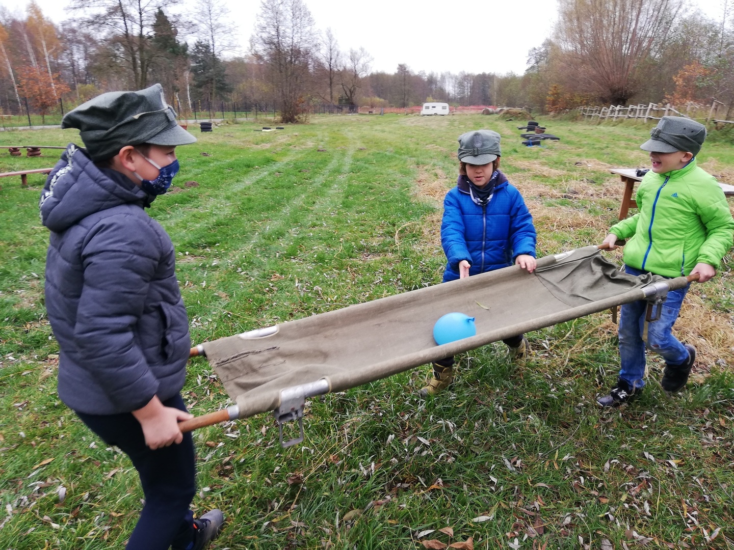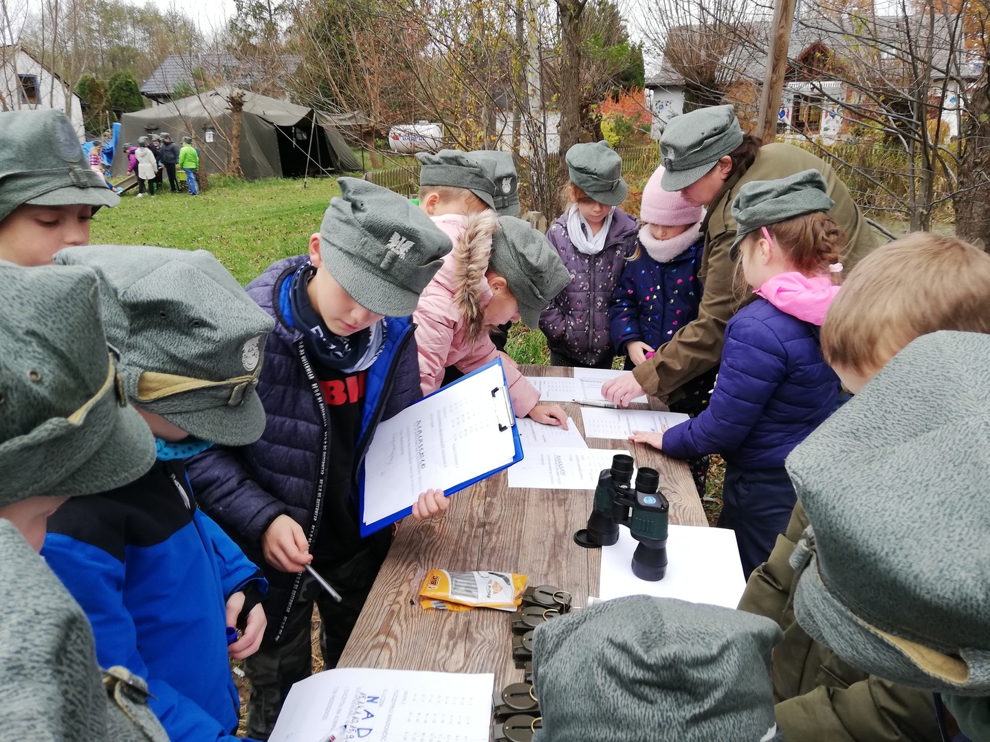 z Niepodległej Rzeczpospolitej Kampinoskiej (którzy mieszkali m. in. w Brzozówce), kiedy nie musieli walczyć z wrogiem. Wspólnie podejmowaliśmy się różnych codziennych zadań partyzantów takich jak np. produkcja partyzanckich dokumentów, szyfrowanie i odszyfrowanie meldunków, szukanie szpiegów i zwiadowców, szukanie niewypałów, konserwacja amunicji, znajdowanie zrzutów spadochronowych, rychtowanie mundurów, praca w szpitalu polowym, zdobywanie żywności. Mali partyzanci zostali zaproszeni na partyzancką zabawę: żołnierskie śpiewy i powitania. Na zakończenie wizyty dzieci otrzymały pamiątkowe dyplomy, oraz własnoręcznie zrobione odznaki i opaski. Po warsztatach pełnych wrażeń i fizycznych zmagań miło było usiąść przy ognisku i kiełbasce. A że pogoda dopisała, wszyscy wrócili uradowani, choć odrobinę zmęczeni.