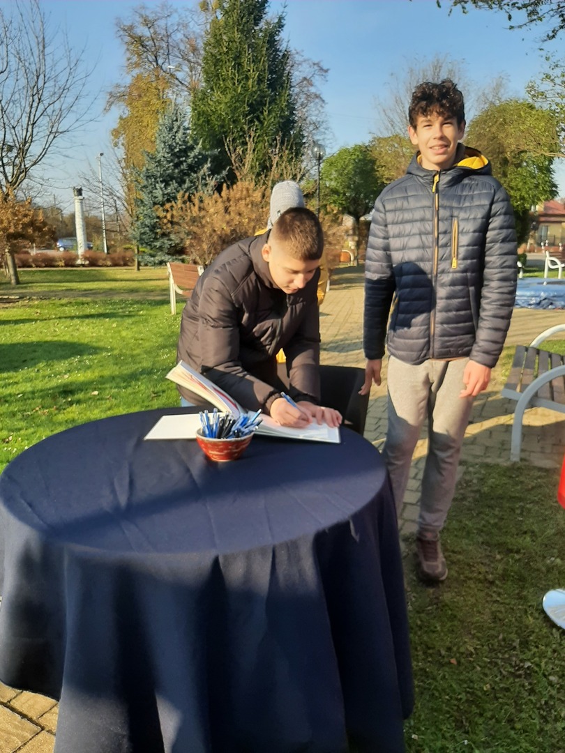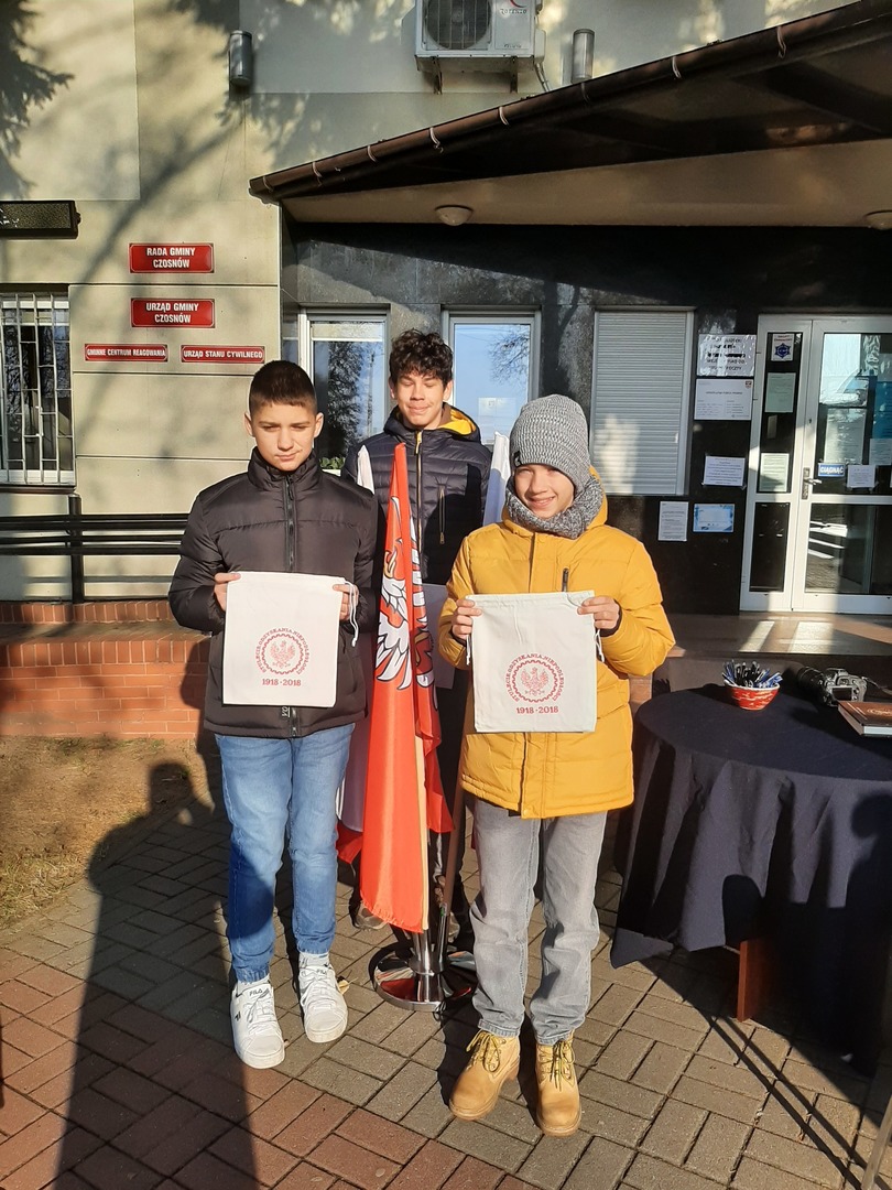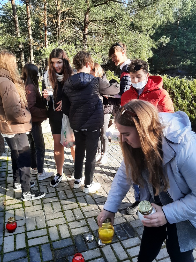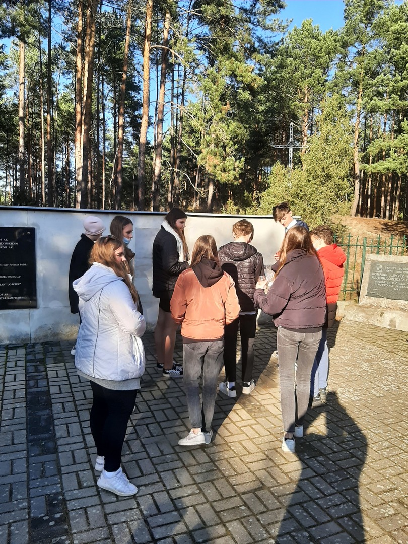 Uczniowie klasy VII razem z wychowawcą p. Piotrem Tytkowskim i nauczycielem plastyki p. Justyną Nowińską wzięli udział w specjalnym spacerze od szkoły do Pomnika Orła w Czosnowie. Uczestnicy wyprawy złożyli pod pomnikiem kwiaty i zapalili znicze.