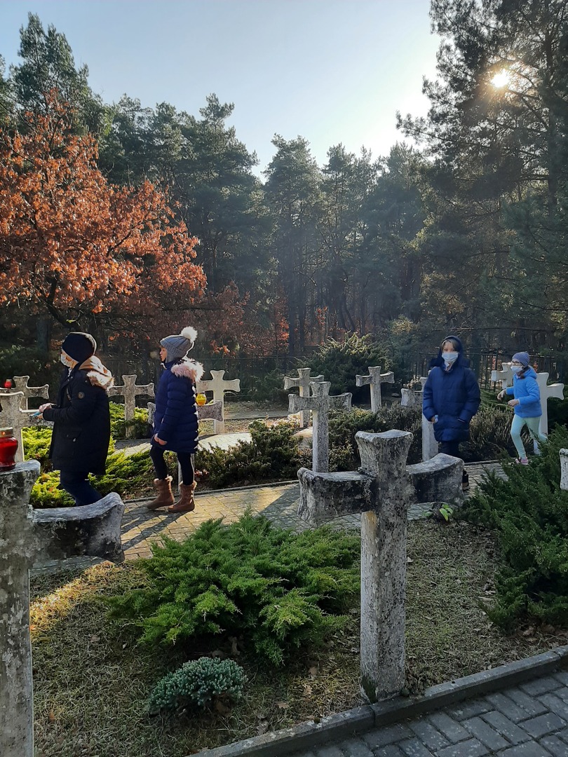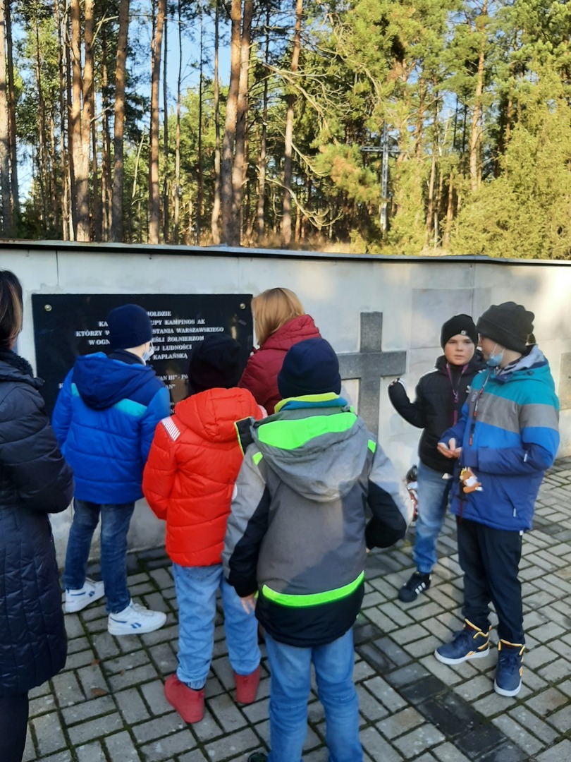 Uczniowie klas: IV, V i VIII po uroczystym apelu pojechali na cmentarz w Wierszach, aby zapalić znicze by uczcić pamięć bohaterów walczących w ramach Grupy Kampinos. Nauczycielki języka polskiego p. Katarzyna Trejber i historii p. Ewa Dudek podkreśliły wagę tego święta w historii narodu polskiego.