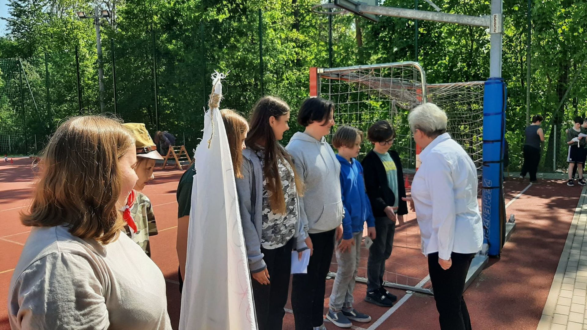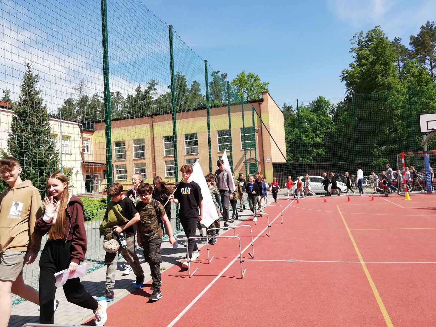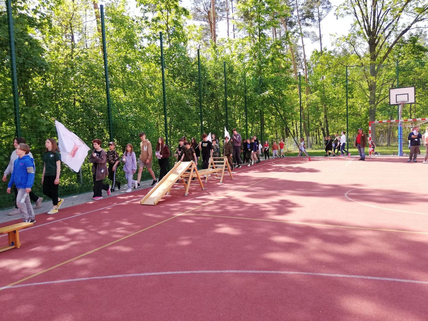 Po części oficjalnej wszystkie dzieci zostały podzielone na zespoły, które pod kierunkiem nauczycieli wzięli udział w specjalnie przygotowanym biegu patrolowym, gdzie zaangażowały się w wykonanie wielu zadań w przygotowanych bazach.