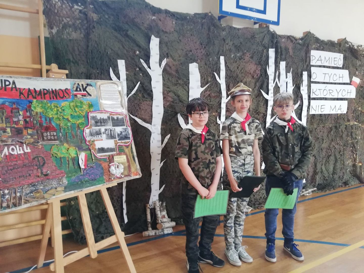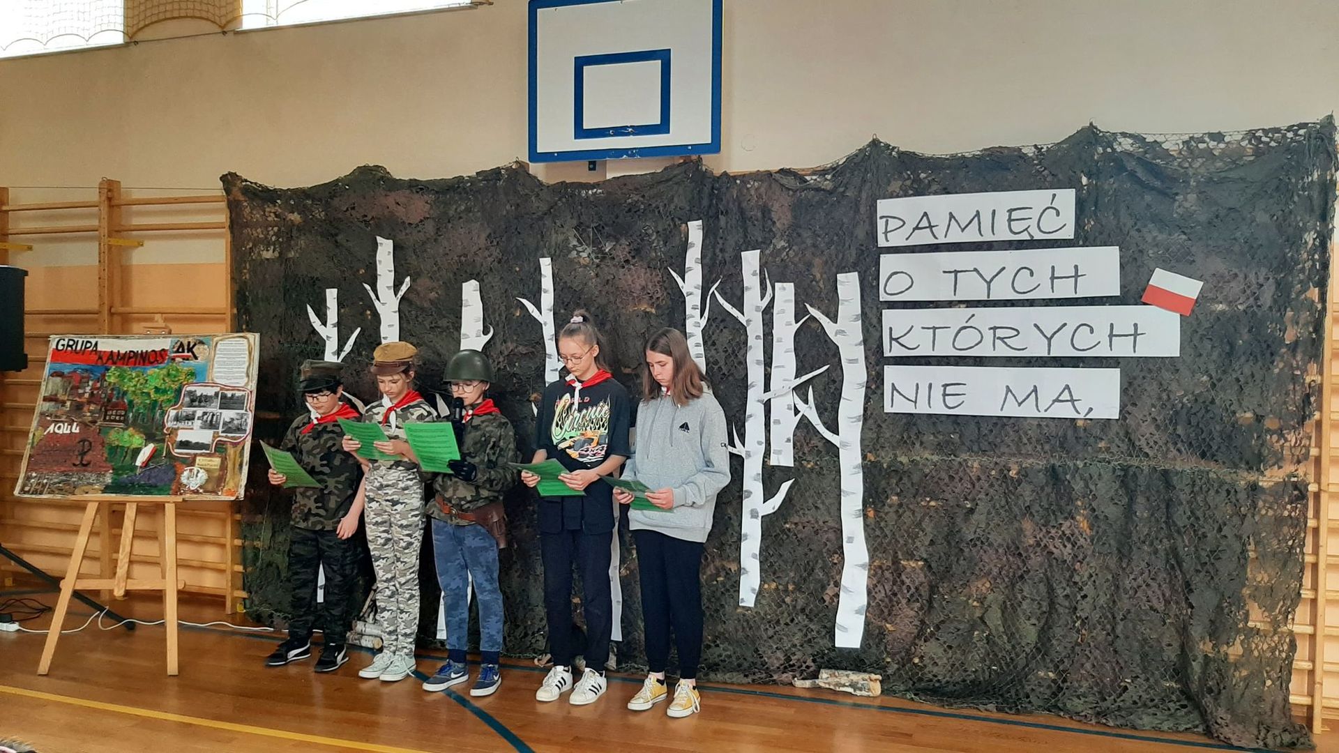 W tym roku święto naszej szkoły obchodziliśmy w piątek 20 maja 2022 roku. Tego dnia wspominaliśmy patrona naszej szkoły i rocznicę nadania placówce imienia „Grupy Kampinos” AK. Uczniowie, rodzice i nauczyciele zebrali się w odświętnie przystrojonej sali gimnastycznej, aby wysłuchać przygotowanego specjalnie na tak podniosłą chwilę wystąpienia uczniów.