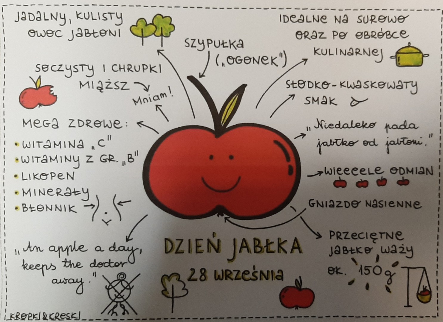 29 września 2022 roku na uczniów i pracowników szkoły czekała zdrowa niespodzianka. Z samego rana pod szkołą odbyła się akcja propagująca jedzenie owoców. Kolejny raz pomysłodawcy akcji (Rada Rodziców) postanowili uhonorować skarb naszych owocowych upraw – jabłko.