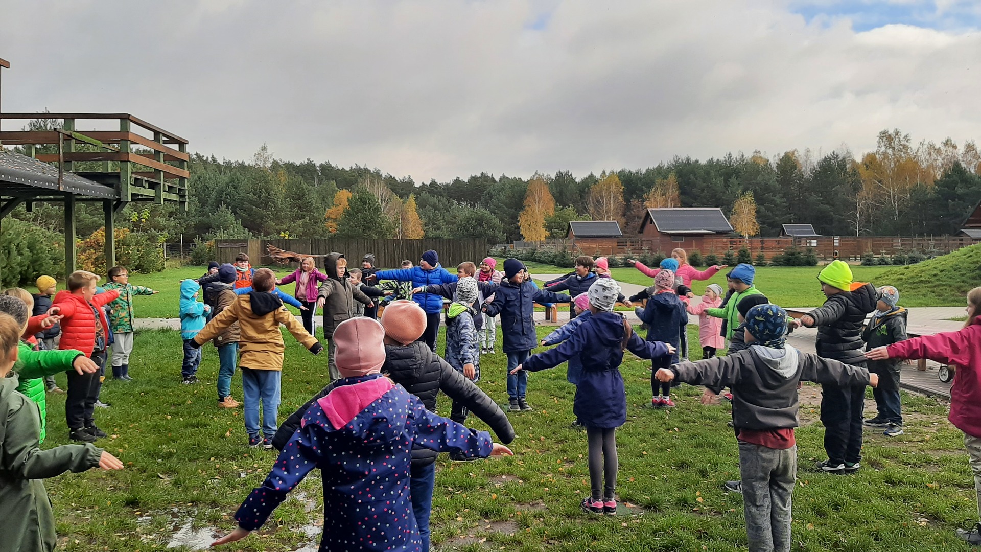 W środę (19.10.2022 r.) tuż przed pierwszym dzwonkiem uczniowie klas 0, II, III i IV zebrali się przed szkolą na specjalna zbiórkę. Tego dnia dzieci razem ze swoimi nauczycielami odbyły niezapomnianą wycieczkę do Bud Iłowskich gdzie znajduje się „Frajdalandia”.