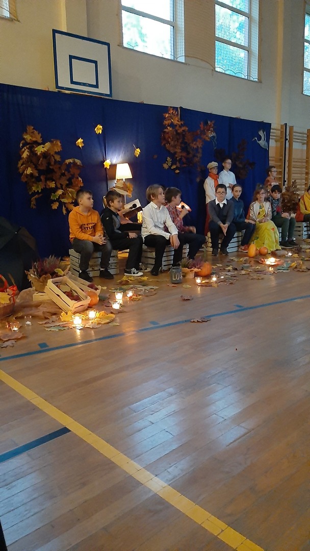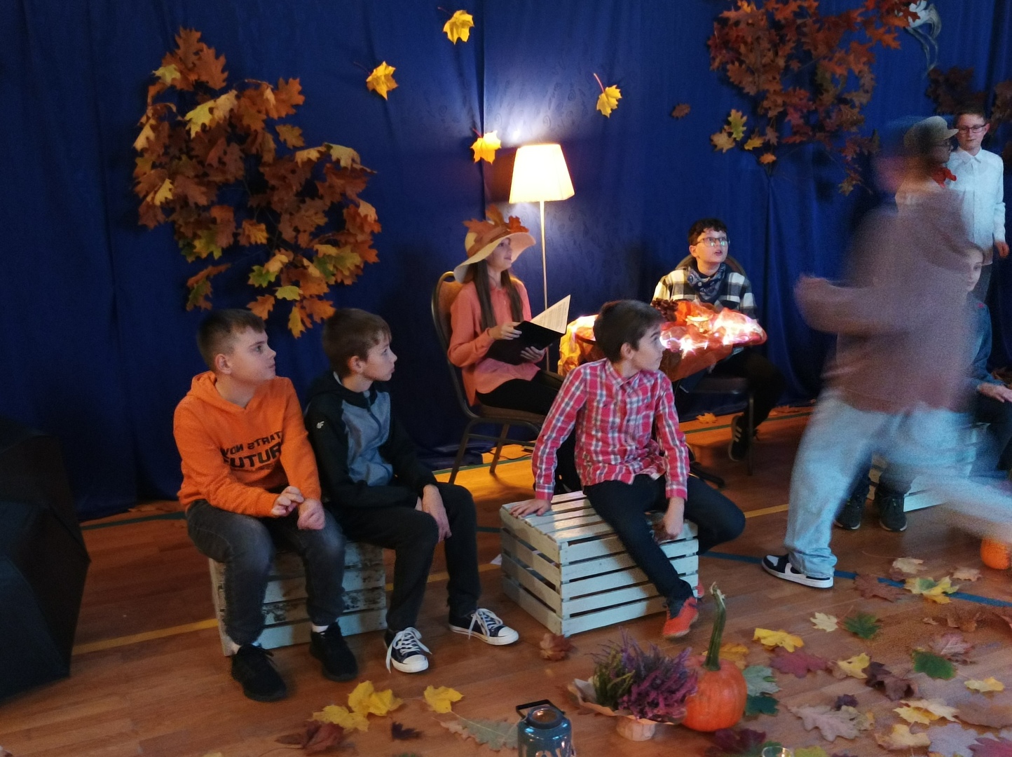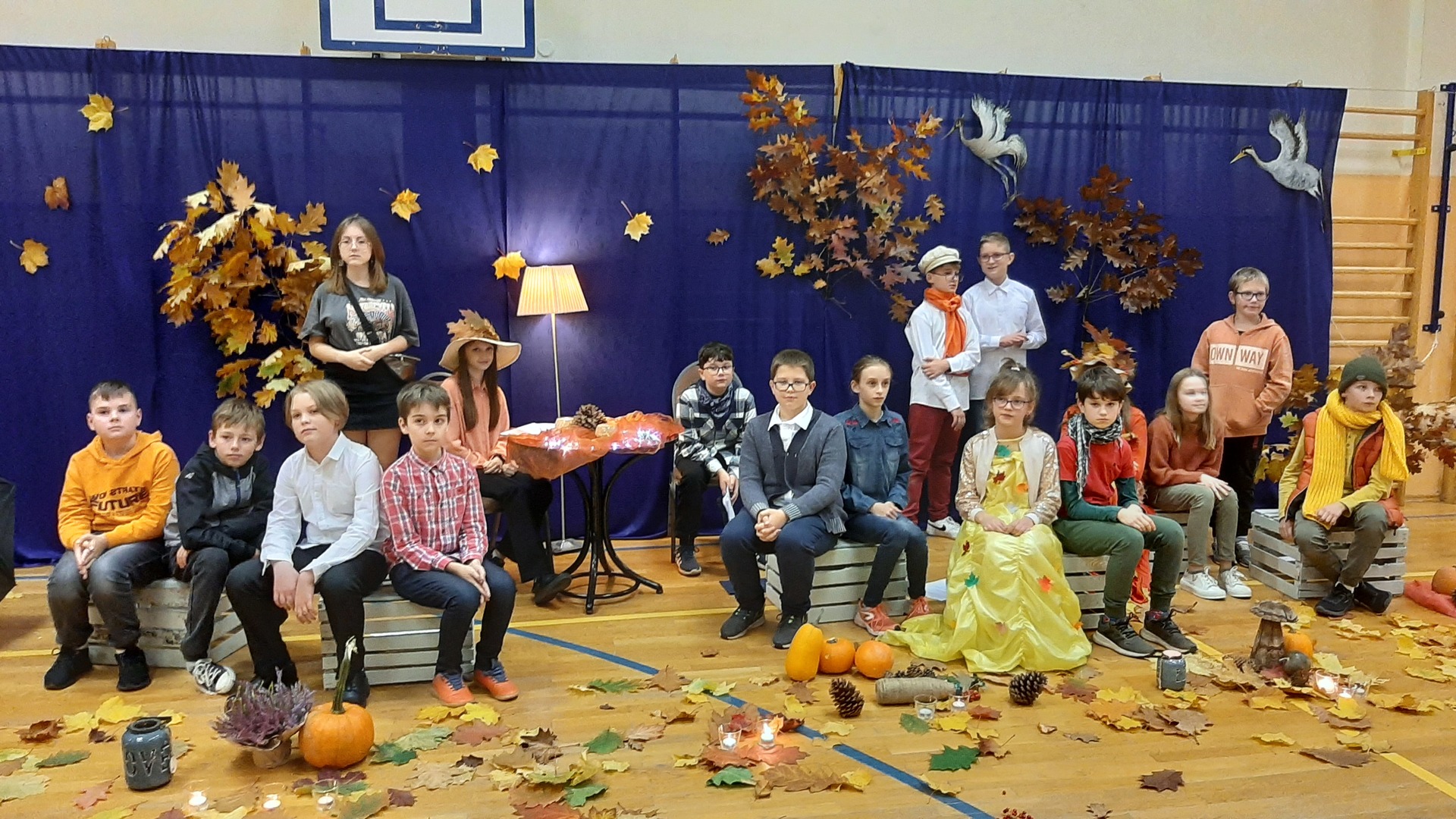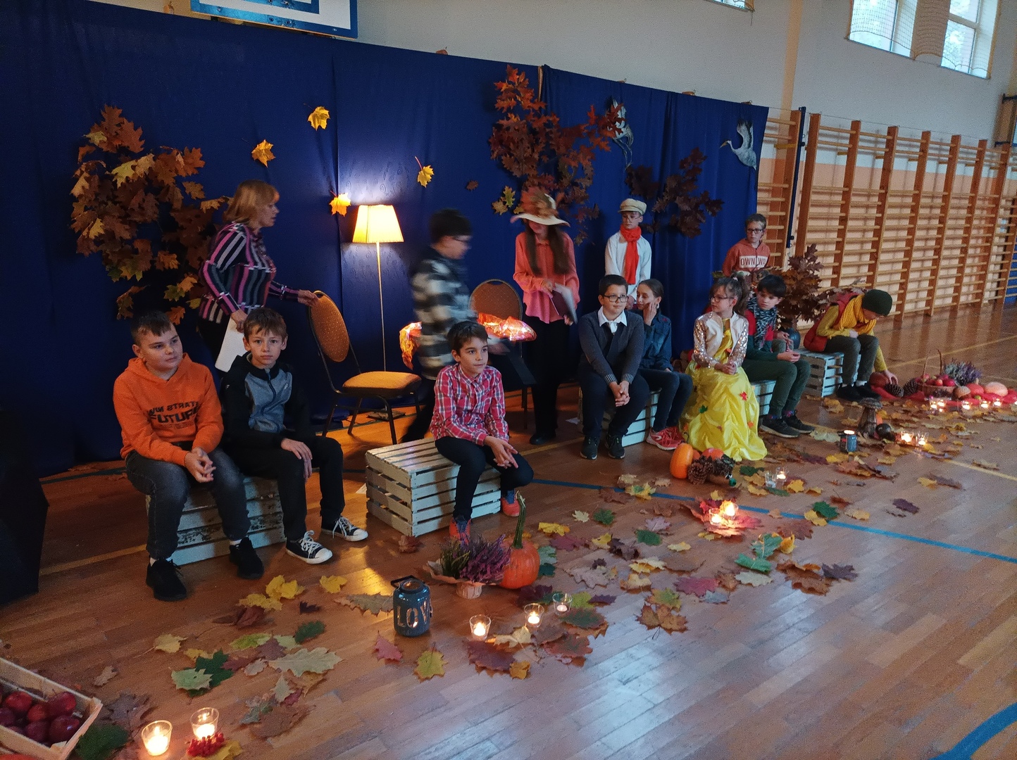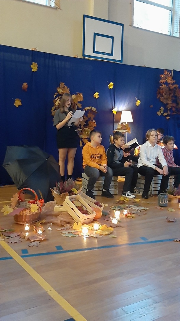 W czwartkowy wieczór (20.10.2022 r.) w naszej szkole odbyło się zebranie z rodzicami. Spotkanie odbyło się w zupełnie innej formie. W tym roku powróciło spotkanie z jesienną poezją. Pani Katarzyna Trejber, pani Anna Michalak, pani Justyna Nowińska przygotowały z uczniami z klasy V i VII specjalny program artystyczny, aby umilić rodzicom czas spędzony w szkole. Wiersze, piosenki, świece, przepiękna dekoracja dały niesamowity klimat w sali gimnastycznej. Wszyscy młodzi aktorzy otrzymali gromkie brawa za swój występ. Zdecydowanie największym zaskoczeniem było wykonanie acapella piosenki Maryli Rodowicz przez naszą uczennicę.
