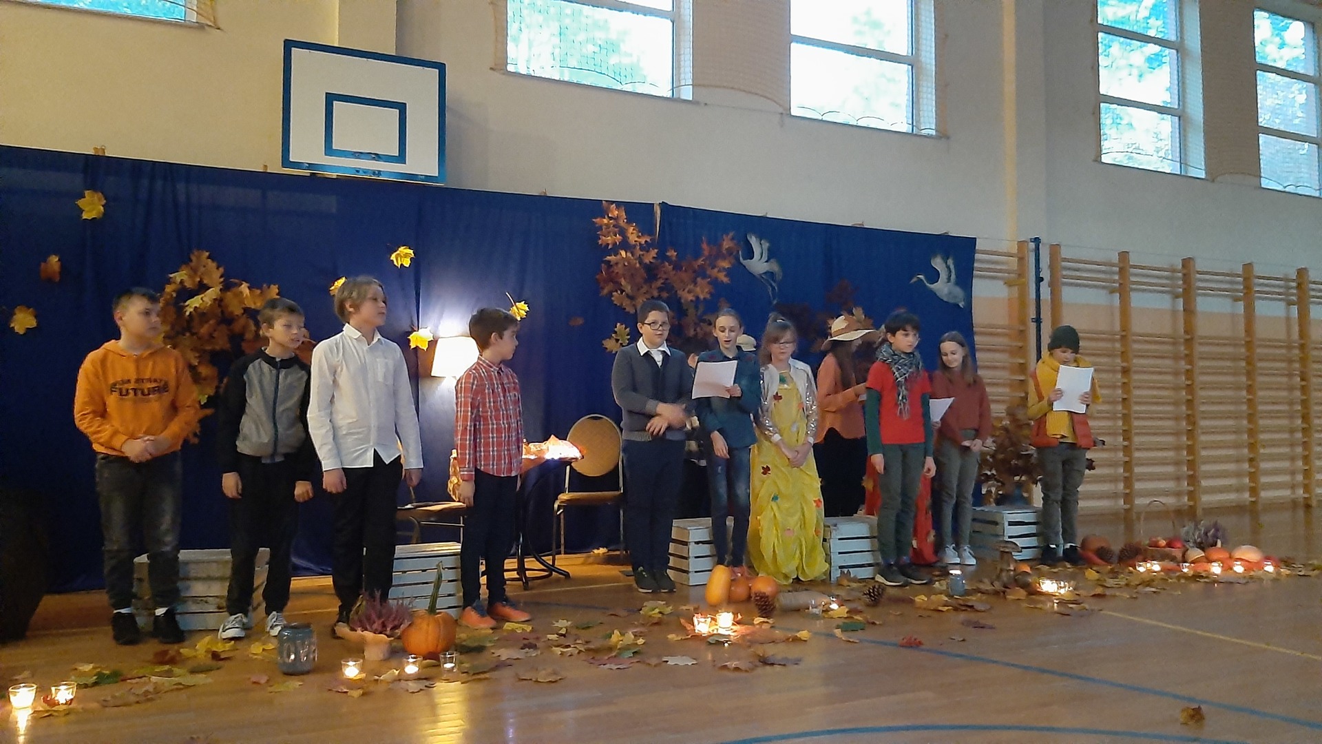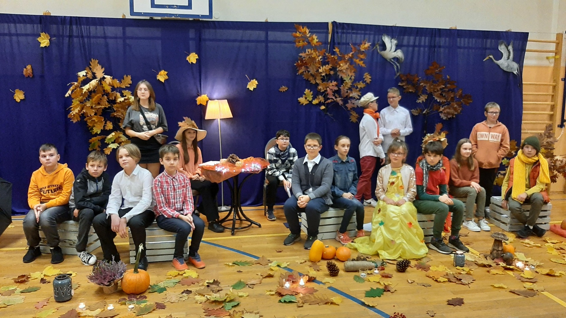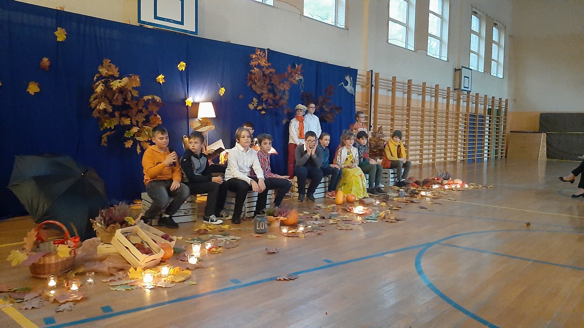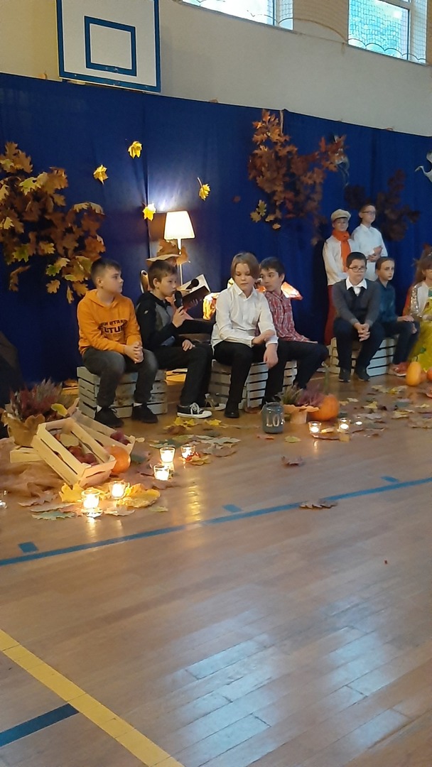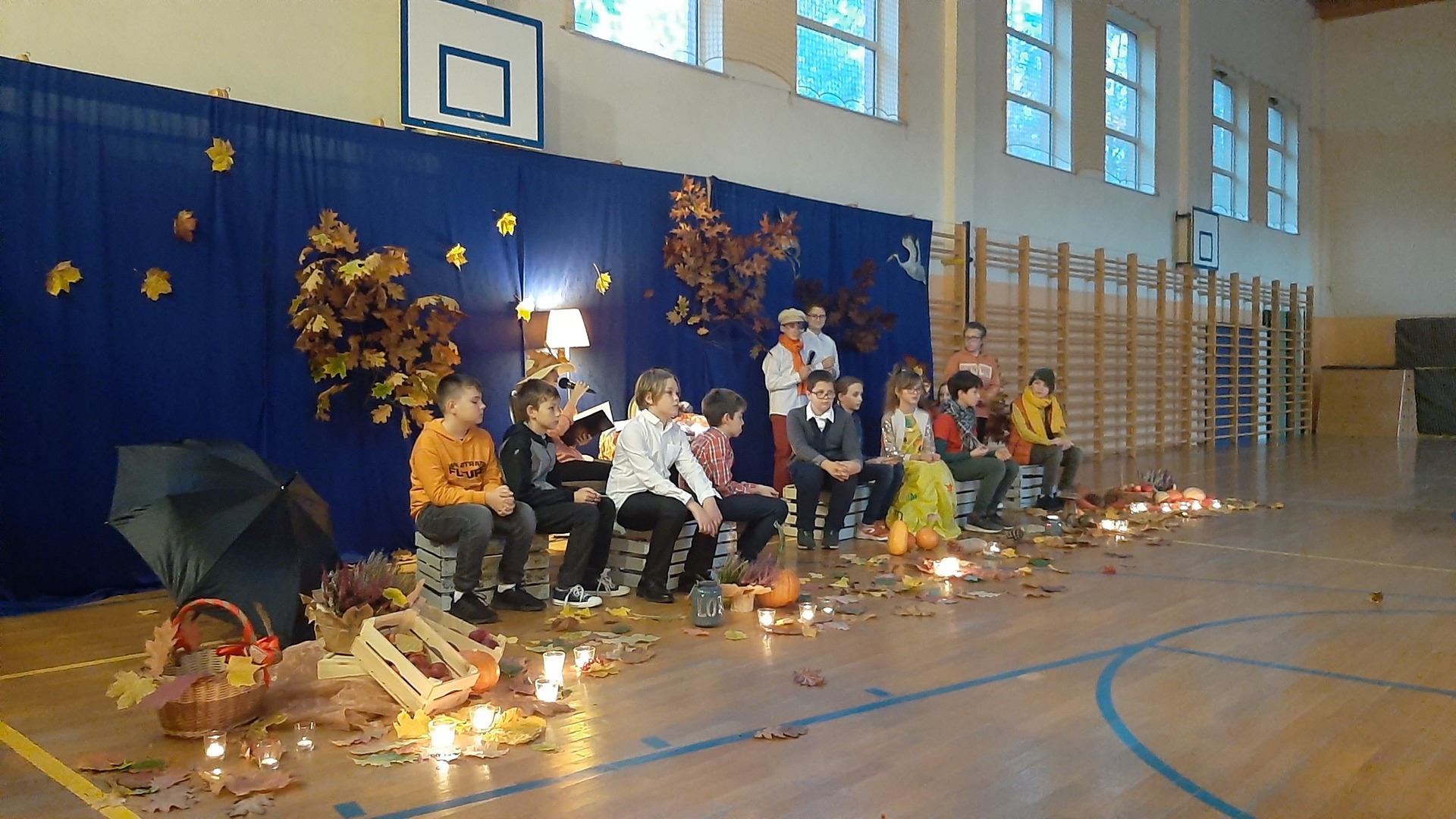 W czwartkowy wieczór (20.10.2022 r.) w naszej szkole odbyło się zebranie z rodzicami. Spotkanie odbyło się w zupełnie innej formie. W tym roku powróciło spotkanie z jesienną poezją. Pani Katarzyna Trejber, pani Anna Michalak, pani Justyna Nowińska przygotowały z uczniami z klasy V i VII specjalny program artystyczny, aby umilić rodzicom czas spędzony w szkole. Wiersze, piosenki, świece, przepiękna dekoracja dały niesamowity klimat w sali gimnastycznej. Wszyscy młodzi aktorzy otrzymali gromkie brawa za swój występ. Zdecydowanie największym zaskoczeniem było wykonanie acapella piosenki Maryli Rodowicz przez naszą uczennicę.