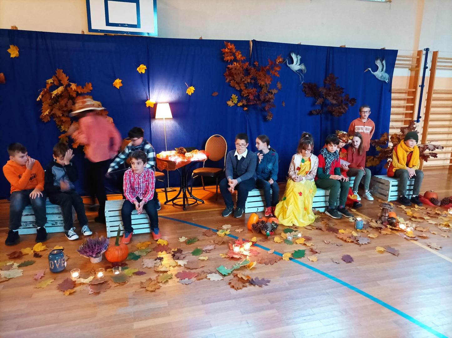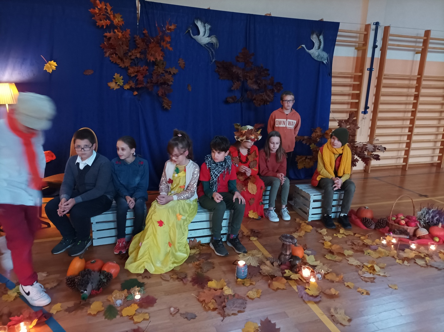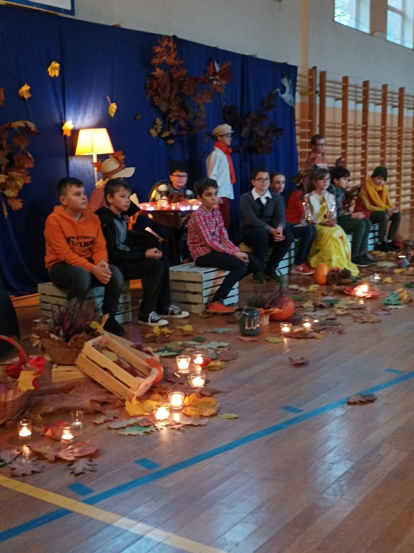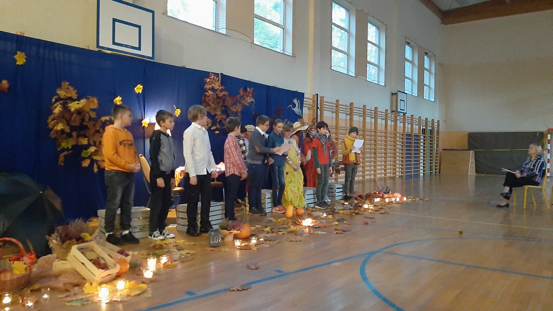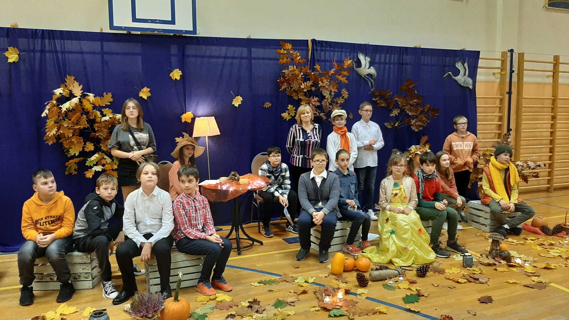 W czwartkowy wieczór (20.10.2022 r.) w naszej szkole odbyło się zebranie z rodzicami. Spotkanie odbyło się w zupełnie innej formie. W tym roku powróciło spotkanie z jesienną poezją. Pani Katarzyna Trejber, pani Anna Michalak, pani Justyna Nowińska przygotowały z uczniami z klasy V i VII specjalny program artystyczny, aby umilić rodzicom czas spędzony w szkole. Wiersze, piosenki, świece, przepiękna dekoracja dały niesamowity klimat w sali gimnastycznej. Wszyscy młodzi aktorzy otrzymali gromkie brawa za swój występ. Zdecydowanie największym zaskoczeniem było wykonanie acapella piosenki Maryli Rodowicz przez naszą uczennicę.
