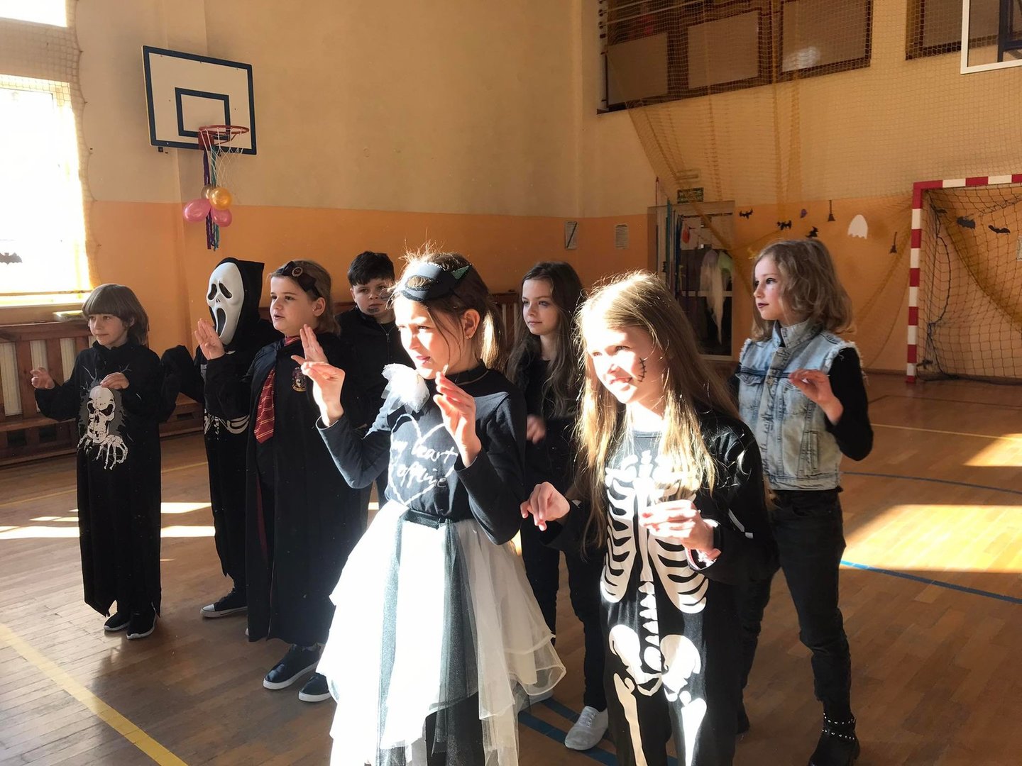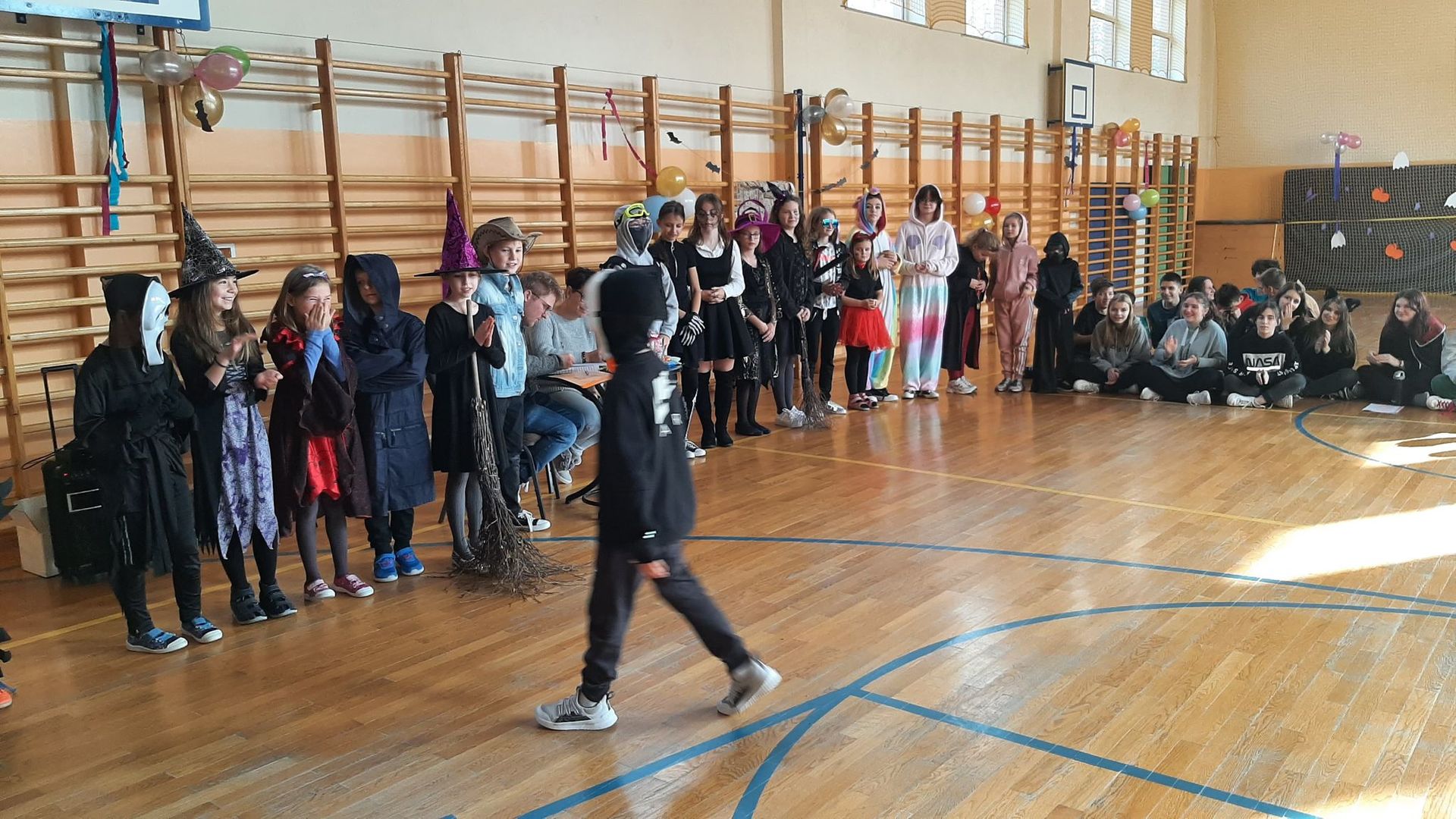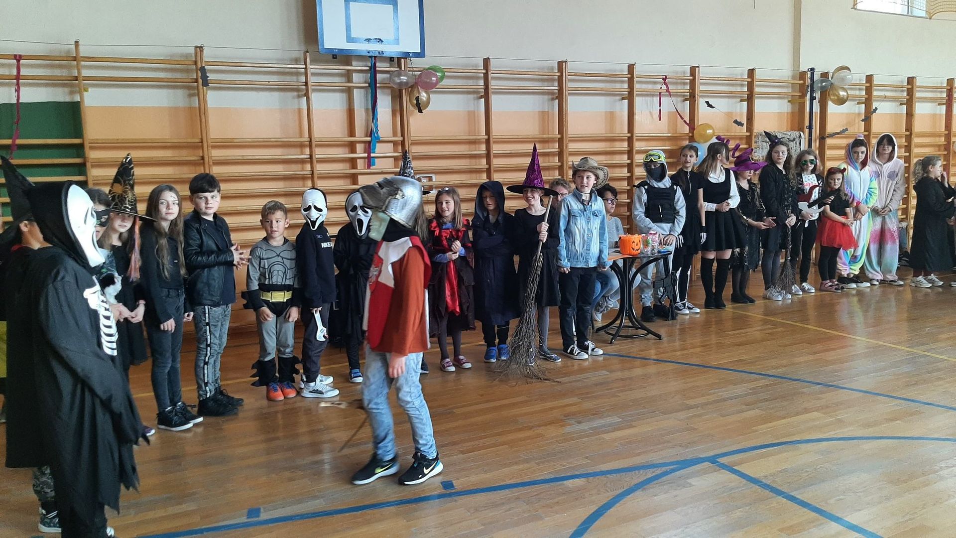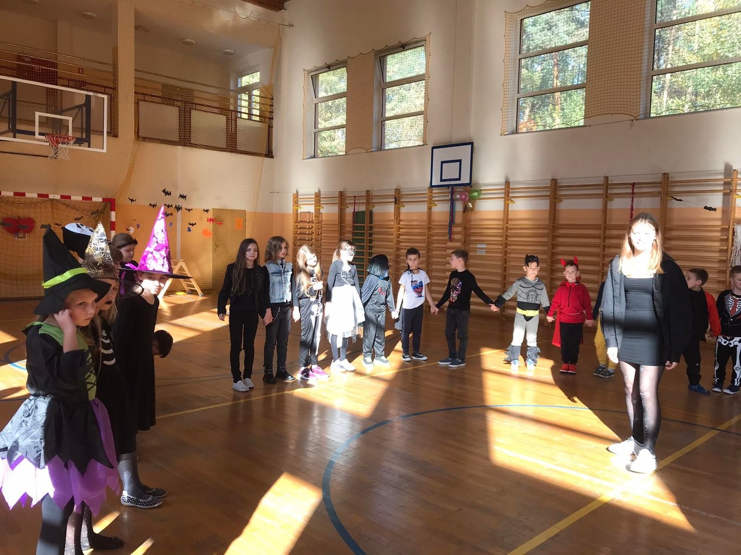 W październikowe i jesienne dni wszyscy uczniowie naszej szkoły przygotowywali się do zabaw z okazji Halloween. Dzieci mogły wziąć udział w szkolnych konkursach organizowanych przez nauczyciela języka angielskiego p. Joanna Wczysłą – Matysiuk. Nasi wychowankowie mogli przygotować specjalną straszną dynię. Ważnym elementem czasu Halloween było przygotowanie swojego stroju Halloween. Punktem kulminacyjnym były organizowane przez uczennice klasy VIII zabaw o tej tematyce. Klasy IV- VIII spotkały się w sali gimnastycznej. Dla uczniów klas młodszych impreza haloweenowa odbyła się w ramach lekcji. Dzieci z klas IV – VIII wzięły udział w pierwszej w tym roku szkolnym dyskotece.
