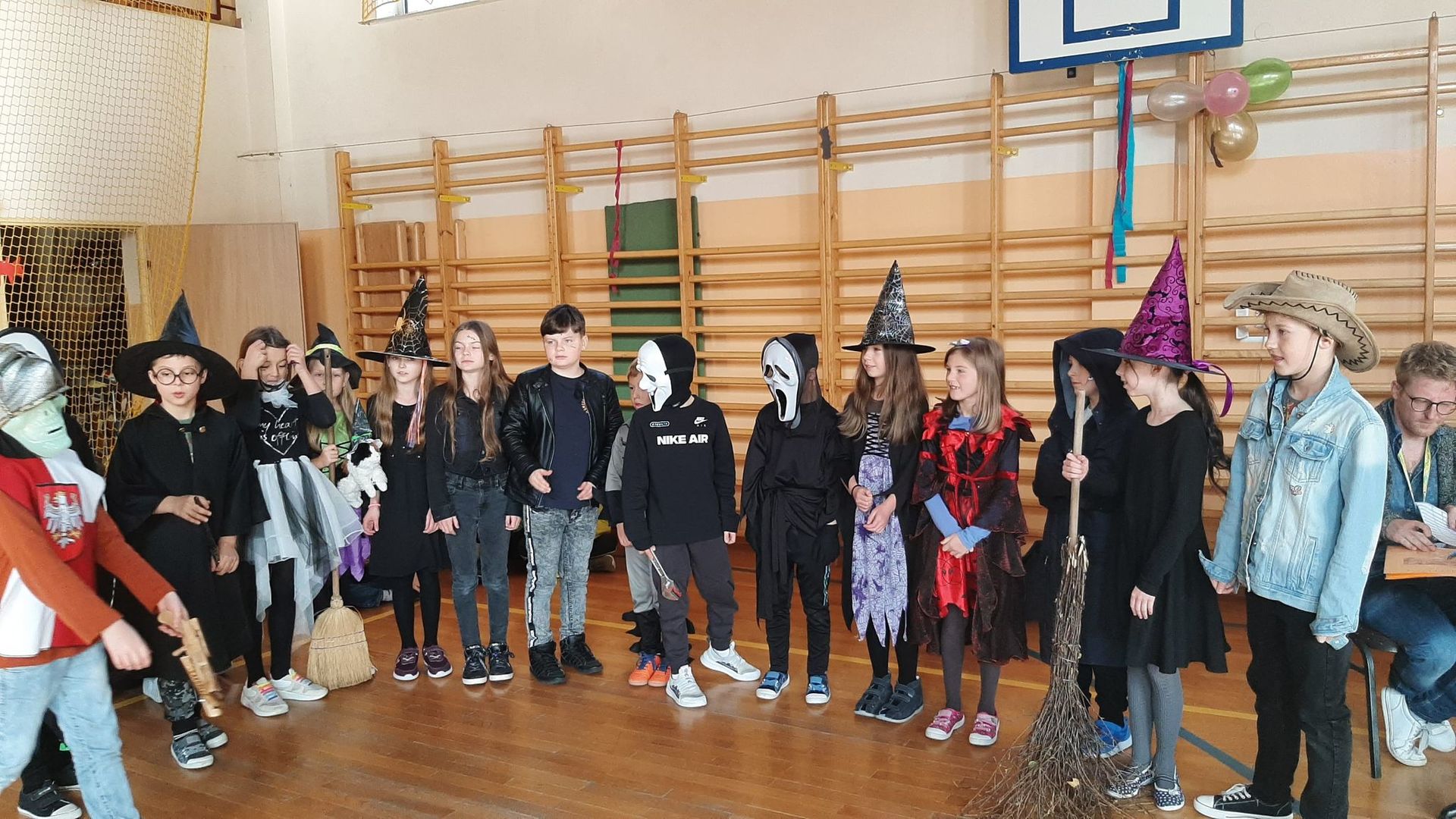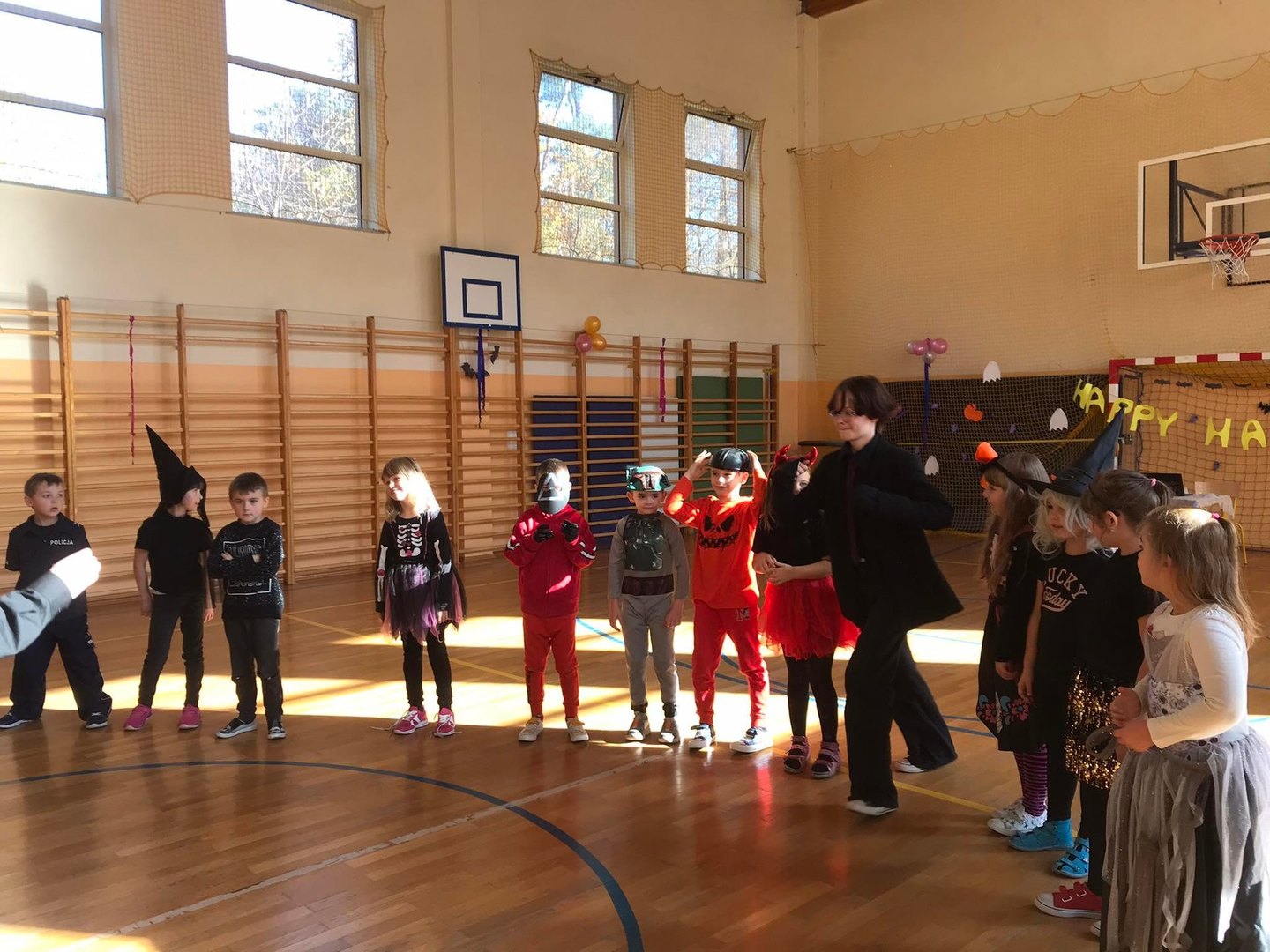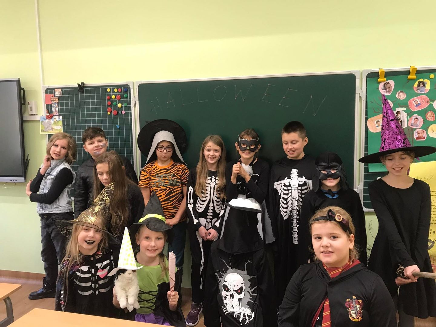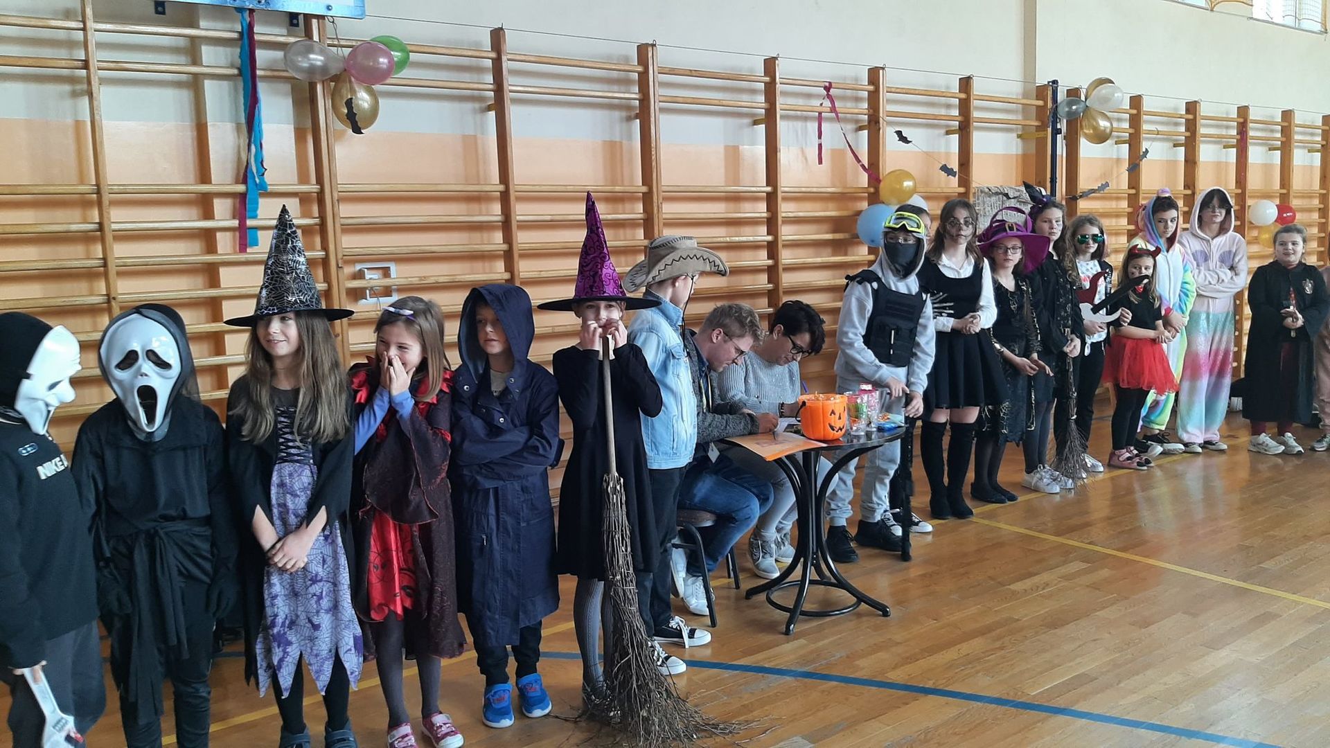 W październikowe i jesienne dni wszyscy uczniowie naszej szkoły przygotowywali się do zabaw z okazji Halloween. Dzieci mogły wziąć udział w szkolnych konkursach organizowanych przez nauczyciela języka angielskiego p. Joanna Wczysłą – Matysiuk. Nasi wychowankowie mogli przygotować specjalną straszną dynię. Ważnym elementem czasu Halloween było przygotowanie swojego stroju Halloween. Punktem kulminacyjnym były organizowane przez uczennice klasy VIII zabaw o tej tematyce. Klasy IV- VIII spotkały się w sali gimnastycznej. Dla uczniów klas młodszych impreza haloweenowa odbyła się w ramach lekcji. Dzieci z klas IV – VIII wzięły udział w pierwszej w tym roku szkolnym dyskotece.