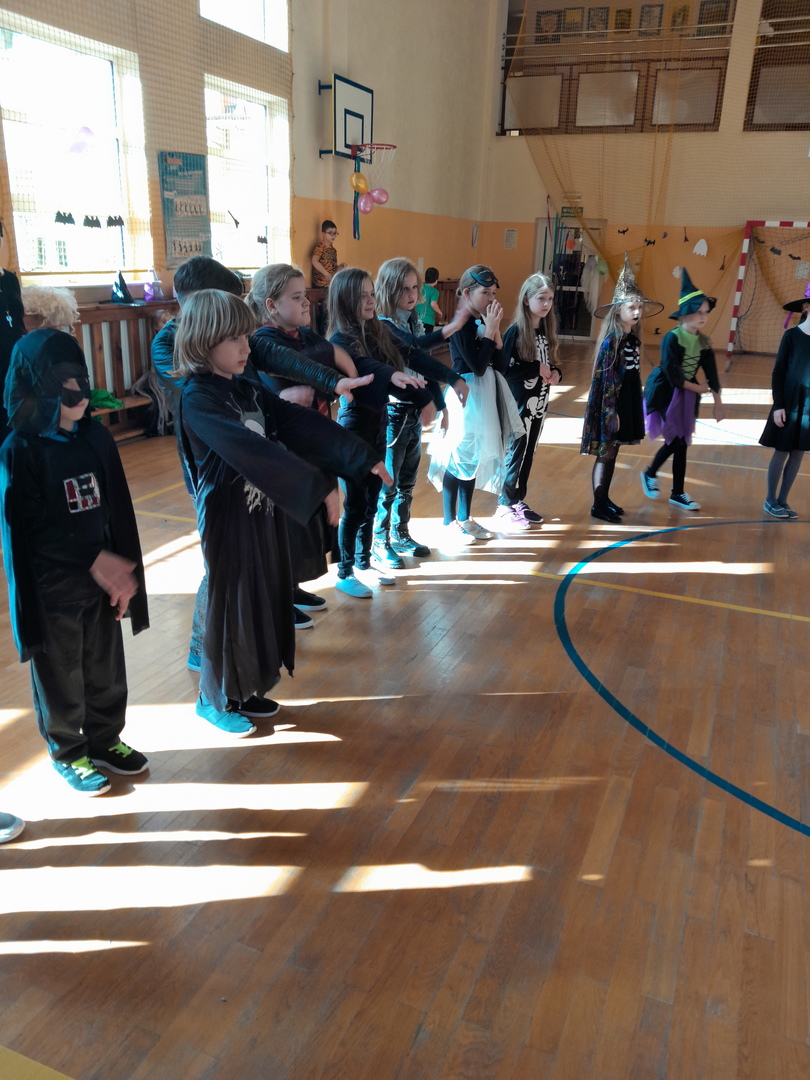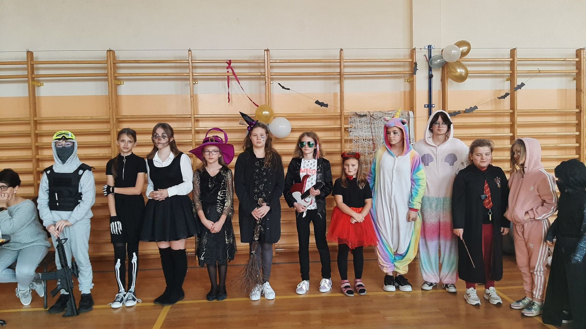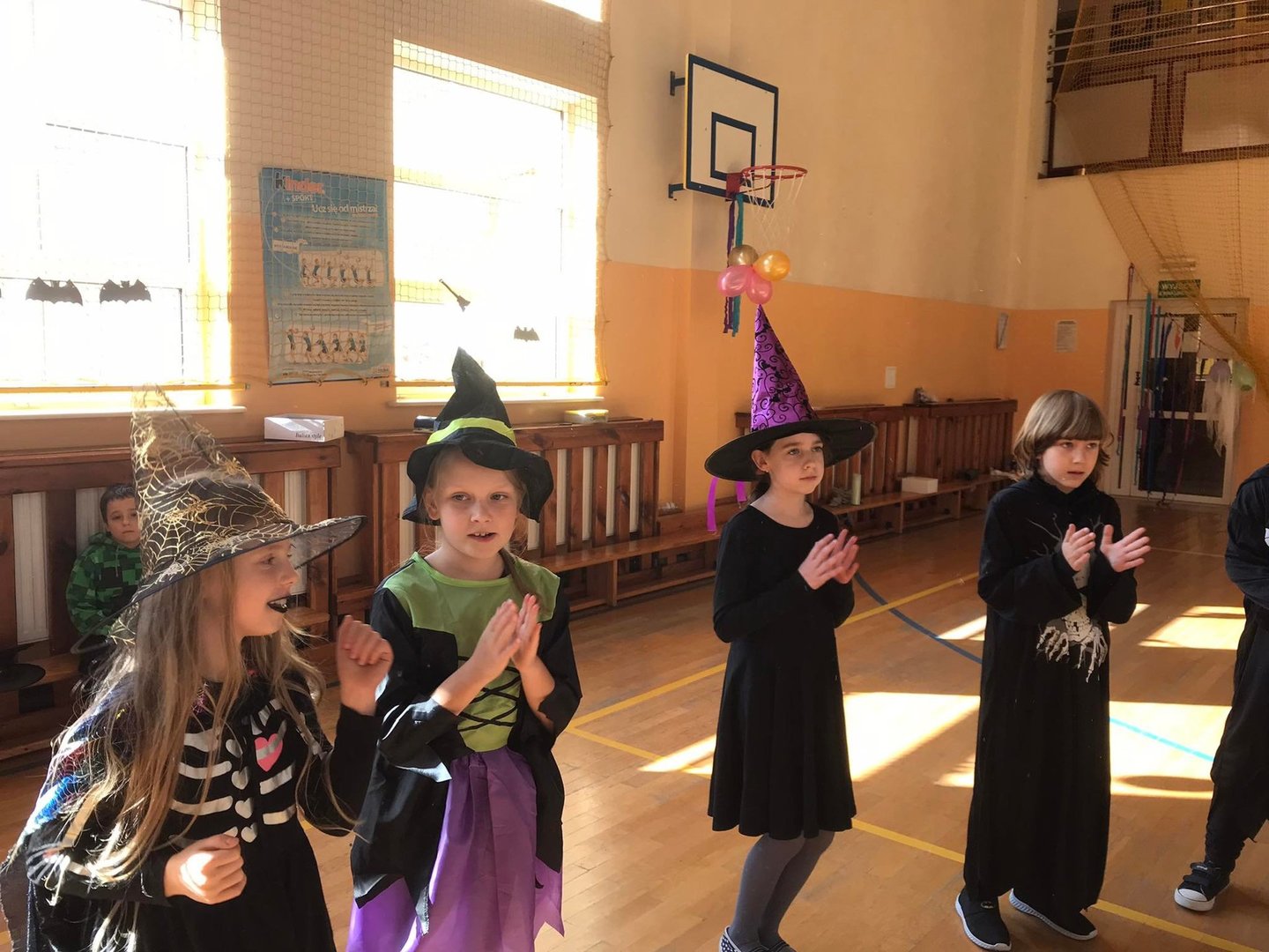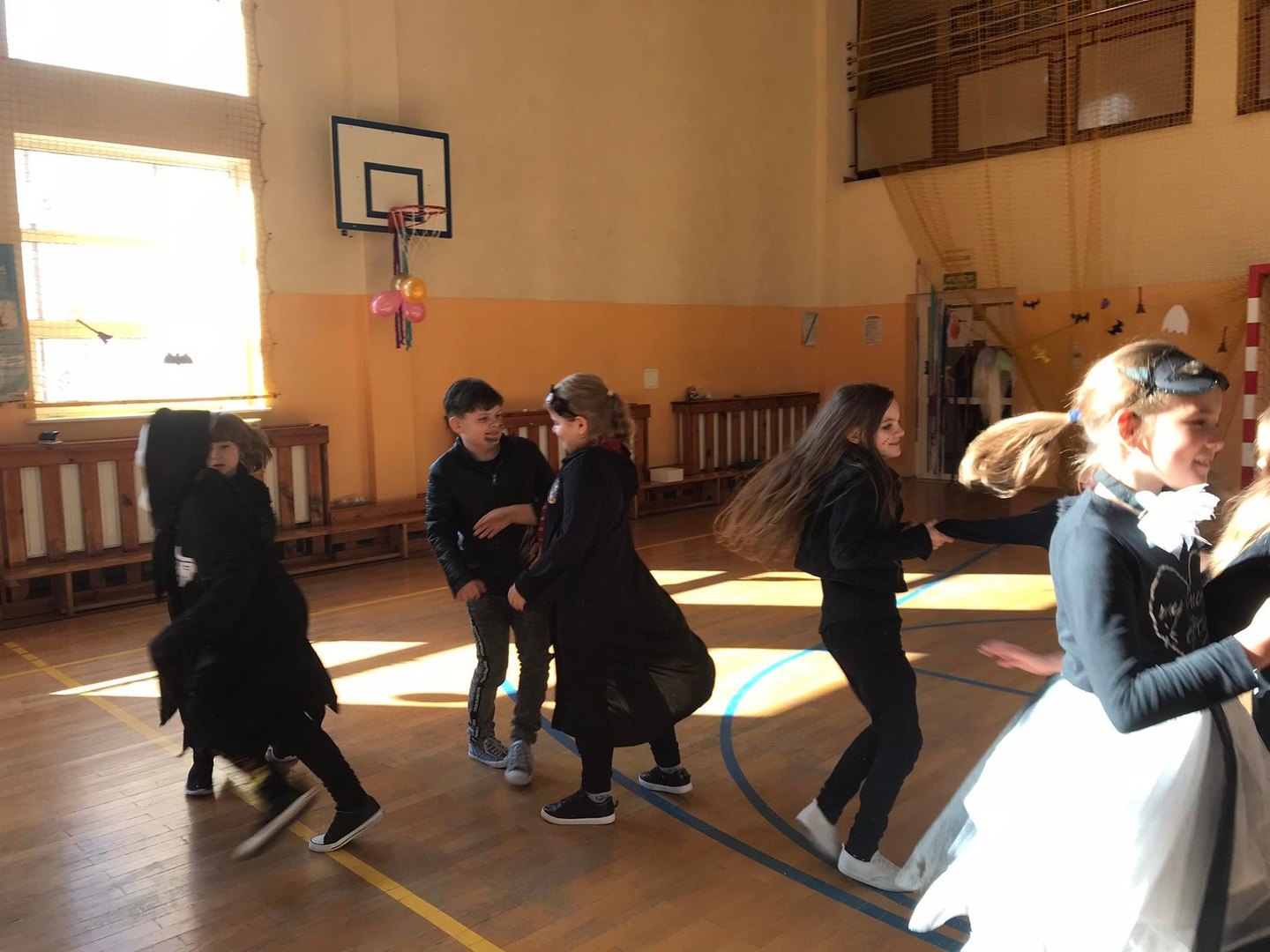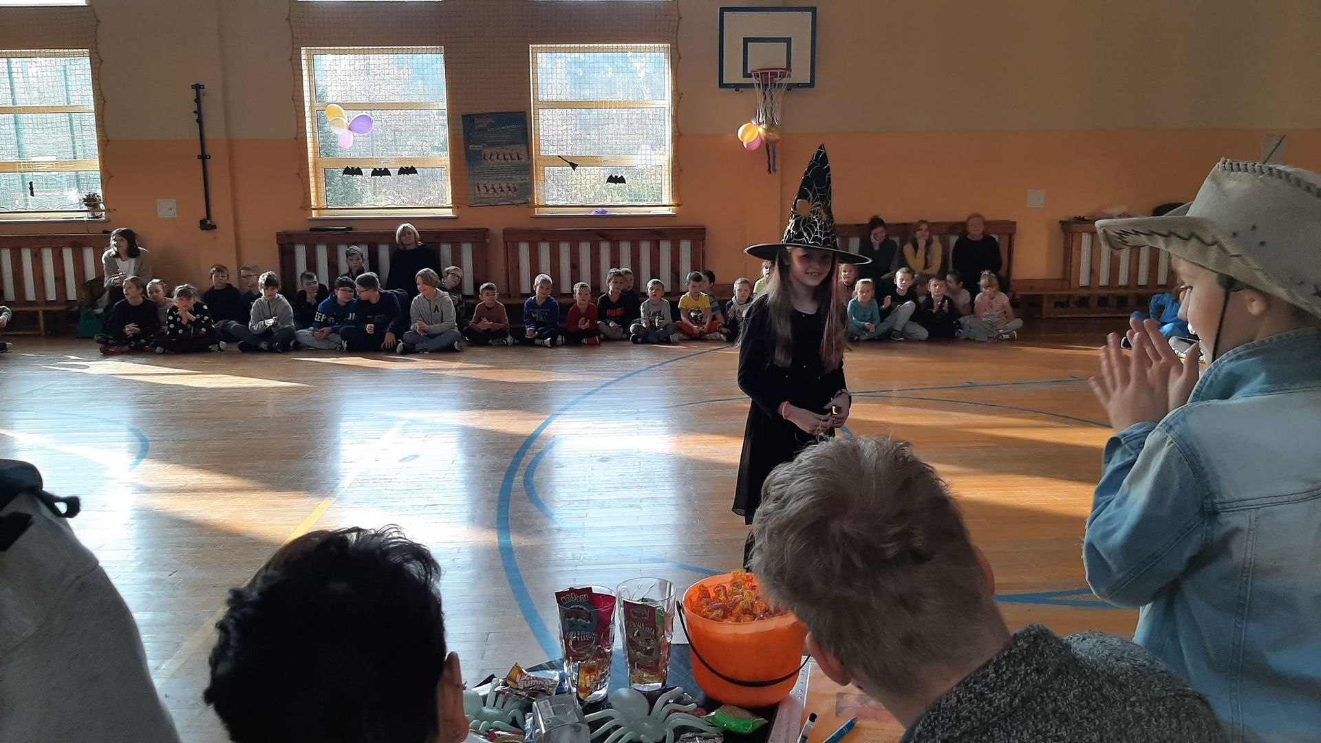 W październikowe i jesienne dni wszyscy uczniowie naszej szkoły przygotowywali się do zabaw z okazji Halloween. Dzieci mogły wziąć udział w szkolnych konkursach organizowanych przez nauczyciela języka angielskiego p. Joanna Wczysłą – Matysiuk. Nasi wychowankowie mogli przygotować specjalną straszną dynię. Ważnym elementem czasu Halloween było przygotowanie swojego stroju Halloween. Punktem kulminacyjnym były organizowane przez uczennice klasy VIII zabaw o tej tematyce. Klasy IV- VIII spotkały się w sali gimnastycznej. Dla uczniów klas młodszych impreza haloweenowa odbyła się w ramach lekcji. Dzieci z klas IV – VIII wzięły udział w pierwszej w tym roku szkolnym dyskotece.