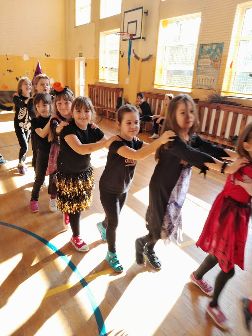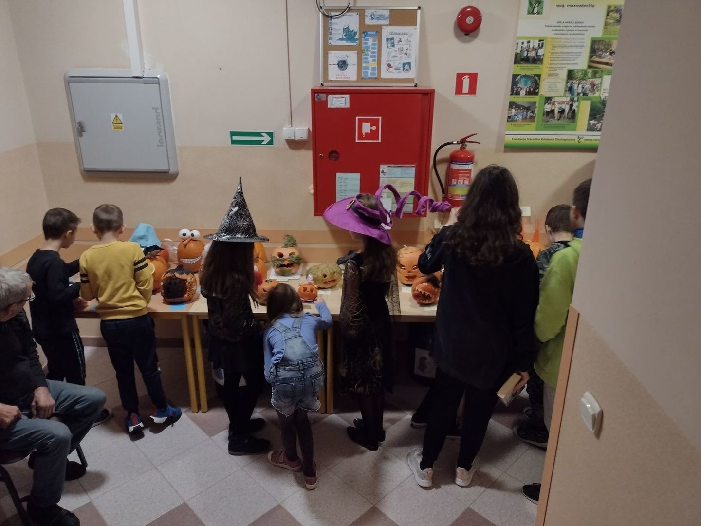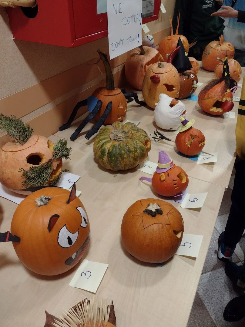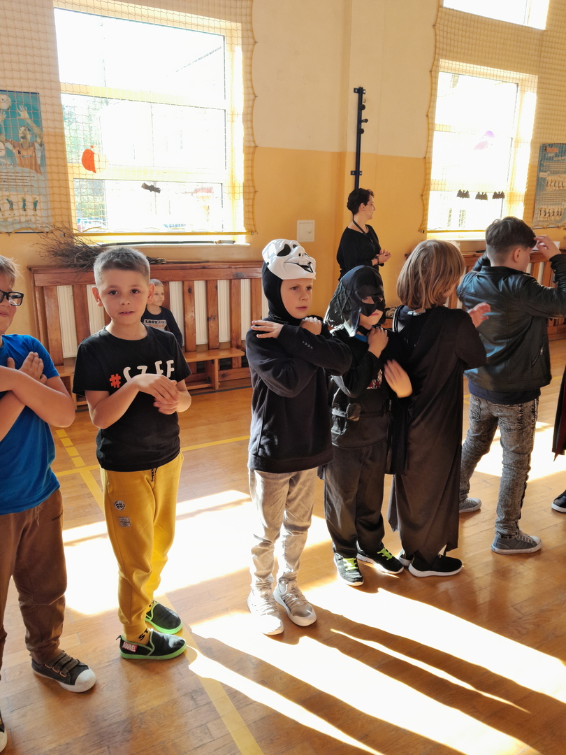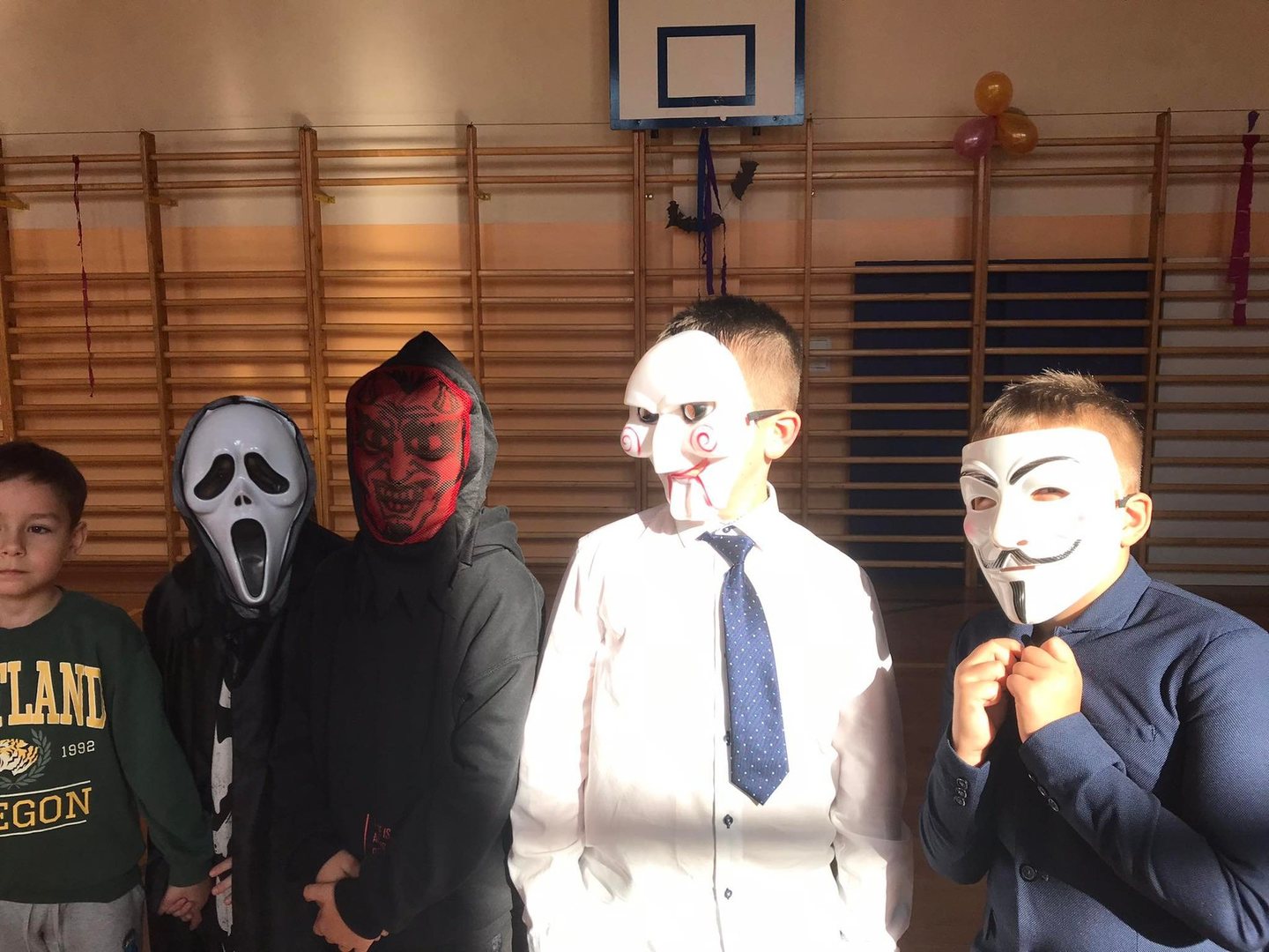 W październikowe i jesienne dni wszyscy uczniowie naszej szkoły przygotowywali się do zabaw z okazji Halloween. Dzieci mogły wziąć udział w szkolnych konkursach organizowanych przez nauczyciela języka angielskiego p. Joanna Wczysłą – Matysiuk. Nasi wychowankowie mogli przygotować specjalną straszną dynię. Ważnym elementem czasu Halloween było przygotowanie swojego stroju Halloween. Punktem kulminacyjnym były organizowane przez uczennice klasy VIII zabaw o tej tematyce. Klasy IV- VIII spotkały się w sali gimnastycznej. Dla uczniów klas młodszych impreza haloweenowa odbyła się w ramach lekcji. Dzieci z klas IV – VIII wzięły udział w pierwszej w tym roku szkolnym dyskotece.