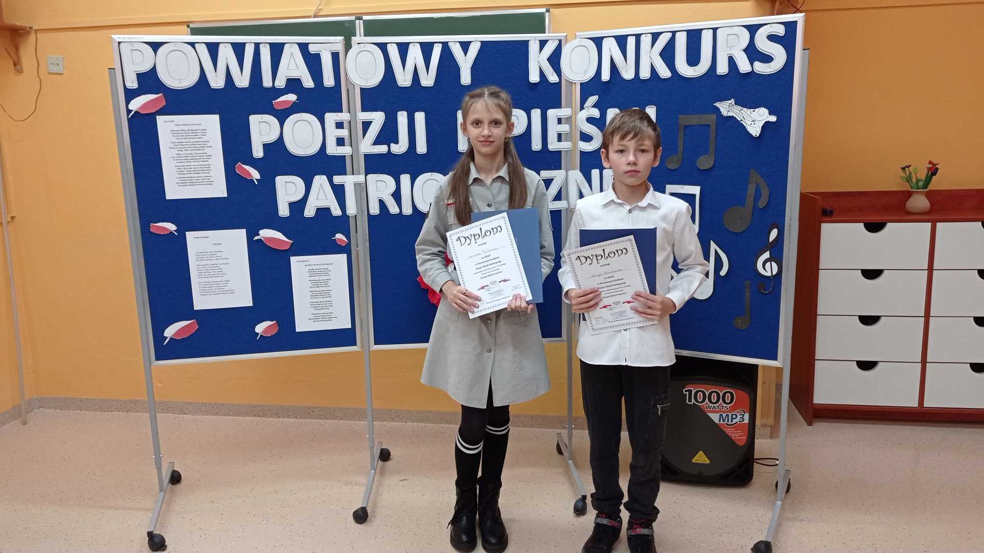 Laureaci szkolnego etapu konkursu pieśni i poezji patriotycznej wzięli udział w etapie powiatowym. W tym roku naszą szkołę z dumą reprezentowali uczniowie klasy V: