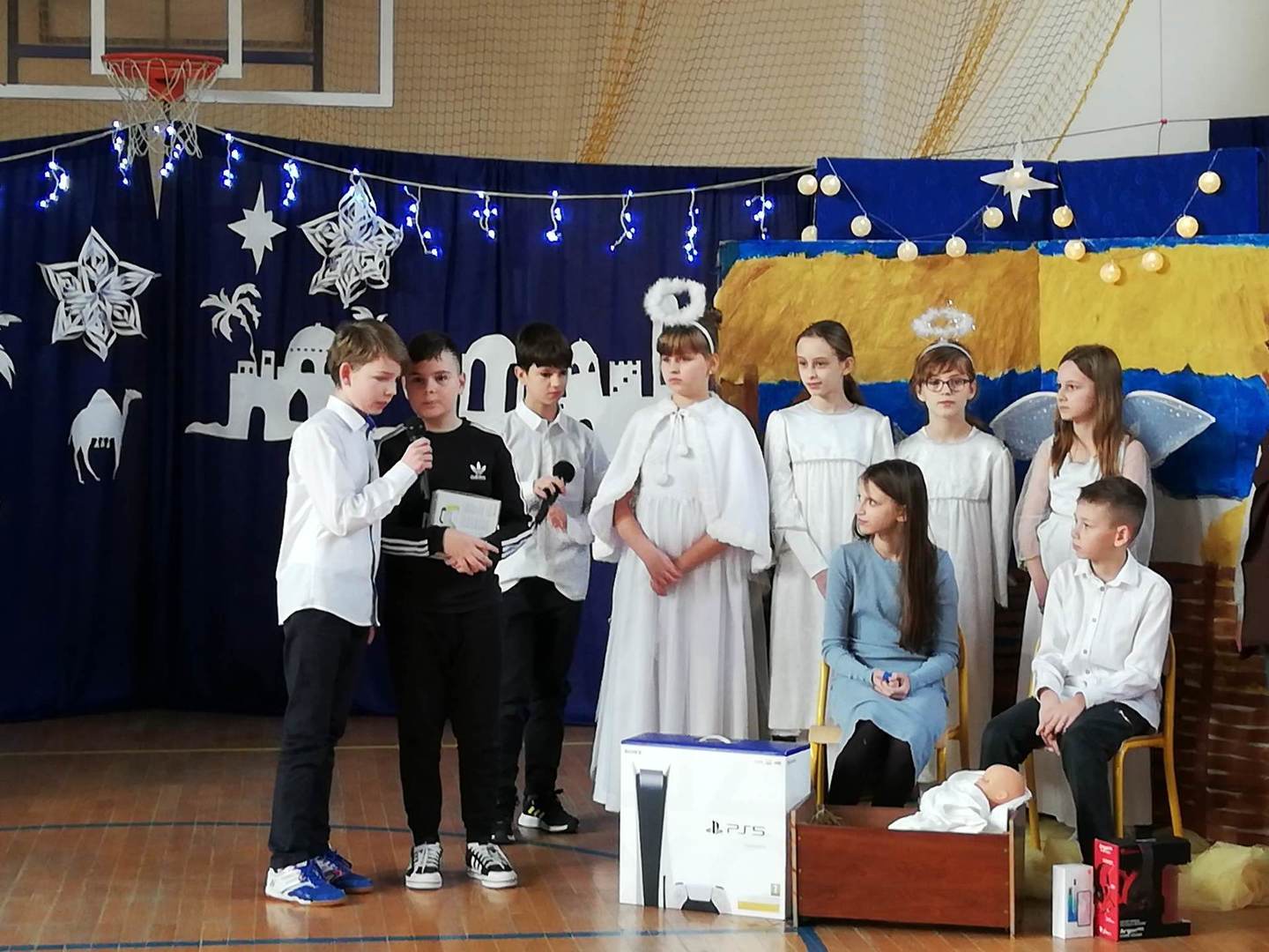 Pierwszy występ naszych młodych aktorów i chórzystów przypadł podczas grudniowego zebrania z rodzicami. Tego dnia odbył się również kiermasz kartek świątecznych wykonanych przez uczniów ze Szkolnego Koła Wolontariatu. Podczas zebrania mieliśmy przyjeność gościć w prograch naszej szkoły księdza proboszcza parafii w Cząstkowie ks. Adama Bednarka, króry złożył życzenia bożonarodzeniowe i noworoczne.