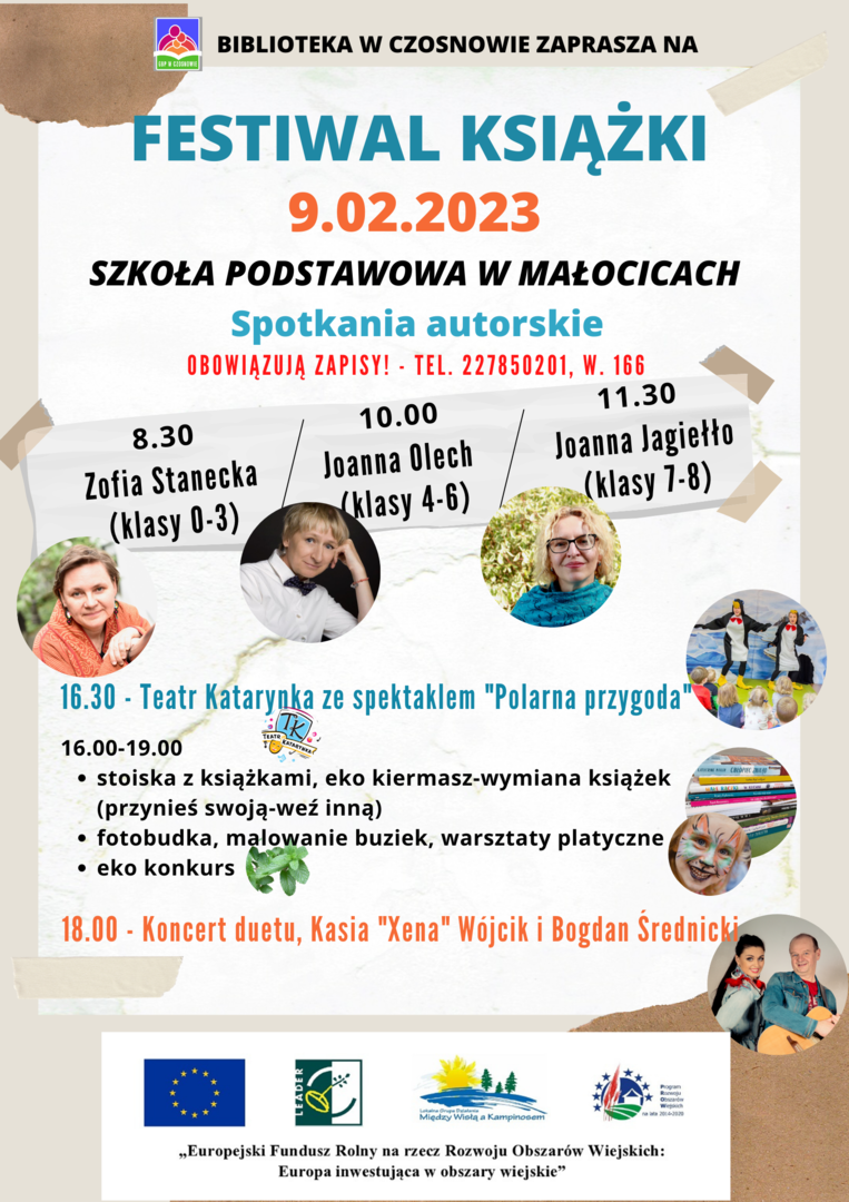 Serdecznie zapraszamy na Festiwal Książki w Szkole Podstawowej w Małocicach w dniu 9 lutego 2023 roku.