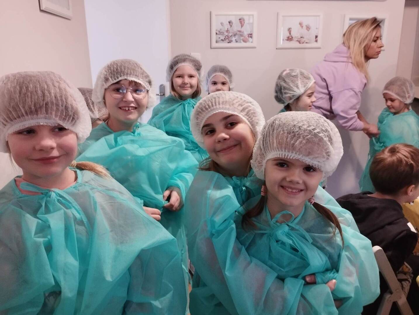 15 marca wybraliśmy się na wycieczkę do Fabryki Krówek, podczas której poznaliśmy krok po kroku jak przebiega proces powstawania pysznych cukierków – krówek. Dowiedzieliśmy się z jakich produktów powstają krówki i jakich urządzeń używa się podczas ich produkcji. Zawijanie cukierków w fabryce odbywa się ręcznie, co nie jest łatwą czynnością, o czym przekonaliśmy się podczas warsztatów plastycznych, na których projektowaliśmy własne wzory na papierkach, a następnie samodzielnie zawijaliśmy w nie krówki. Odbył się również konkurs plastyczny na najbardziej zwariowany rysunek krowy. Nie mogliśmy doczekać się degustacji cukierków, które wszystkim baaaardzo smakowały J