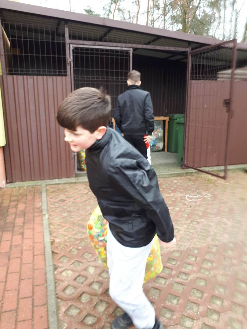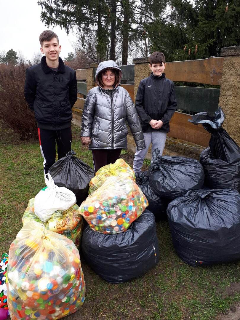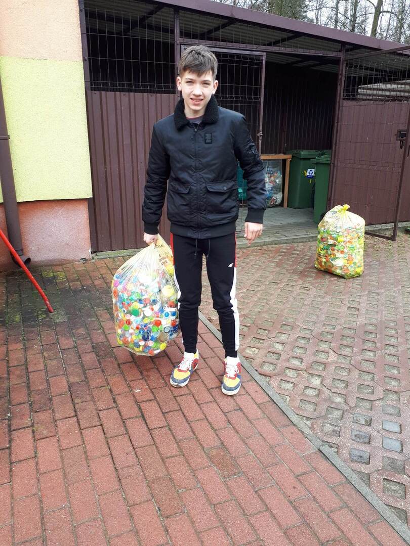 Chlopaki ze Szkolnego Koła Wolontariatu przeprowadzili akcje nakretka. Z serca szkolnego w Kaliszkach i Czosnowa zebrali nakretki i przekazali je mieszkance naszej Gminy, Pani Joannie Lipinskiej. Deszcz i kiepska pogoda jak widac im nie straszna :)