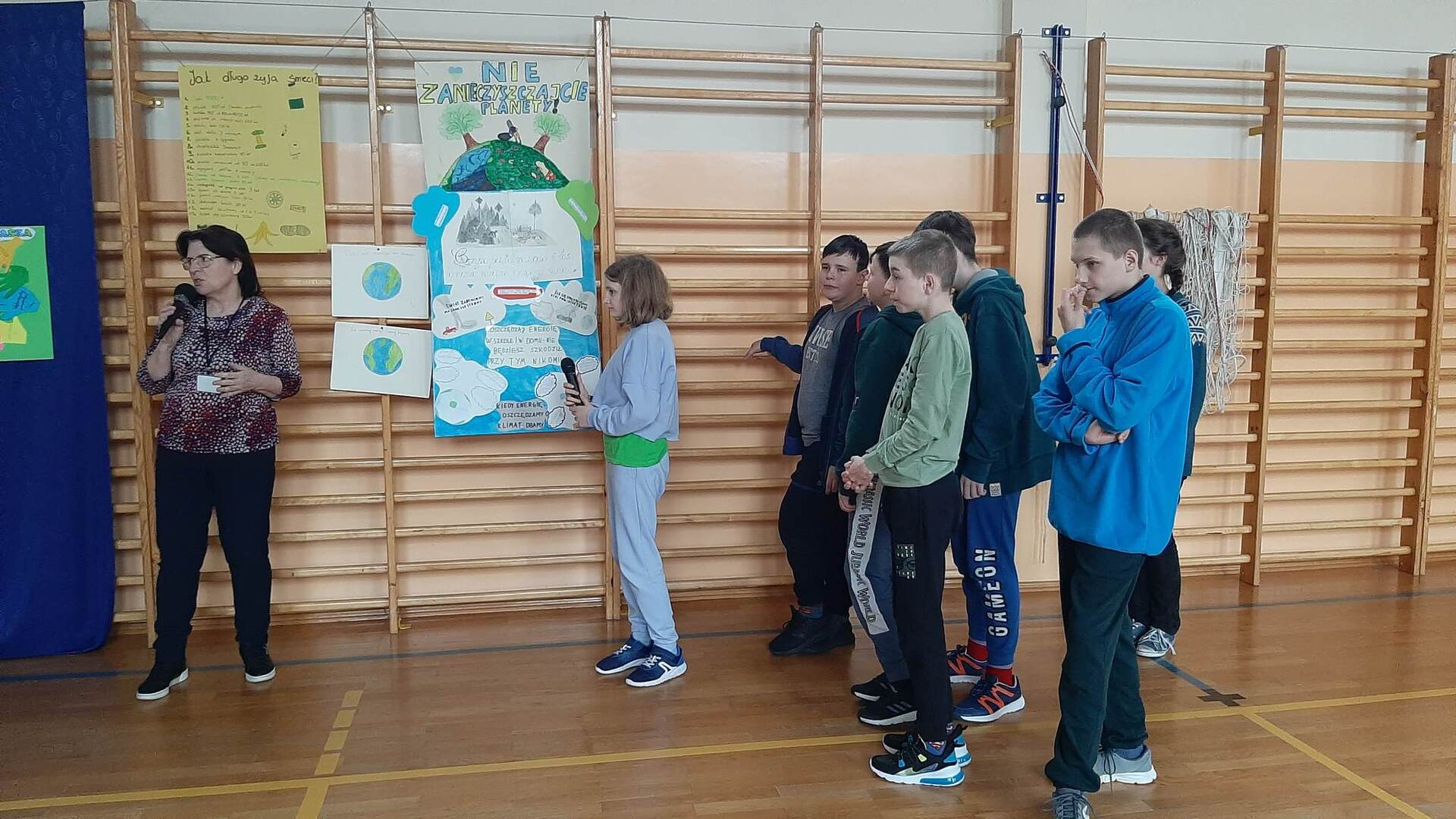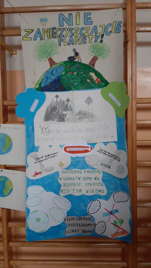 Każda klasa otrzymała do wykonania zadanie, które polegało na przygotowaniu plakatu lub scenki mówiącej nawołującej do dbania o naszą Ziemię.
