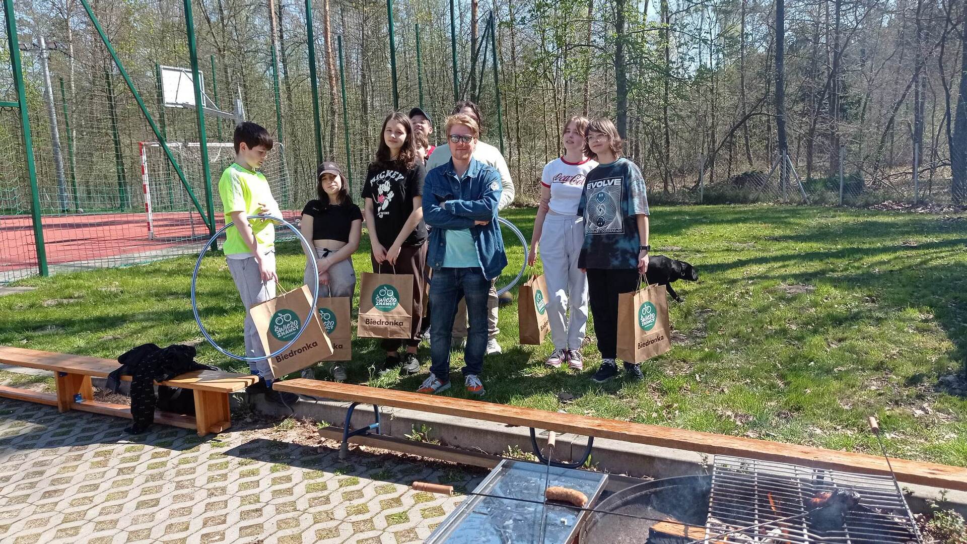 O umówionej godzinie uczestnicy spotkali się pod szkołą, aby wspólnie przejść do miejsca zbiórki i kolejny raz zamanifestować swoją postawę proekologiczną. Kolejny raz worki zapełniły się śmieciami, a nasi uczniowie pełni radości pokazali jak należy dbać o zieloną planetę. Po sprzątaniu czekało na nas ognisko, które zostało zorganizowane przy naszej szkole. Mogliśmy upiec kiełbaski i zrobić grzanki z chleba. Na uczestników akcji czekała miłą niespodzianka, którą przekazał p. Zygmunt Szostak.