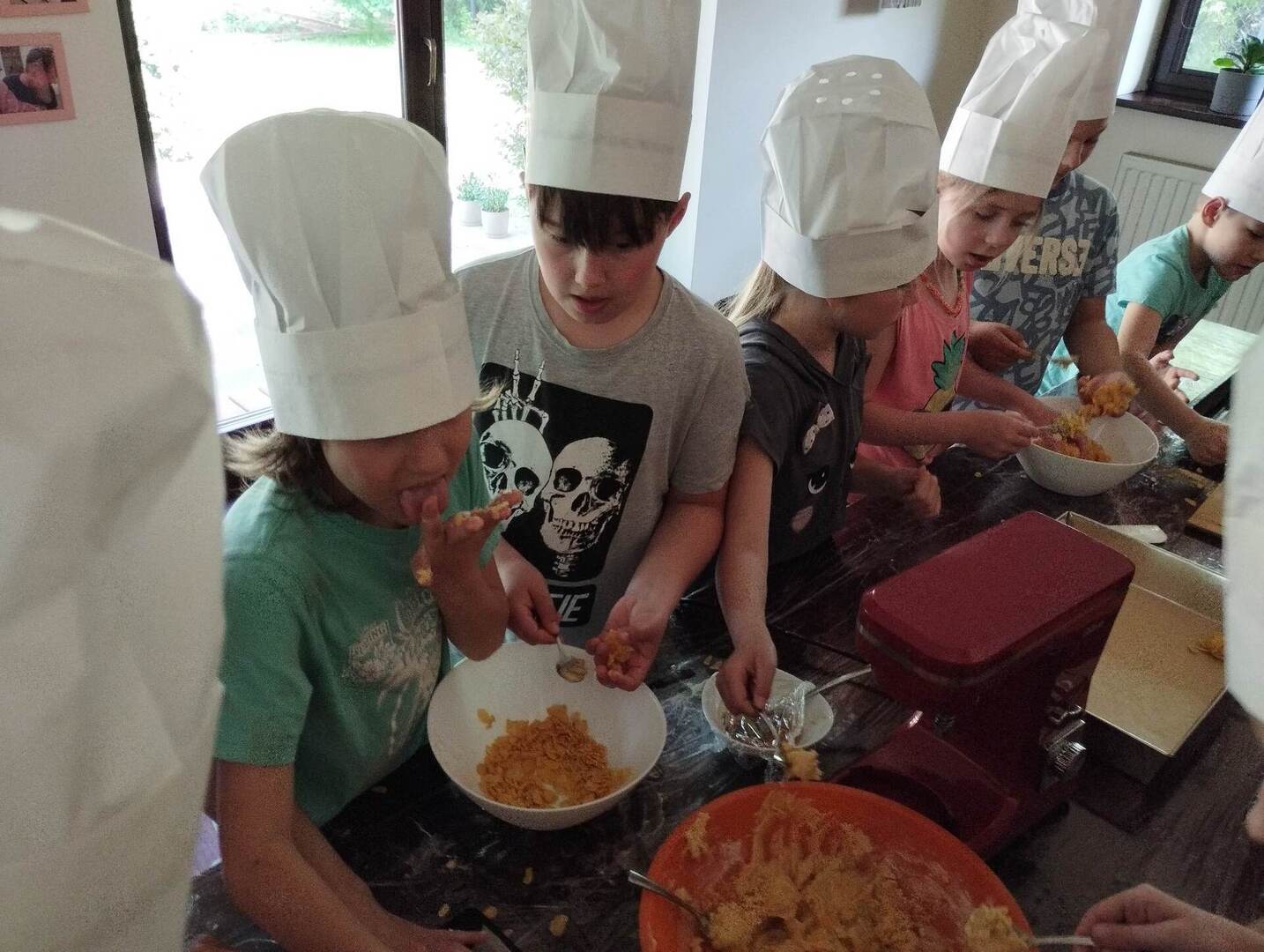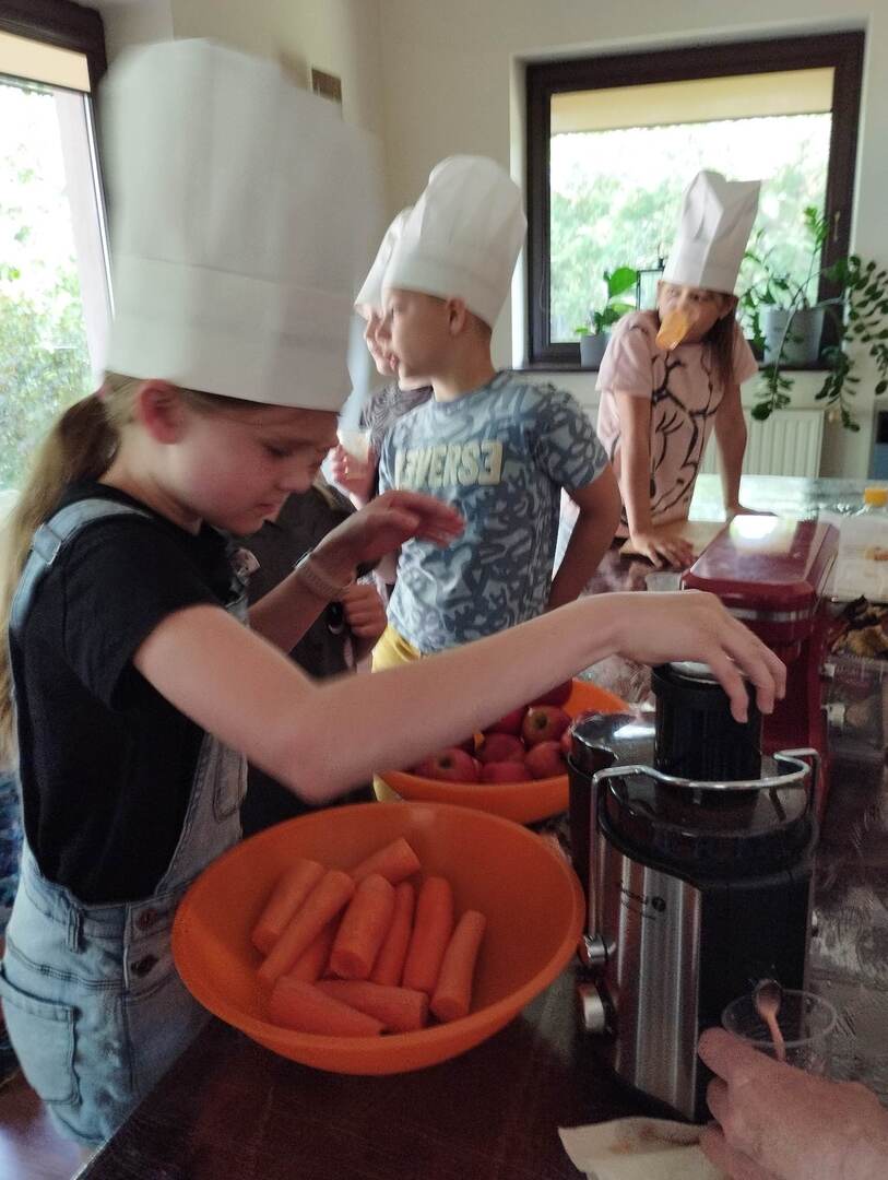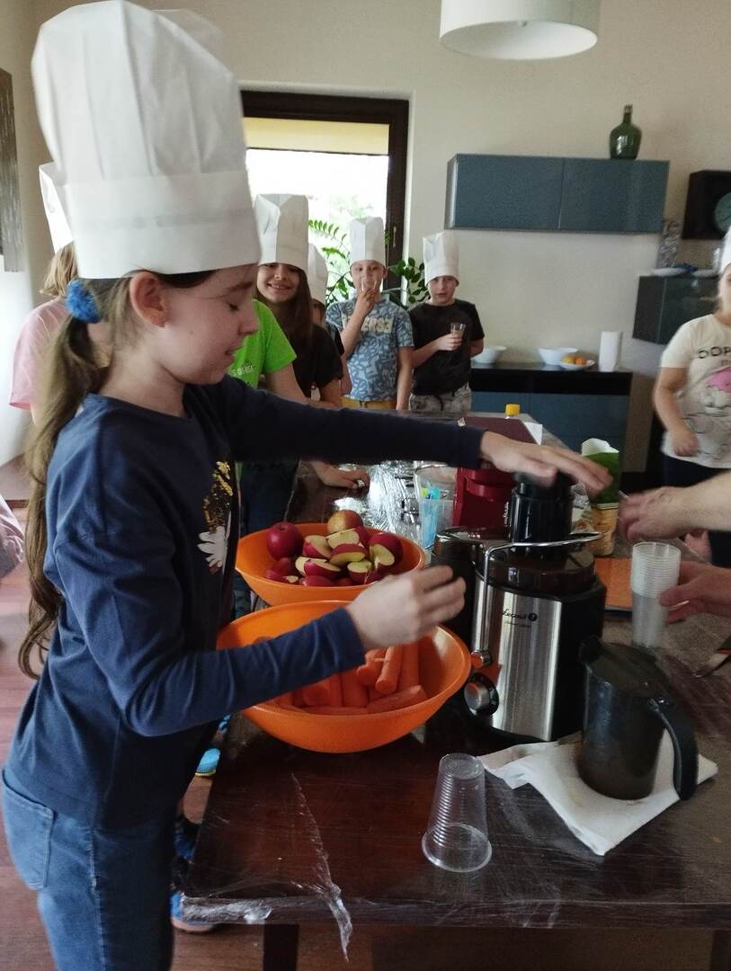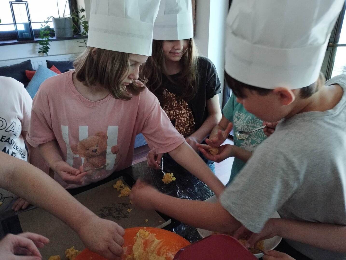 26 maja uczniowie klasy trzeciej uczestniczyli w warsztatach kulinarnych „Marchewkowe pole”. Dzieci samodzielnie wyciskały sok z marchwi i jabłek, oraz przygotowywały burgery z marchwiowym ketchupem. Pod okiem fachowca każde dziecko upiekło i udekorowało torcik dla swojej mamy. Nie zabrakło również małych kukurydziano marchwiowych ciasteczek.