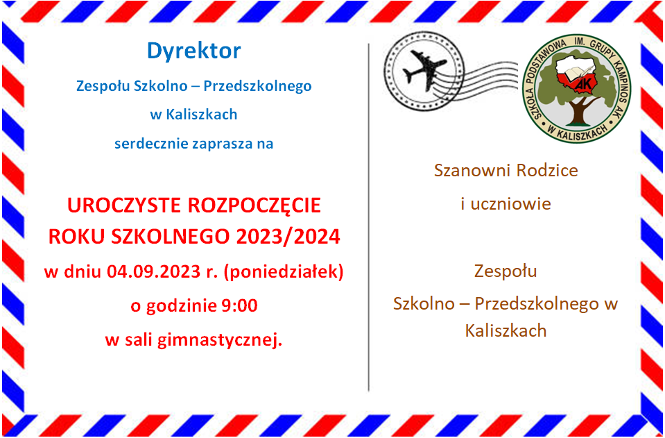 • Organizacja Roku Szkolnego 2025/2026 w Szkole Podstawowej im. Grupy Kampinos AK w Kaliszkach