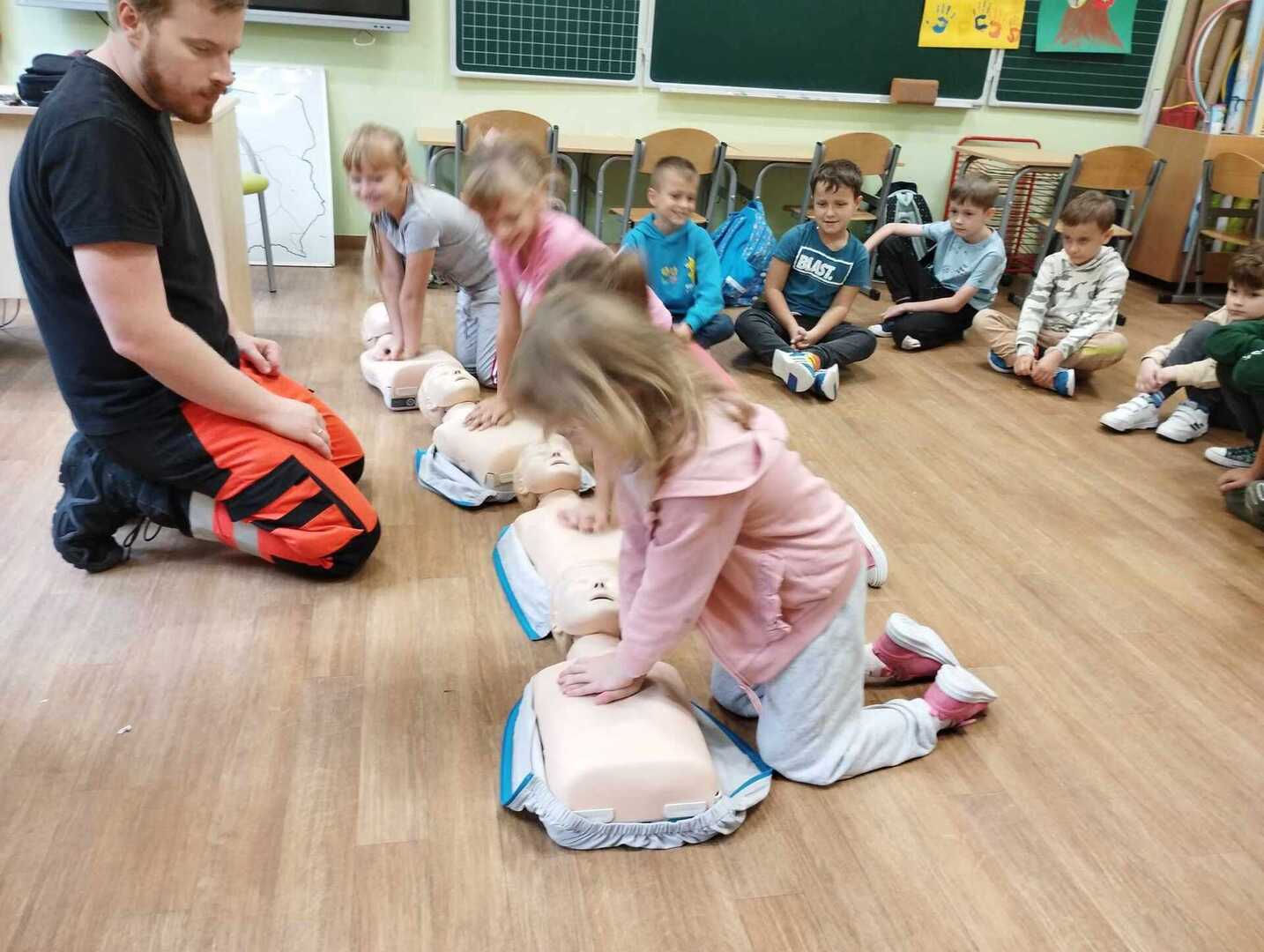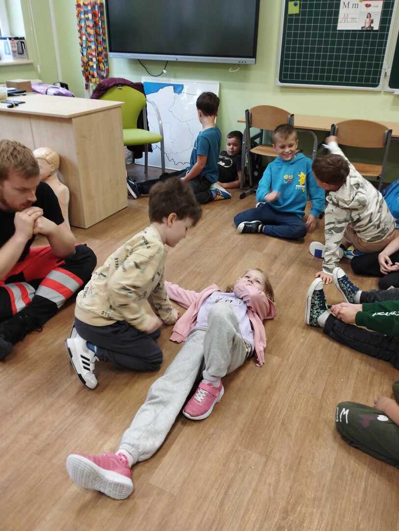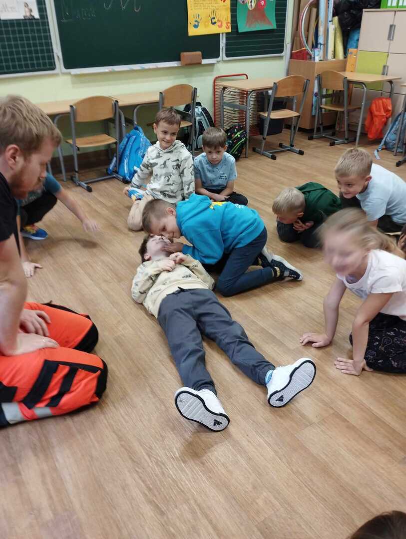Dzieci dowiedziały się w jaki sposób zgłaszać wypadek, jakie informacje podać dyspozytorowi. Poznały podstawowe zabiegi resuscytacyjne na miarę swoich możliwości ćwicząc na fantomie . Nauczyły się jak sprawdzić tętno i jak ułożyć poszkodowanego w pozycji bocznej bezpiecznej. To było nie tylko bardzo miłe, ale przede wszystkim bardzo ważne spotkanie.