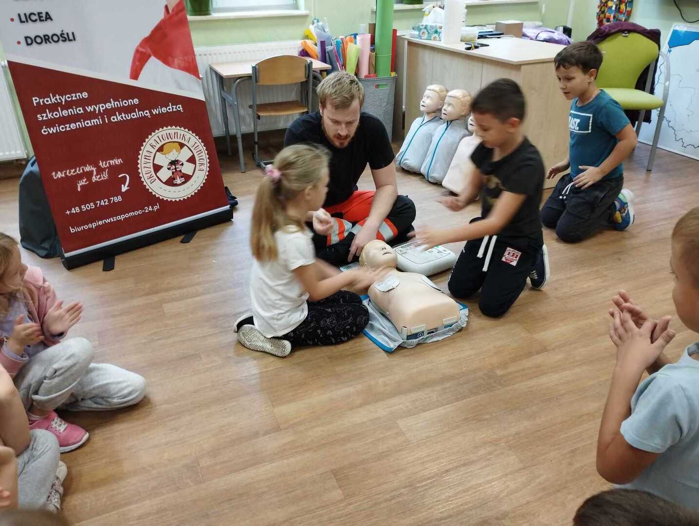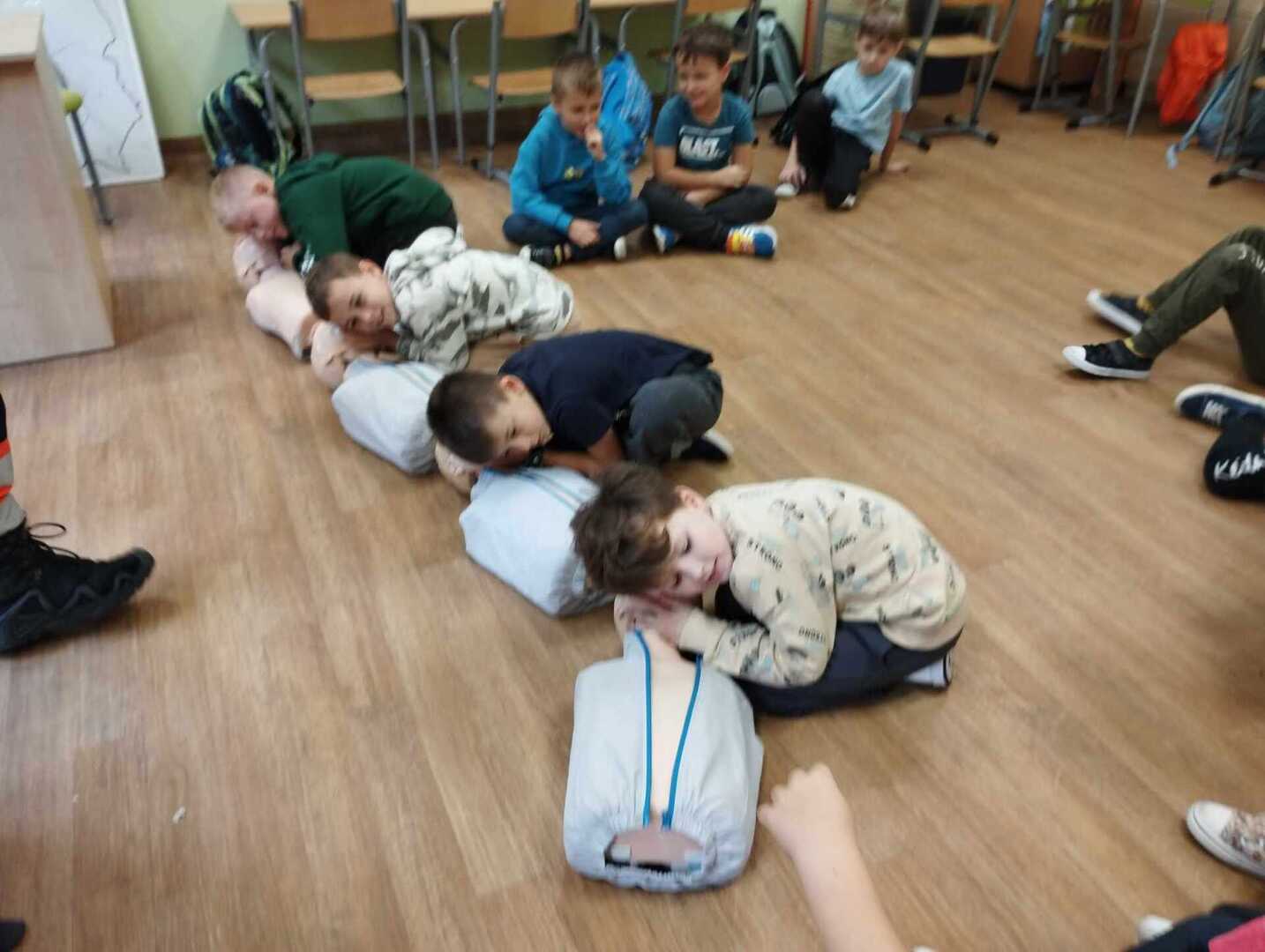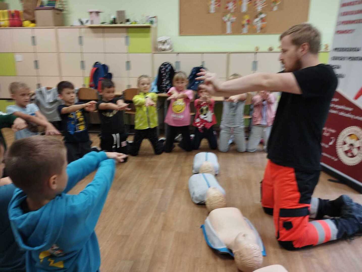 Dzieci dowiedziały się w jaki sposób zgłaszać wypadek, jakie informacje podać dyspozytorowi. Poznały podstawowe zabiegi resuscytacyjne na miarę swoich możliwości ćwicząc na fantomie . Nauczyły się jak sprawdzić tętno i jak ułożyć poszkodowanego w pozycji bocznej bezpiecznej. To było nie tylko bardzo miłe, ale przede wszystkim bardzo ważne spotkanie.