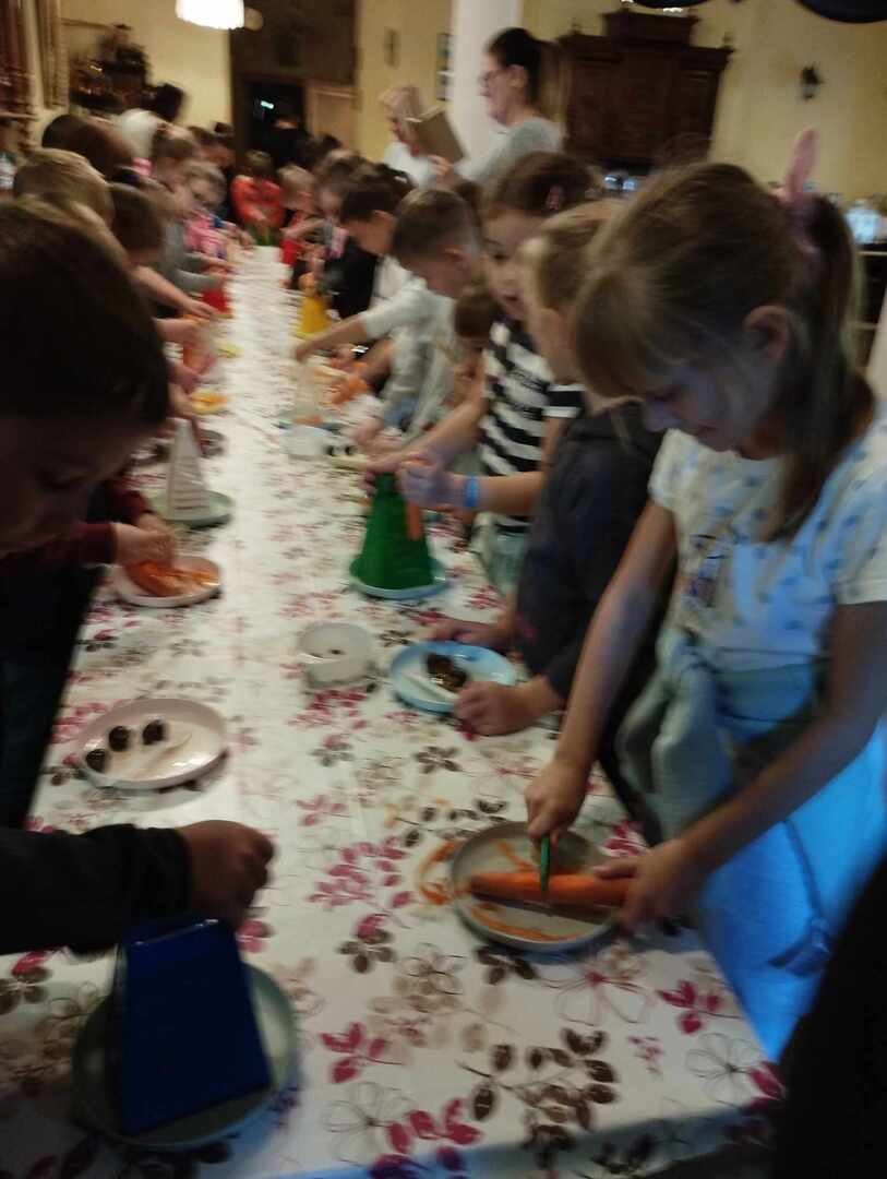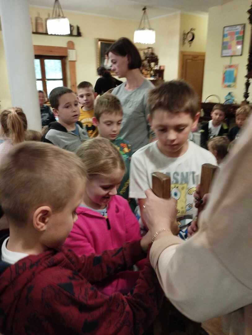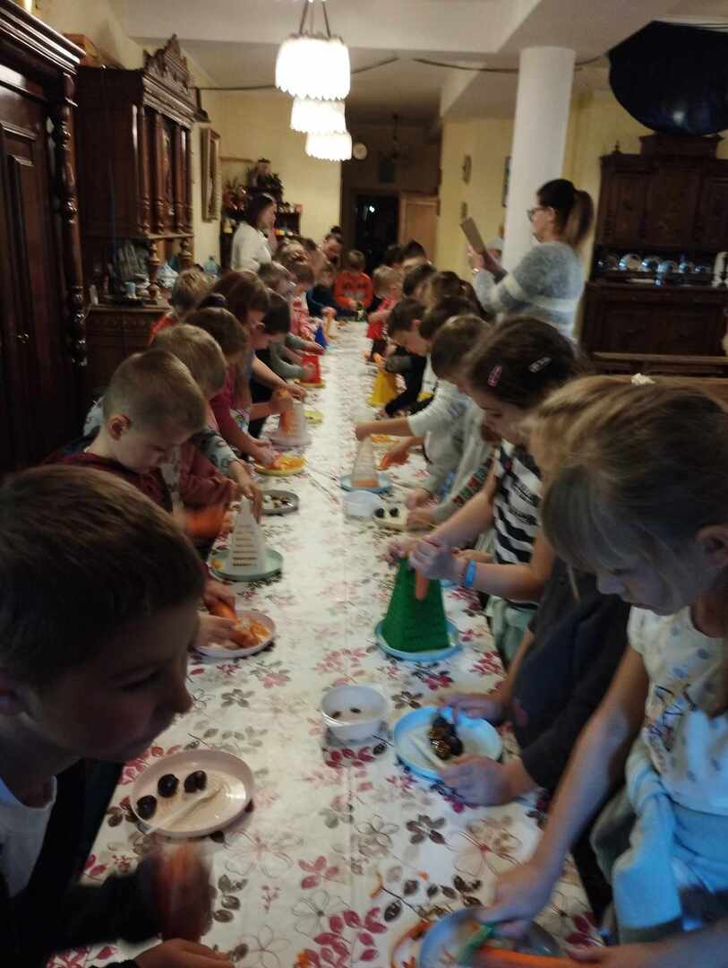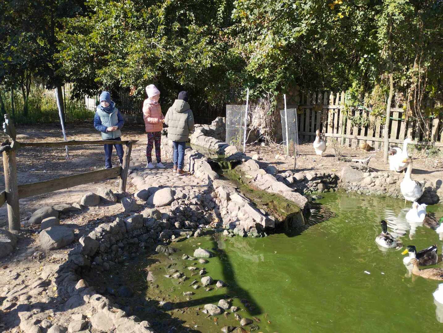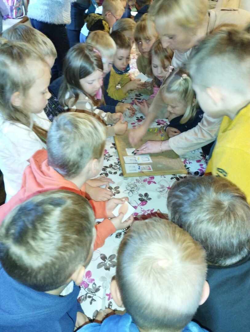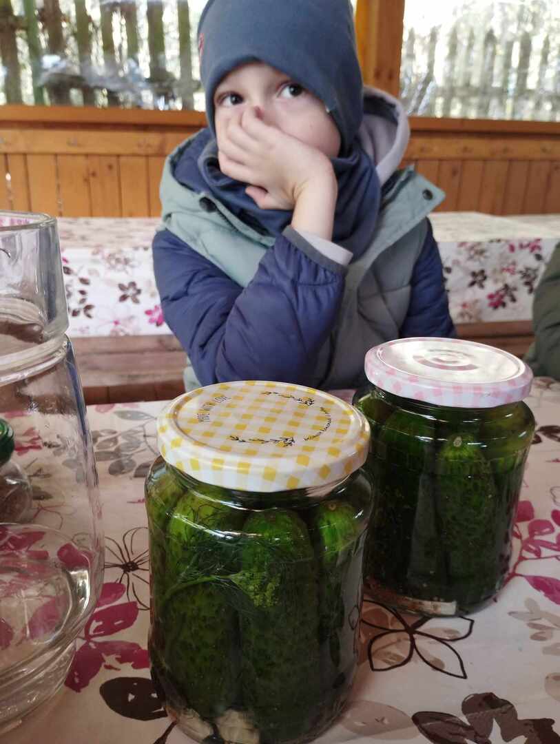 18 października uczniowie klas 0-3 wyruszyły na wycieczkę do gospodarstwa agroturystycznego „Wymysły pod Lasem”. Wielki rwetes był u Basi, bo kapustę Basia kwasi. Jednak nim to zrobi, musi przygotować produkty niezbędne do kiszenia. I tu z pomocą przyszły dzieci. Obieranie, tarcie, czy szatkowanie warzyw dostarczyło milusińskim wielu emocji. Oprócz kiszenia dzieci poznały inne naturalne sposoby konserwowania żywności. Była też okazja do upieczenia ciasta ze śliwkami. I to według przepisu prosto z piosenki. Po pracy związanej z przetworami, dzieci przygotowały „warzywne ogródki” do zakonserwowania w domu. W czasie posiłków na warsztatach dzieci próbowały kiszonej kapusty oraz własnoręcznie upieczonego ciasta – na deser oczywiście. Duży plac zabaw sprzyjał grze w piłkę, „wykopaliskom” w piasku i wielu innym aktywnościom. Podczas wizyty u Basi dzieci odwiedziły również zagrodę ze zwierzętami, gdzie karmiły kozy, owce, gęsi, kury i króliki. To była pełna radości, niezapomniana wycieczka, która na długo pozostanie w naszej pamięci.
