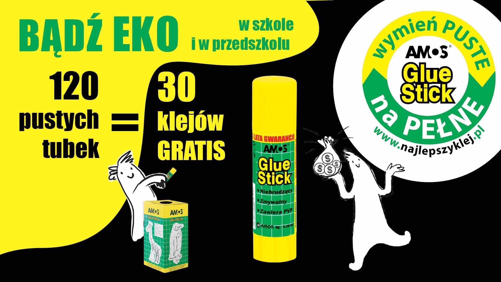 nasza Szkoła dołączyła do kolejnej akcji ekologicznej. Tym razem zwracamy się do Państwa o dostarczenie do szkoły pustych opakowań po kleju w sztyfcie firmy Amos (ilustracja opakowania poniżej).