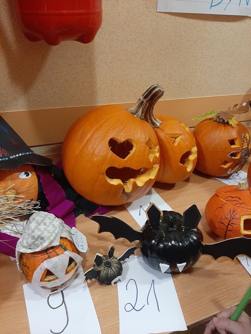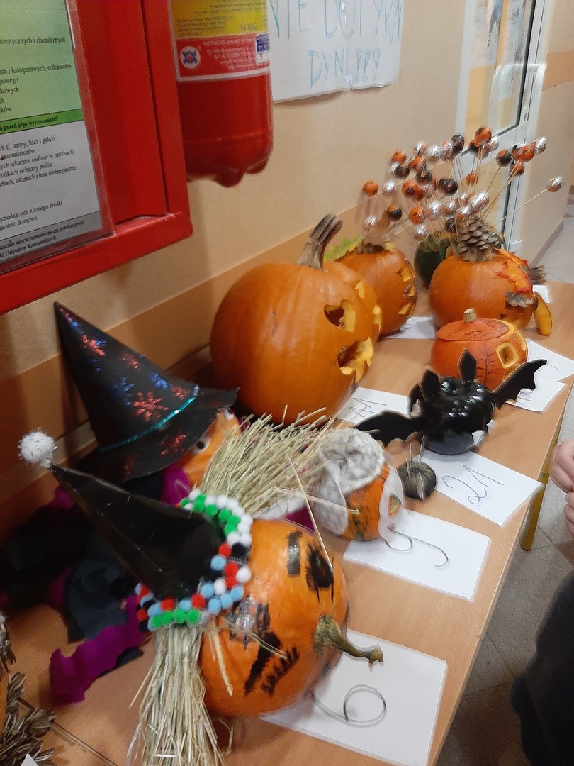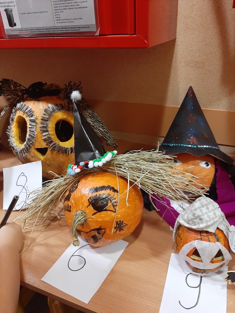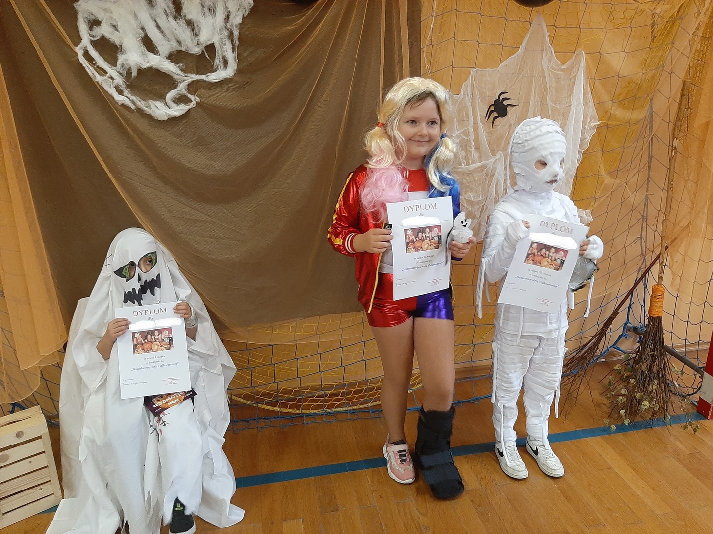 Dzieci oceniły i wybrały najpięknięjszą ich zdaniem dynię. Powołana komisja konkursowa oceniła przebrania uczniów i dokonała wyboru najciekawszch prezentacji strojów.