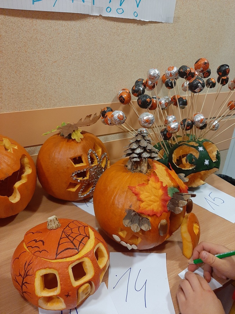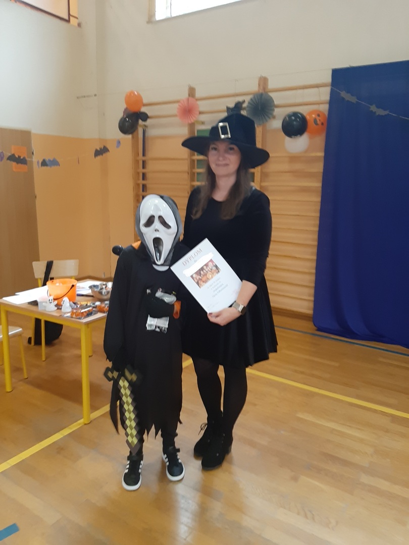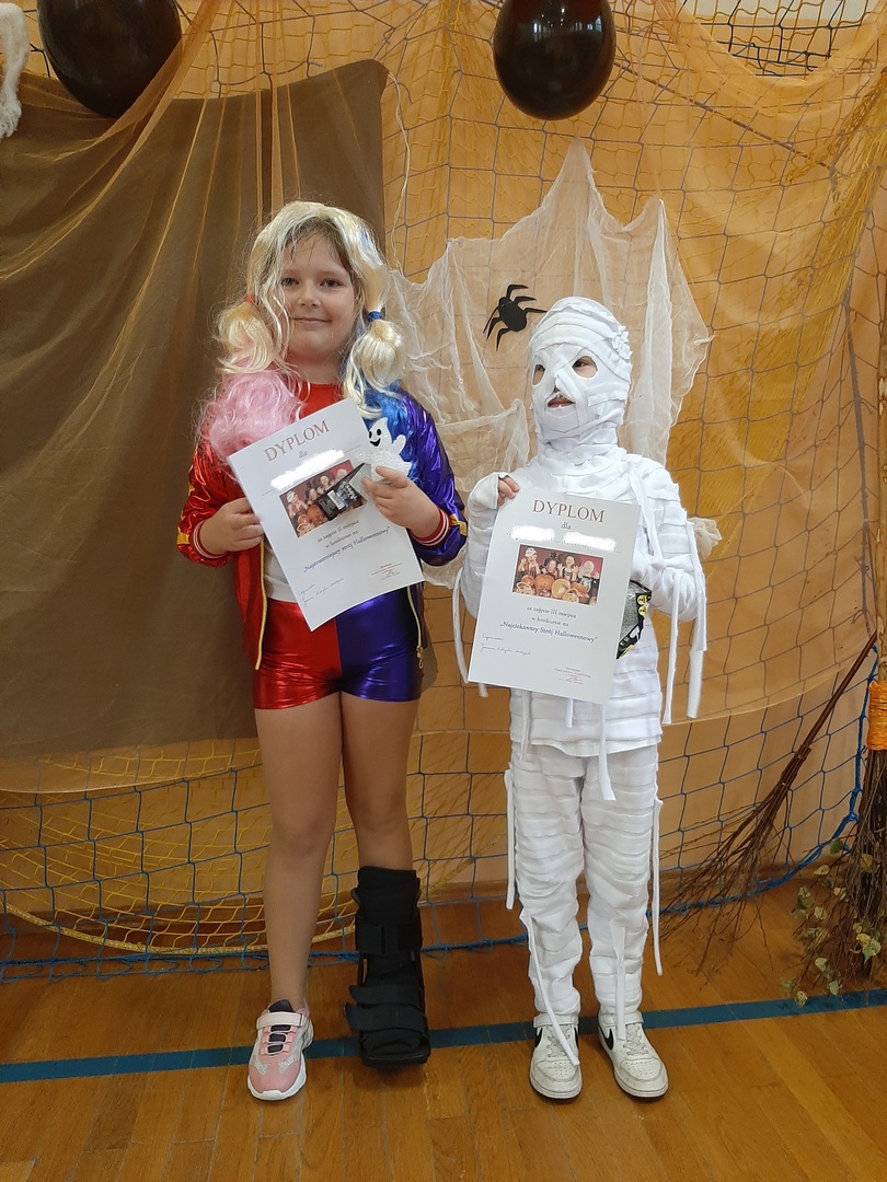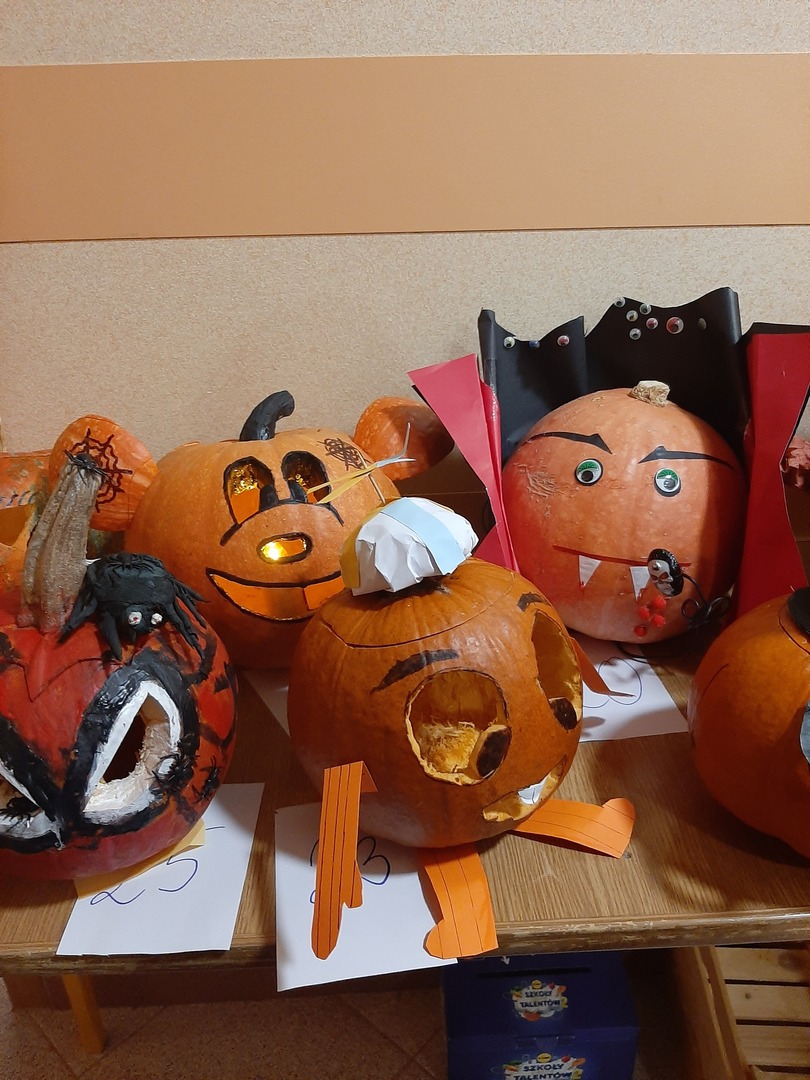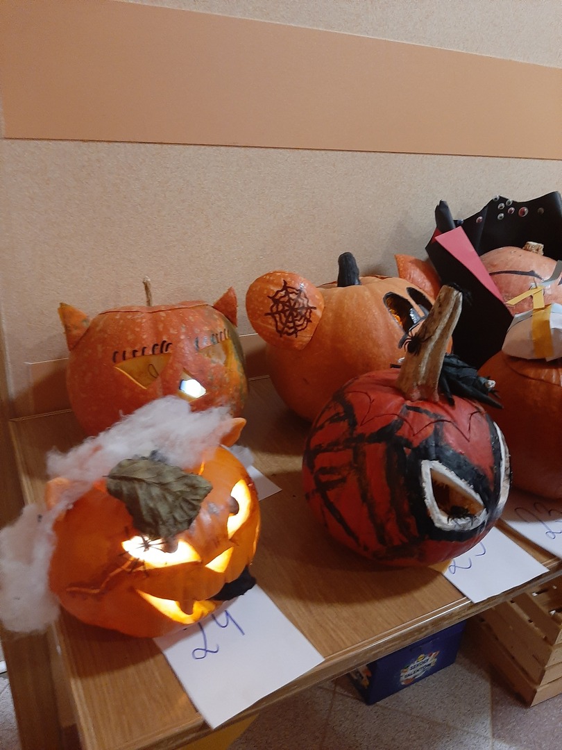 Dzieci oceniły i wybrały najpięknięjszą ich zdaniem dynię. Powołana komisja konkursowa oceniła przebrania uczniów i dokonała wyboru najciekawszch prezentacji strojów.
