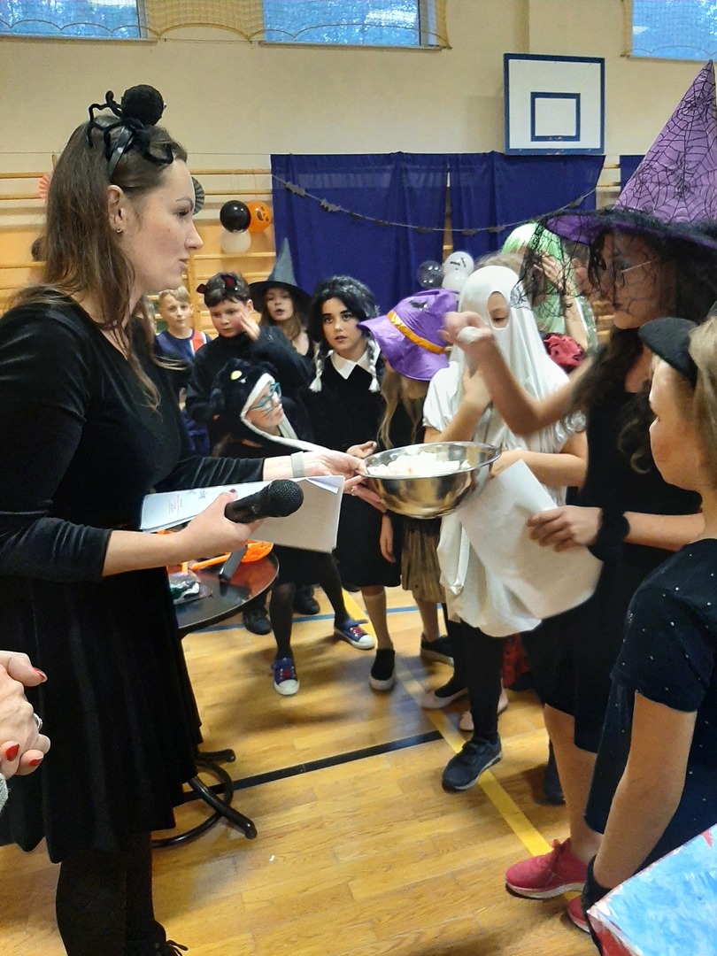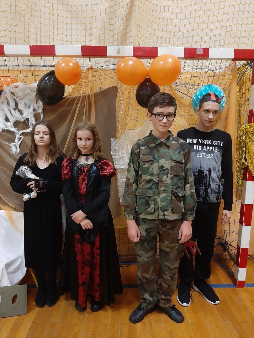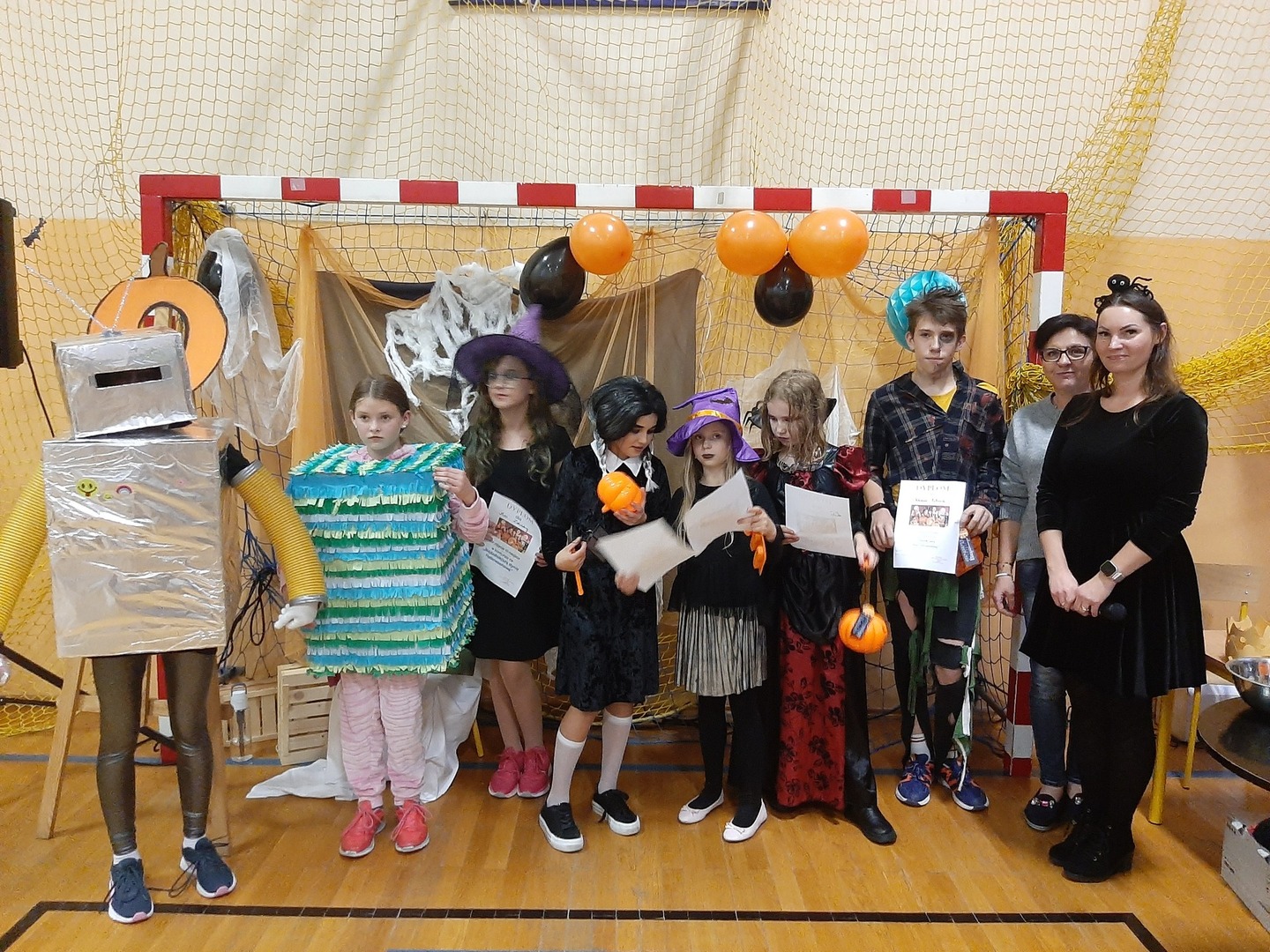W piątek (27.10.2023 r.) w naszej szkole odbył się tradycyjny bal Halloweenowy. Tego dnia uczniowie wzięli udział w kilku konkursach Halloweenowych organizowanych przez nauczyciela języka angielskiego p. Joannę Wczysłą-Matysiuk.