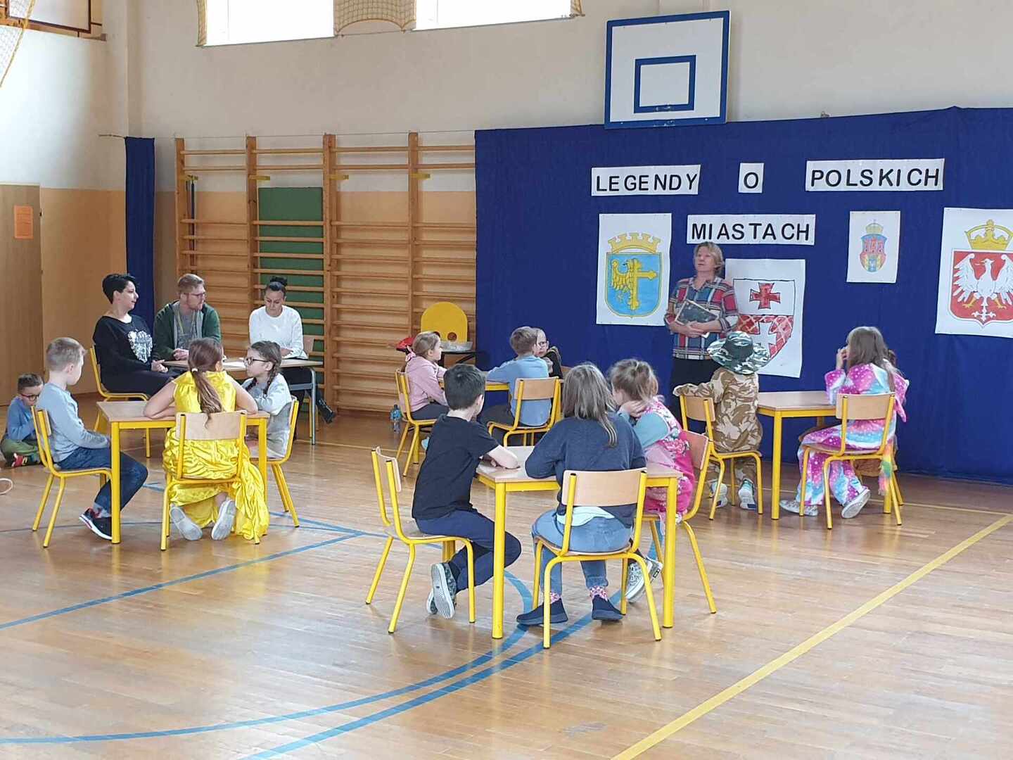 Dzieci odpowiadały w zespołach klasowych na pytania dotyczące przeczytanych tekstów. Wzięły udział w zabawie rozpoznawania za pomocą zmysłu dotyku ukrytego przedmiotu i dopasowywali go do właściwego tekstu literackiego. Każda klasa przygotowała logo wybranego przez siebie omawianego miasta. Uczestnikom i widowni towrzyszyły ogromne emocje. Każda z reprezentacji chciała wystąpić najlepiej jak tylo mogła.