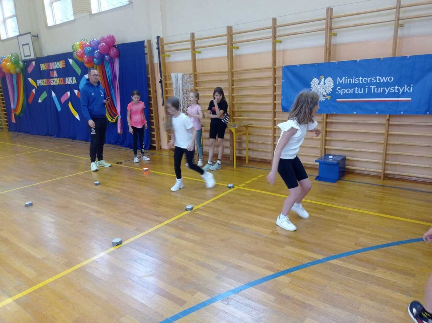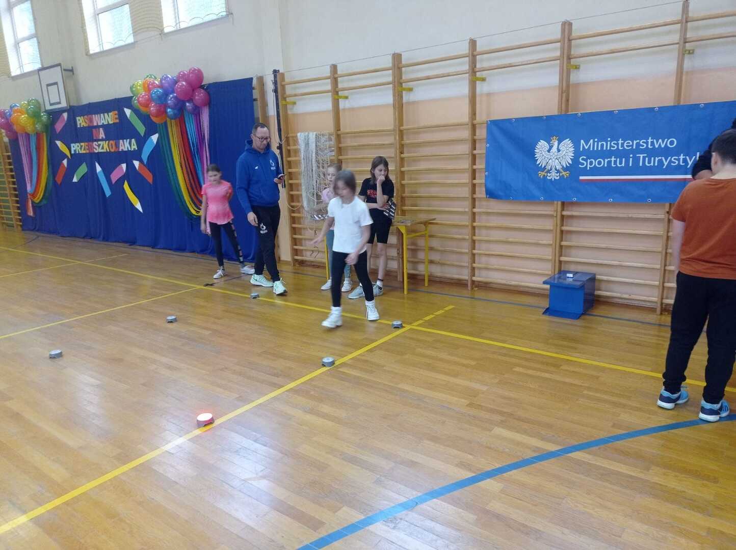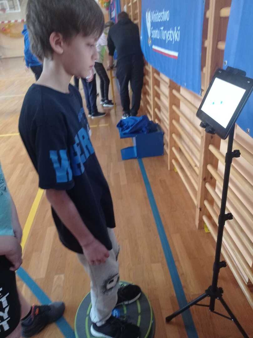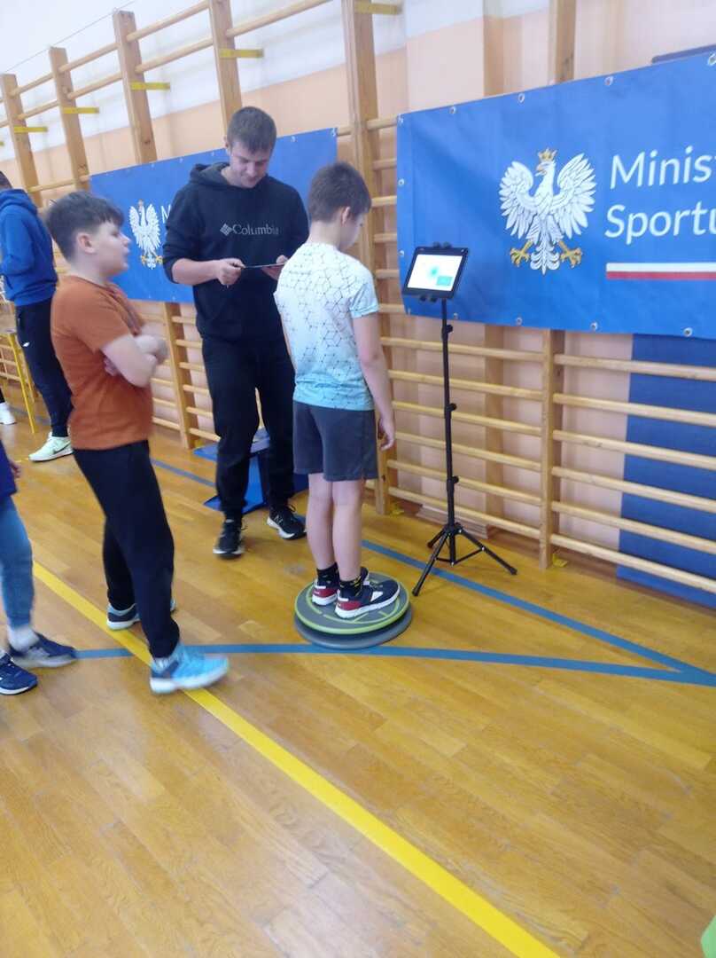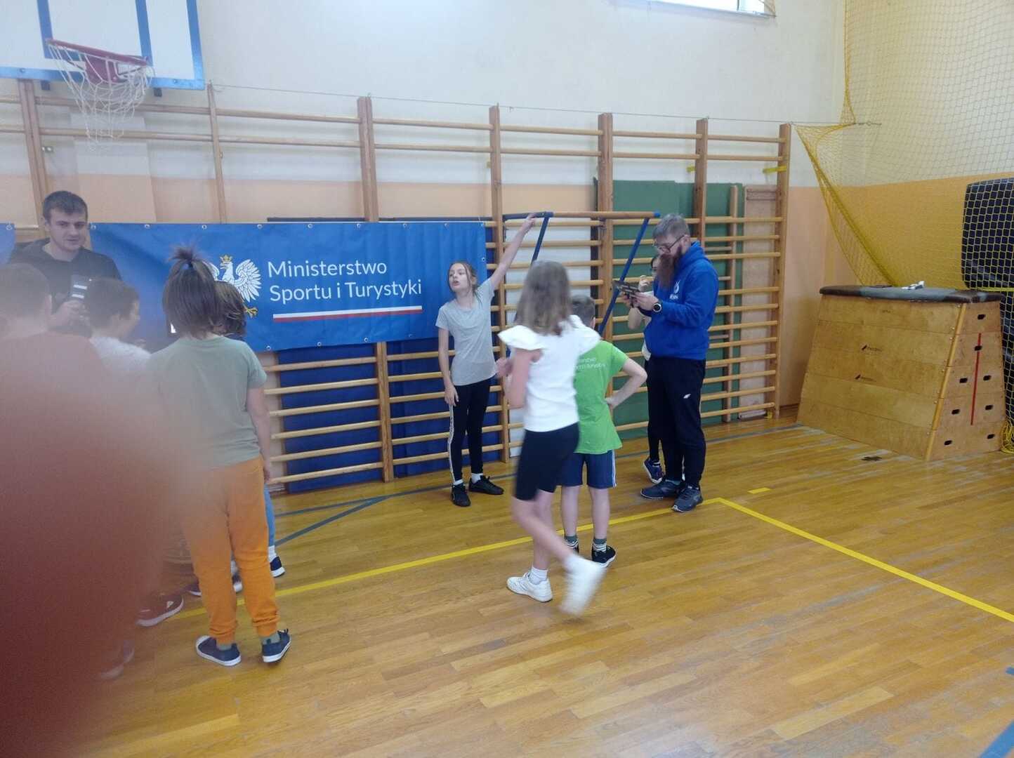 W dniu 17.11. do szkoły zawitali z programem sportowym panowie z Ministerstwa Sportu i Turystyki. Specjaliści zorganizowali dla uczniów klas IV-VI specjalistyczny tor przeszkód. Podczas jego pokonywania dzieci mogły zmierzyć szybkość swojego refleksu, gibkość (głębokość skłonu), wytrzymałość (zwis na drążku), skoczność, siłę poprzez oraz równowagę. Jesteśmy zadowoleni z przeprowadzonych prób i mieliśmy dużo wrażeń za co jesteśmy bardzo wdzięczni Ministerstwu i Panom organizatorom