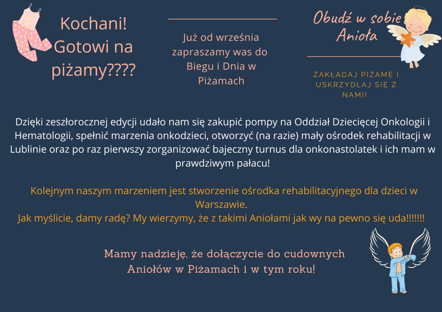 W najbliższy piątek 05.01 w naszej Szkole odbędzie się Dzień Piżamy. Tego dnia zachęcamy do założenia elementu garderoby, takiego jak: piżama, szlafrok, koszula nocna, kapcie itp.