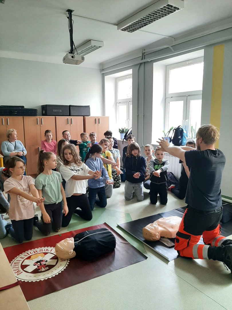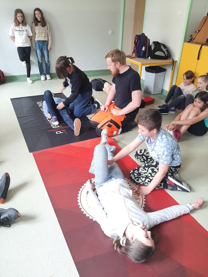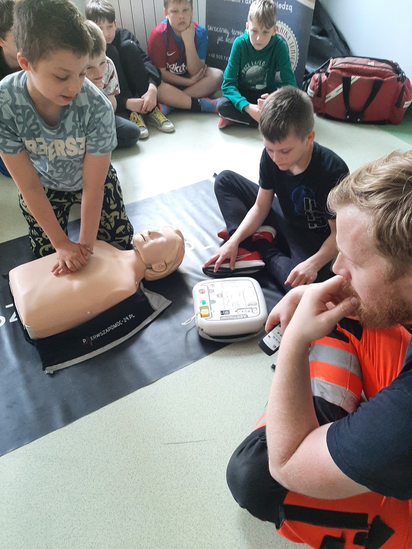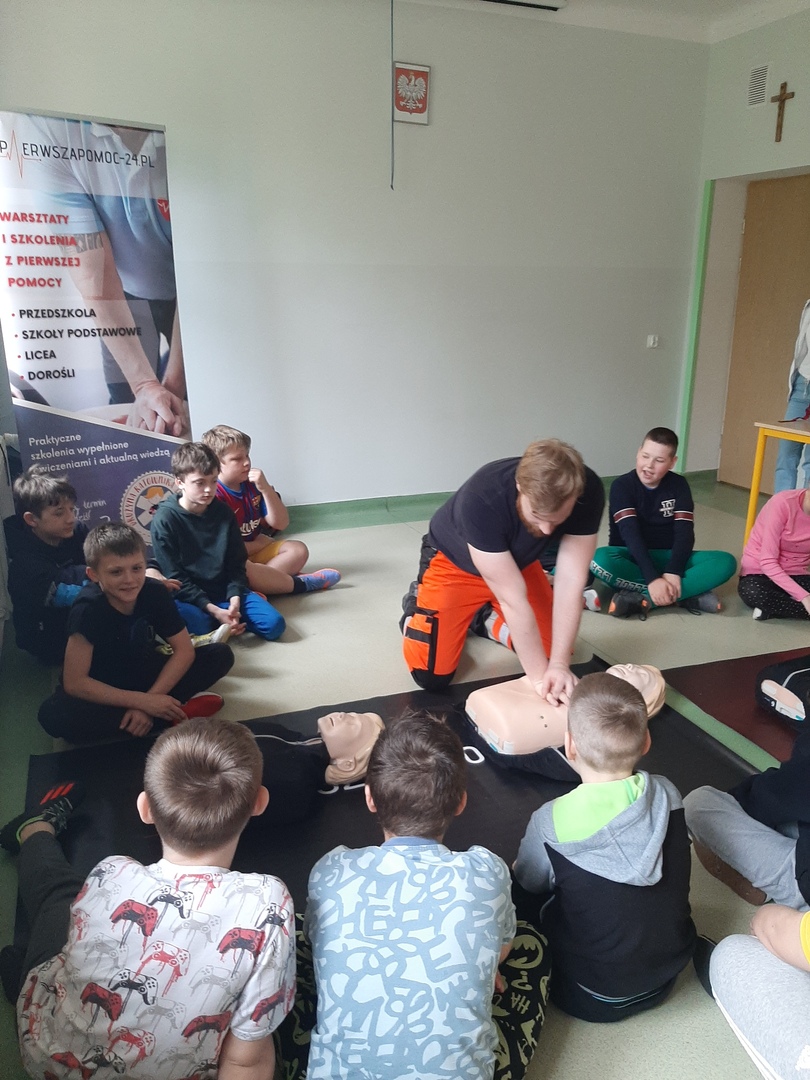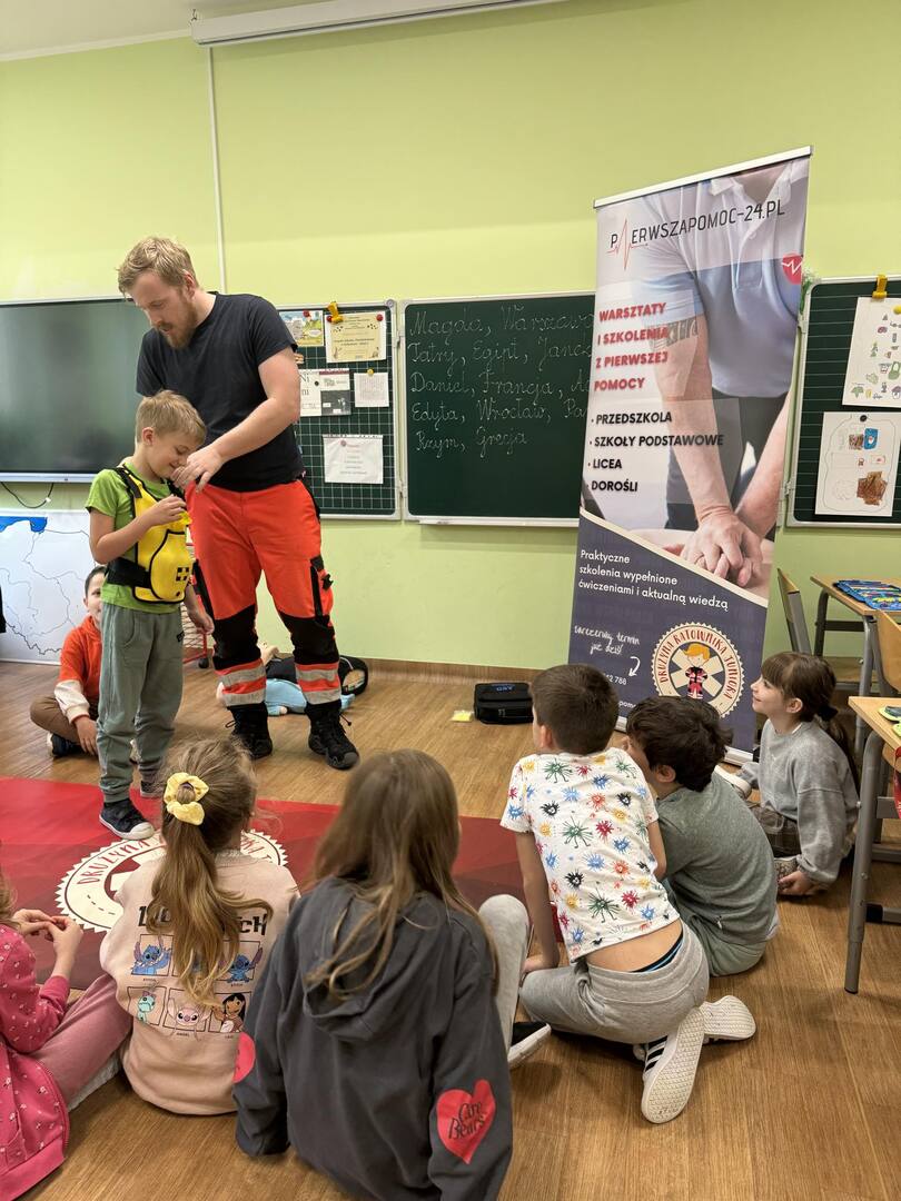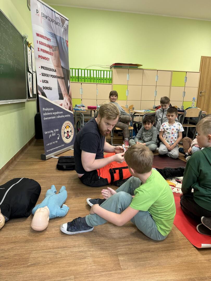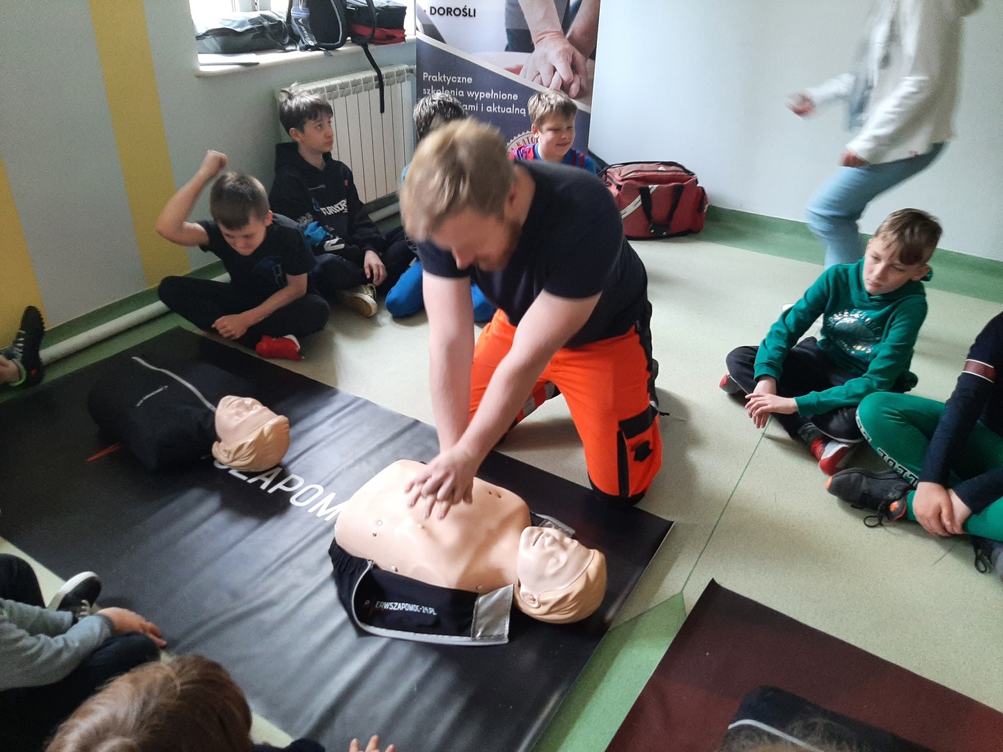 W piątek (12.04.2024 r.) w naszej szkole odbyły się kolejne warsztaty z udzielania pierwszej pomocy. Dla klasy pierwszej było to kolejne spotkanie z ratownikiem medycznym. Uczniowie klas IV – V po raz pierwszy mieli okazję obejrzeć profesjonale sprzęty medyczne. Nad całością warsztatów czuwał ratownik medyczny, który przybliżył uczestnikom wydarzenia procedurę udzielania pierwszej pomocy.