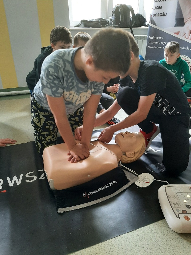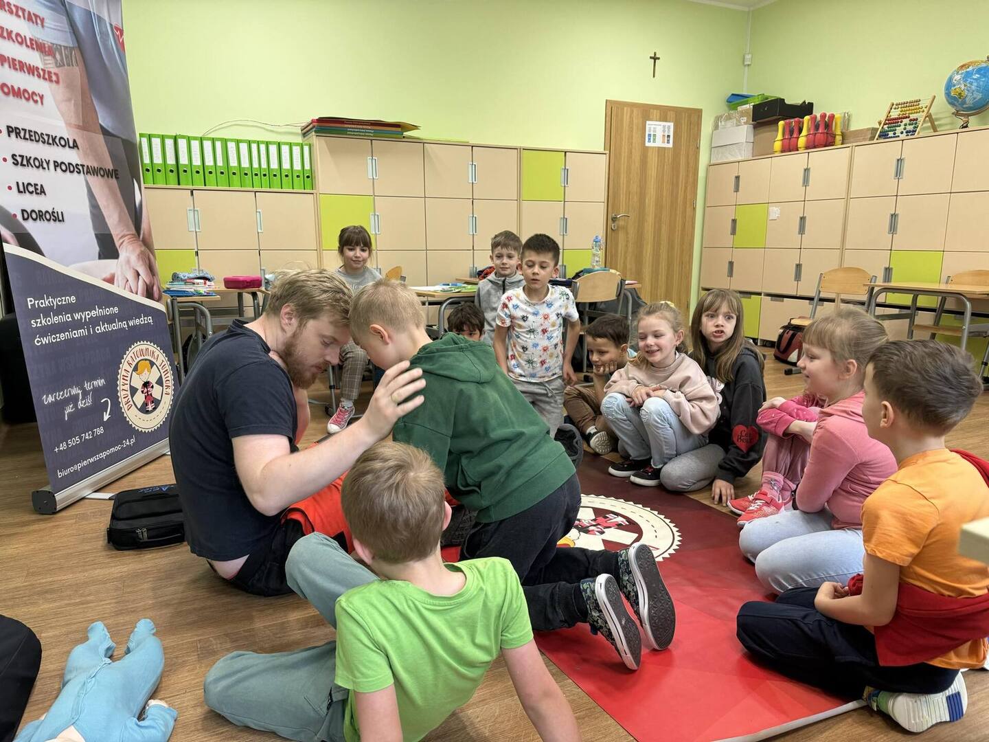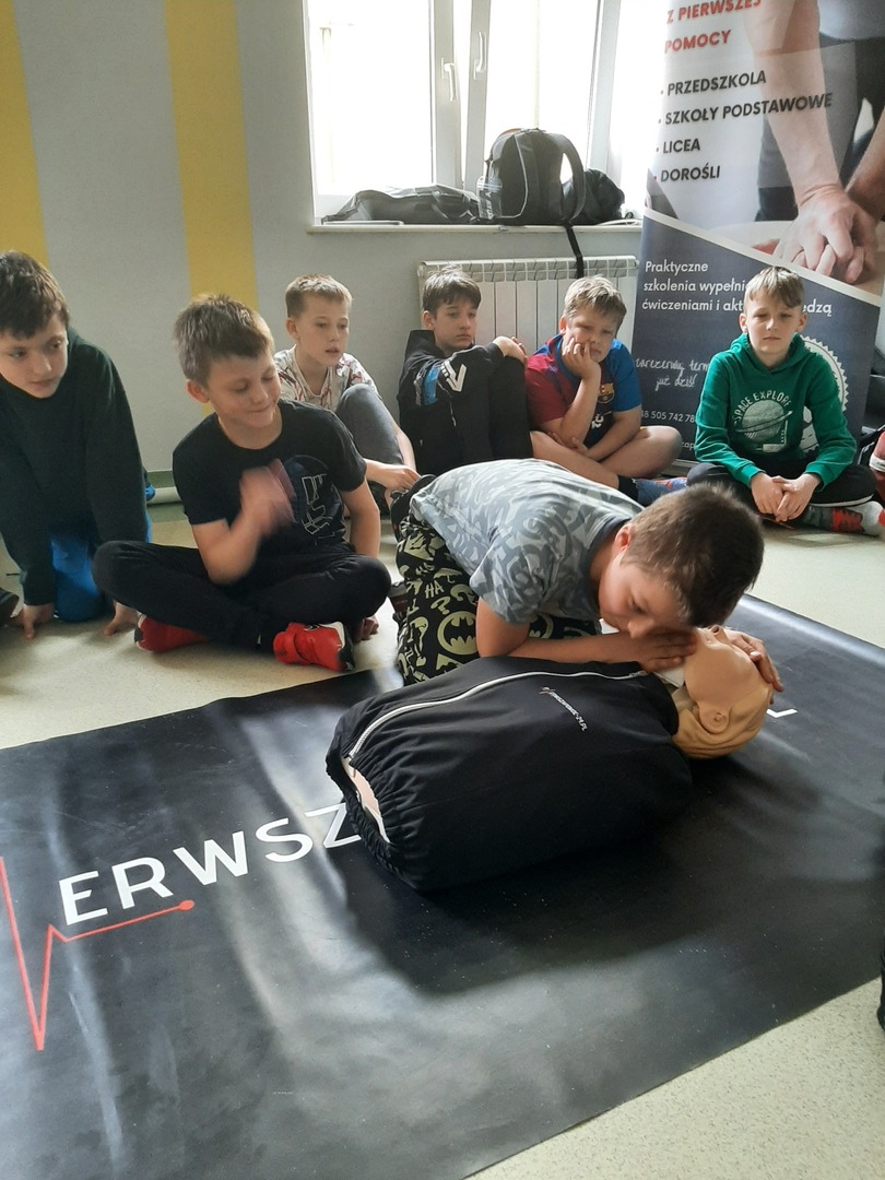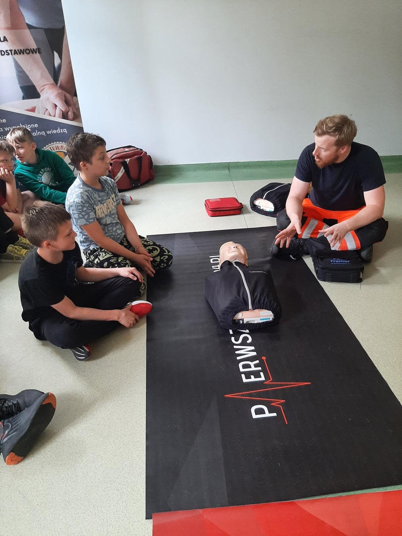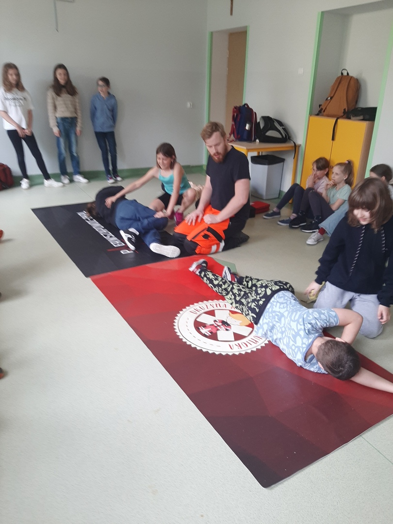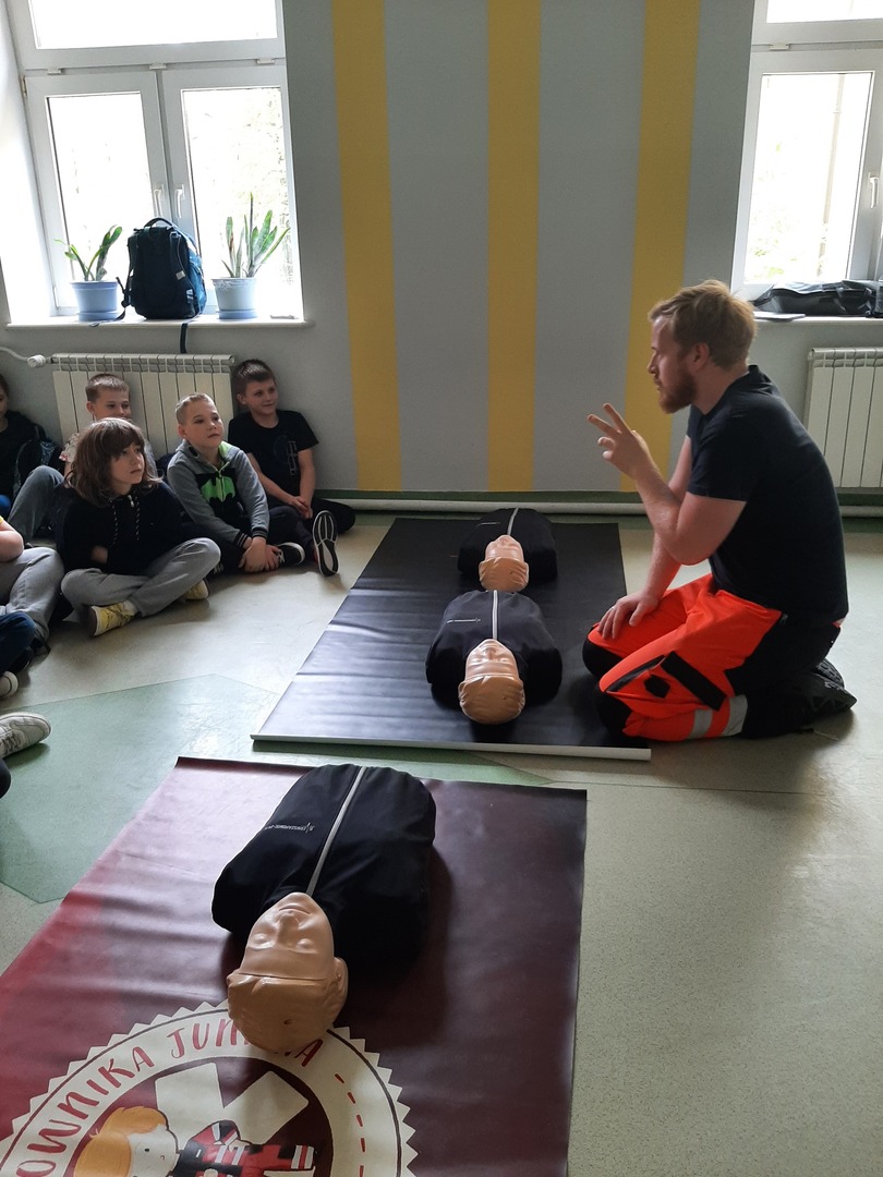 W piątek (12.04.2024 r.) w naszej szkole odbyły się kolejne warsztaty z udzielania pierwszej pomocy. Dla klasy pierwszej było to kolejne spotkanie z ratownikiem medycznym. Uczniowie klas IV – V po raz pierwszy mieli okazję obejrzeć profesjonale sprzęty medyczne. Nad całością warsztatów czuwał ratownik medyczny, który przybliżył uczestnikom wydarzenia procedurę udzielania pierwszej pomocy.