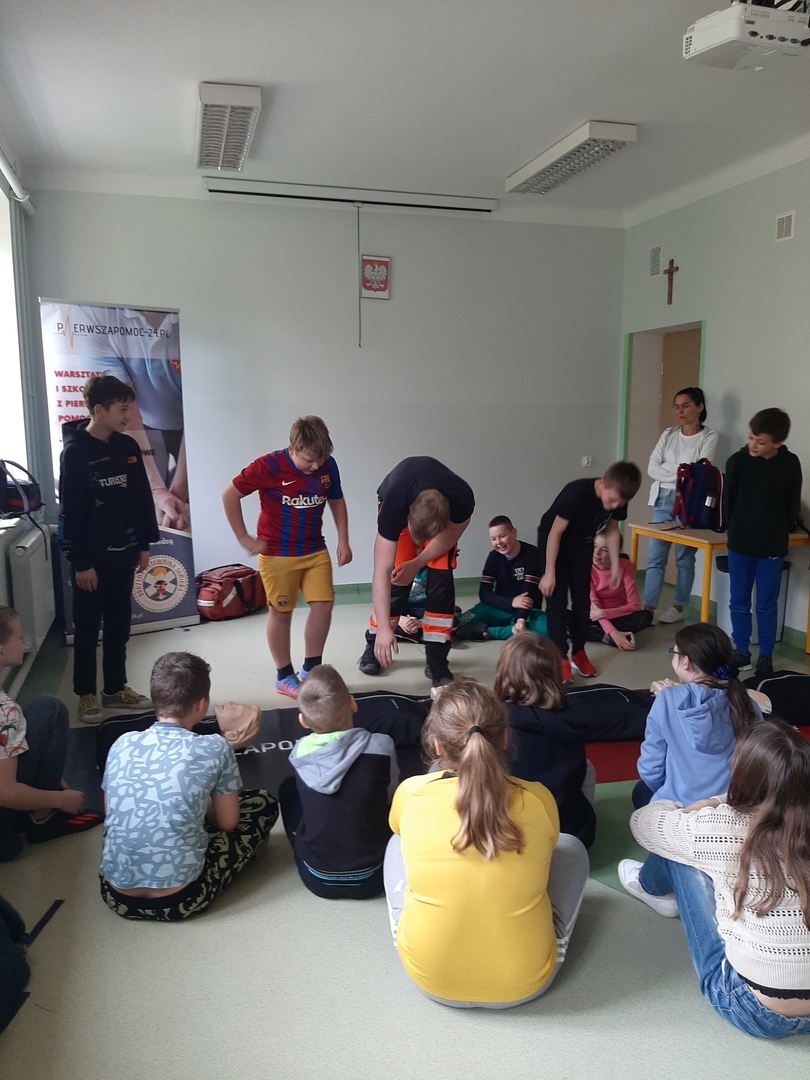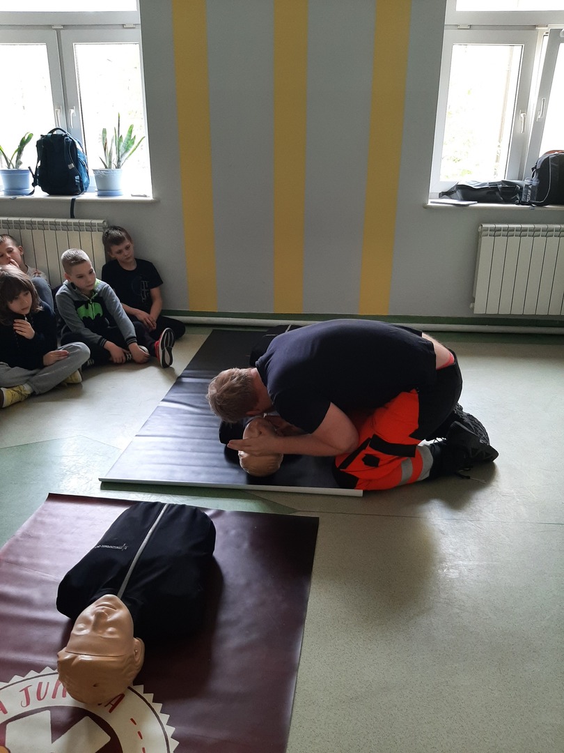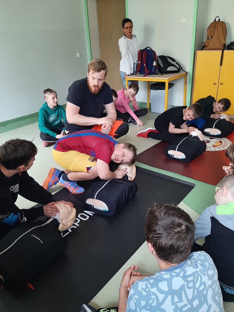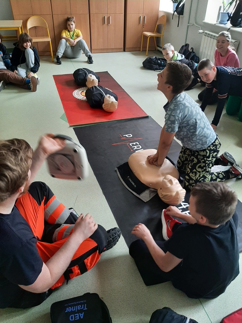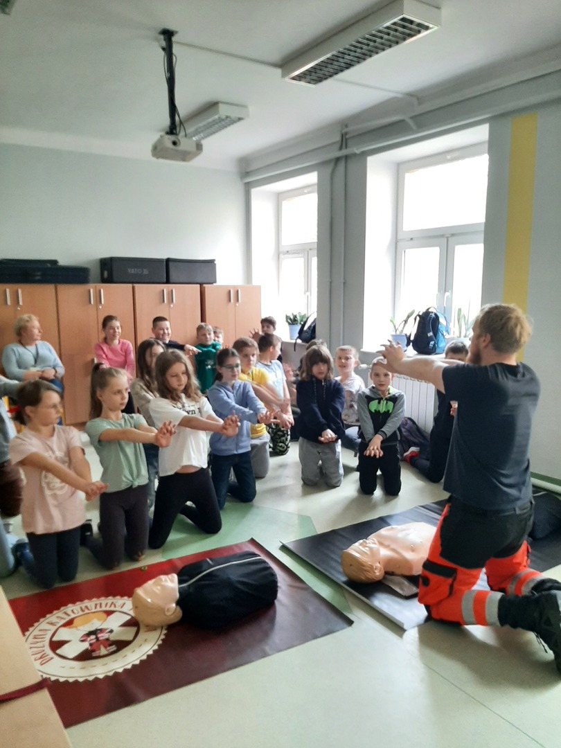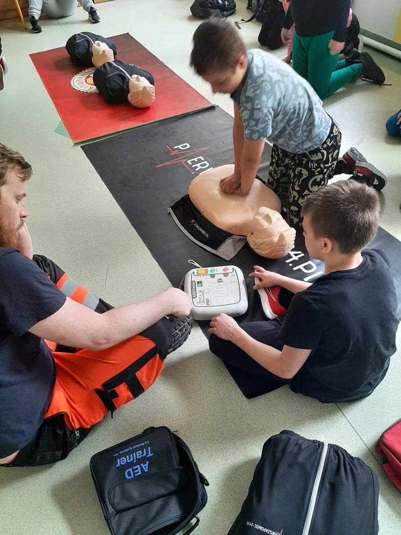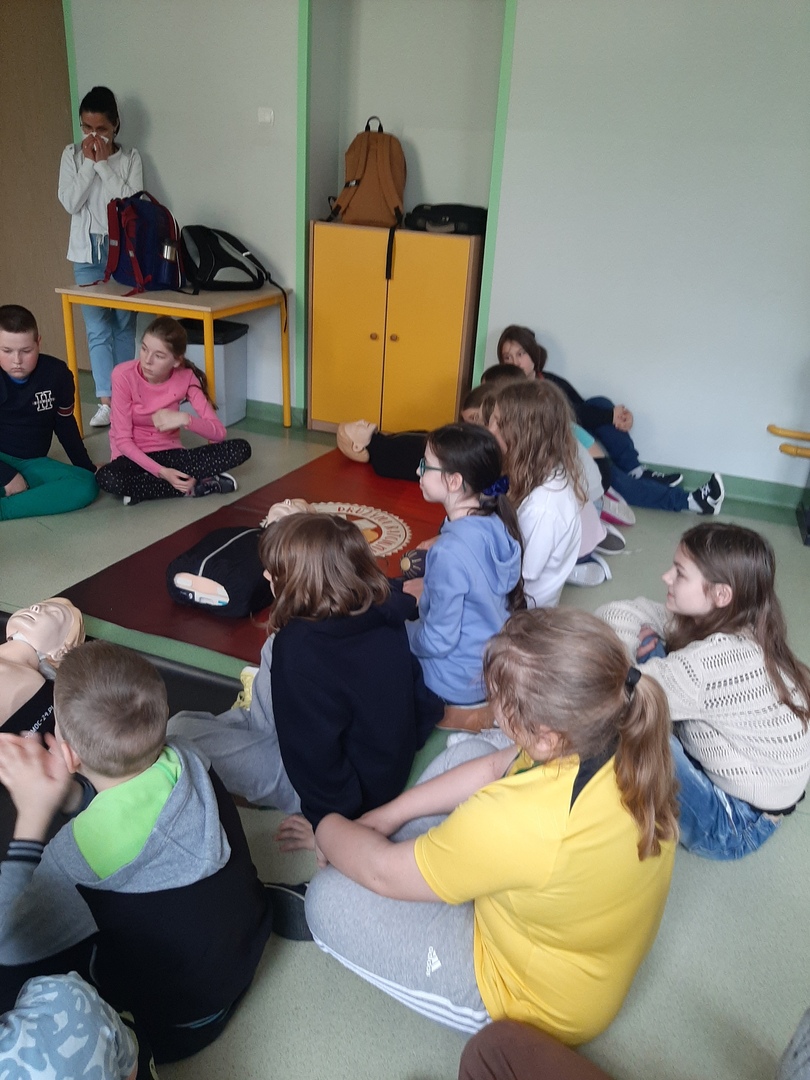 W piątek (12.04.2024 r.) w naszej szkole odbyły się kolejne warsztaty z udzielania pierwszej pomocy. Dla klasy pierwszej było to kolejne spotkanie z ratownikiem medycznym. Uczniowie klas IV – V po raz pierwszy mieli okazję obejrzeć profesjonale sprzęty medyczne. Nad całością warsztatów czuwał ratownik medyczny, który przybliżył uczestnikom wydarzenia procedurę udzielania pierwszej pomocy.