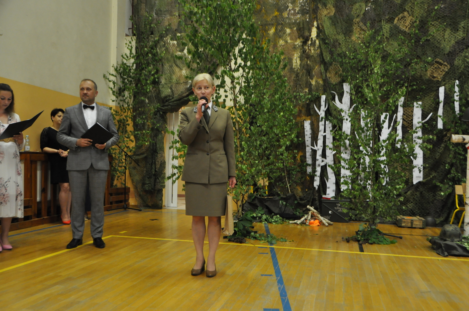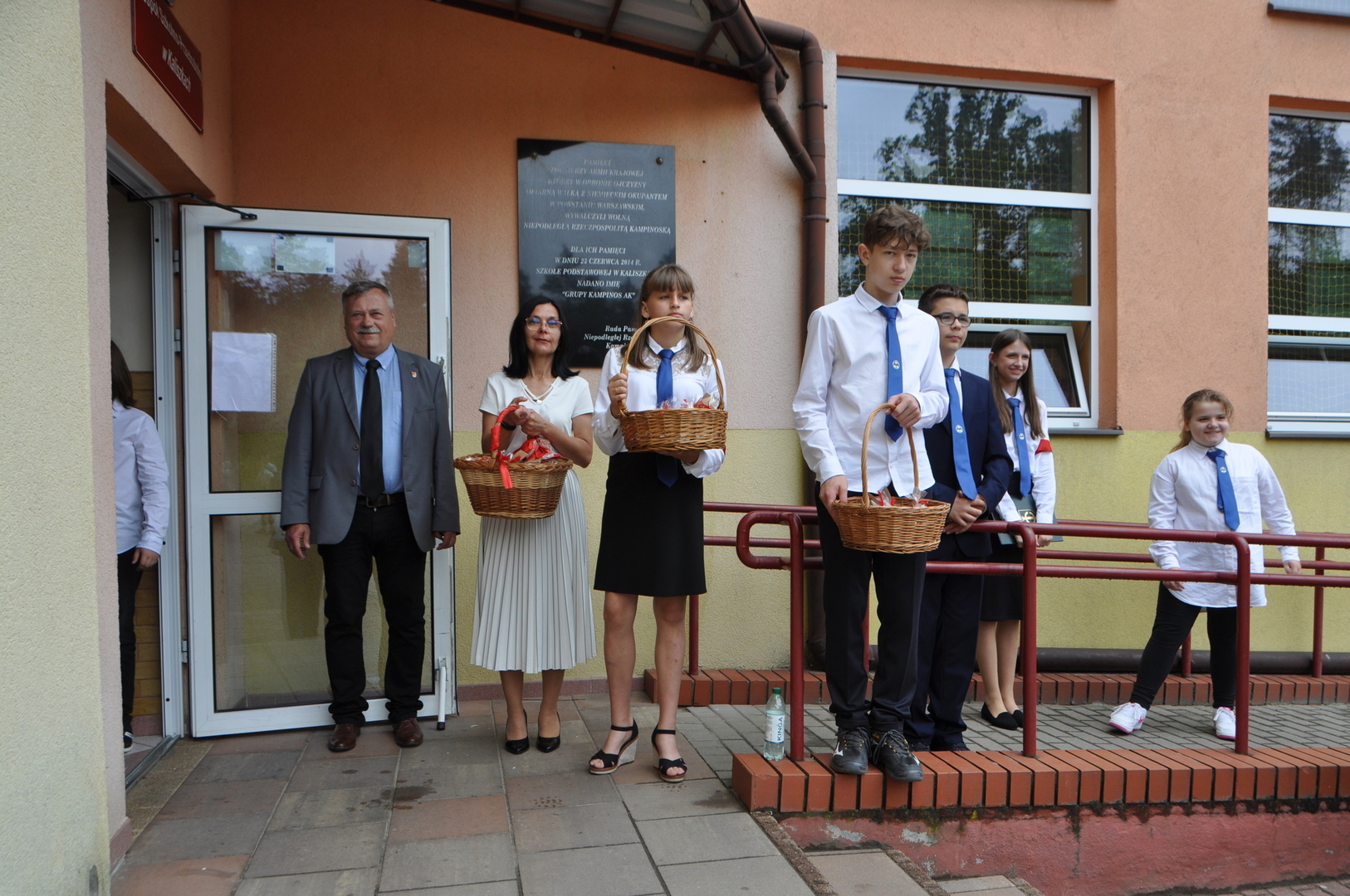 Punktualnie o godzinie 10:30 uroczystość rozpoczęła p. dyrektor Anna Tarsała. Powitała zebranych gości oraz zwróciła uwagę na wielką odpowiedzialność przy wyborze patrona placówki, którego należy naśladować w pracy, nauce i w życiu. Z perspektywy wydarzeń historycznych było oczywiste, że to właśnie bohaterowie Grupy Kampinos AK będą patronem naszej szkoły. Żołnierze Grupy Kampinos zapisali się na kartach historii jako Niepodległa Rzeczypospolita Kampinoska, walczyli z niemieckim okupantem na terenie Puszczy Kampinoskiej o wolność i niepodległość Polski.