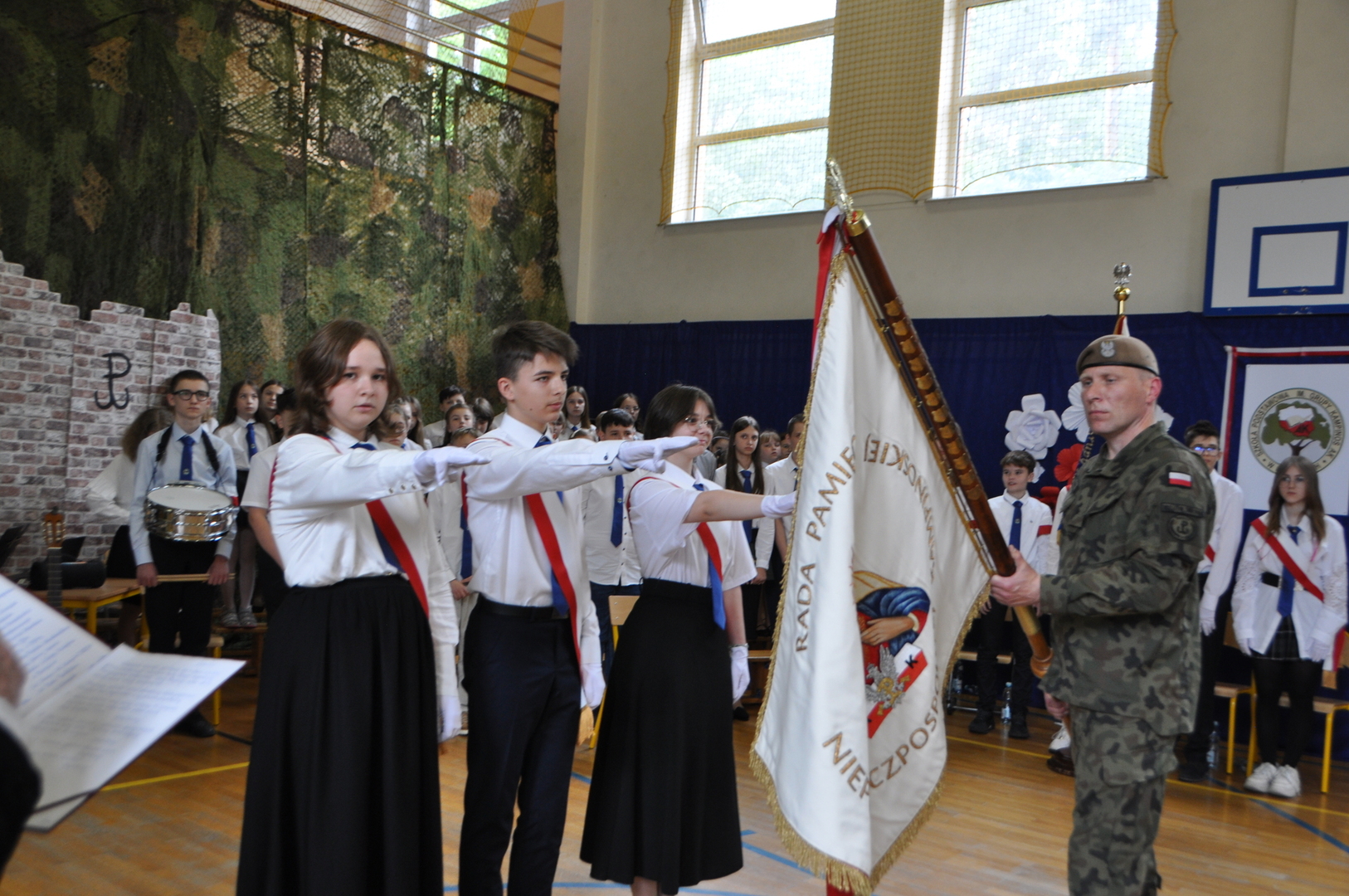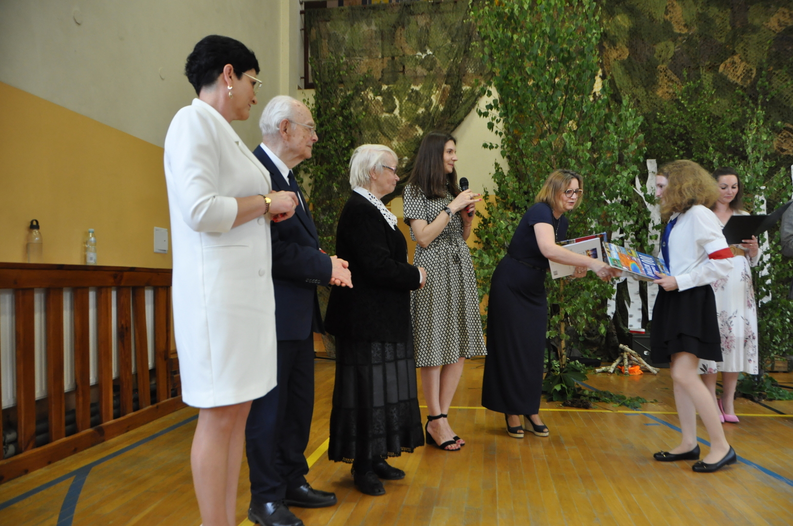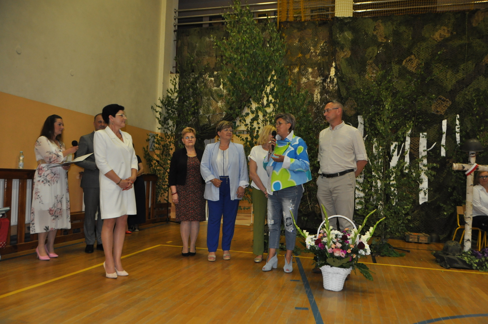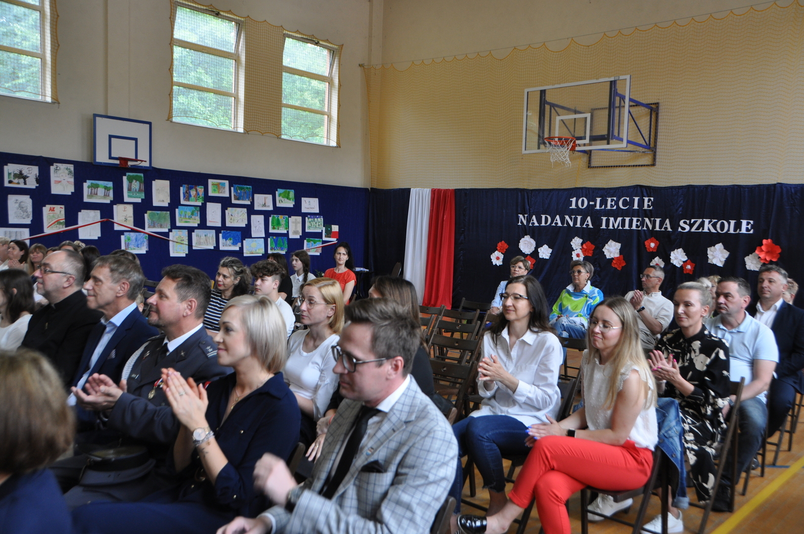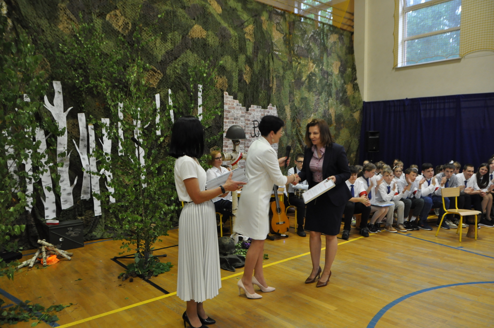 Jednym z ważniejszych punktów Jubileuszu było uroczyste przekazanie p. Dyrektor Annie Tarsale sztandaru Rady Pamięci Niepodległej Rzeczypospolitej Kampinoskiej przez panią Prezes RPNRK p. Urszulę Przymus. Ta chwila zapisała się na kartach historii szkoły złotymi literami ze względu na to, że otrzymaliśmy ważną pamiątkę związaną z działalnością żołnierzy Grupy Kampinos na naszym terytorium. W obecności wszystkich zebranych uczniowie złożyli uroczystą rotę przysięgi.