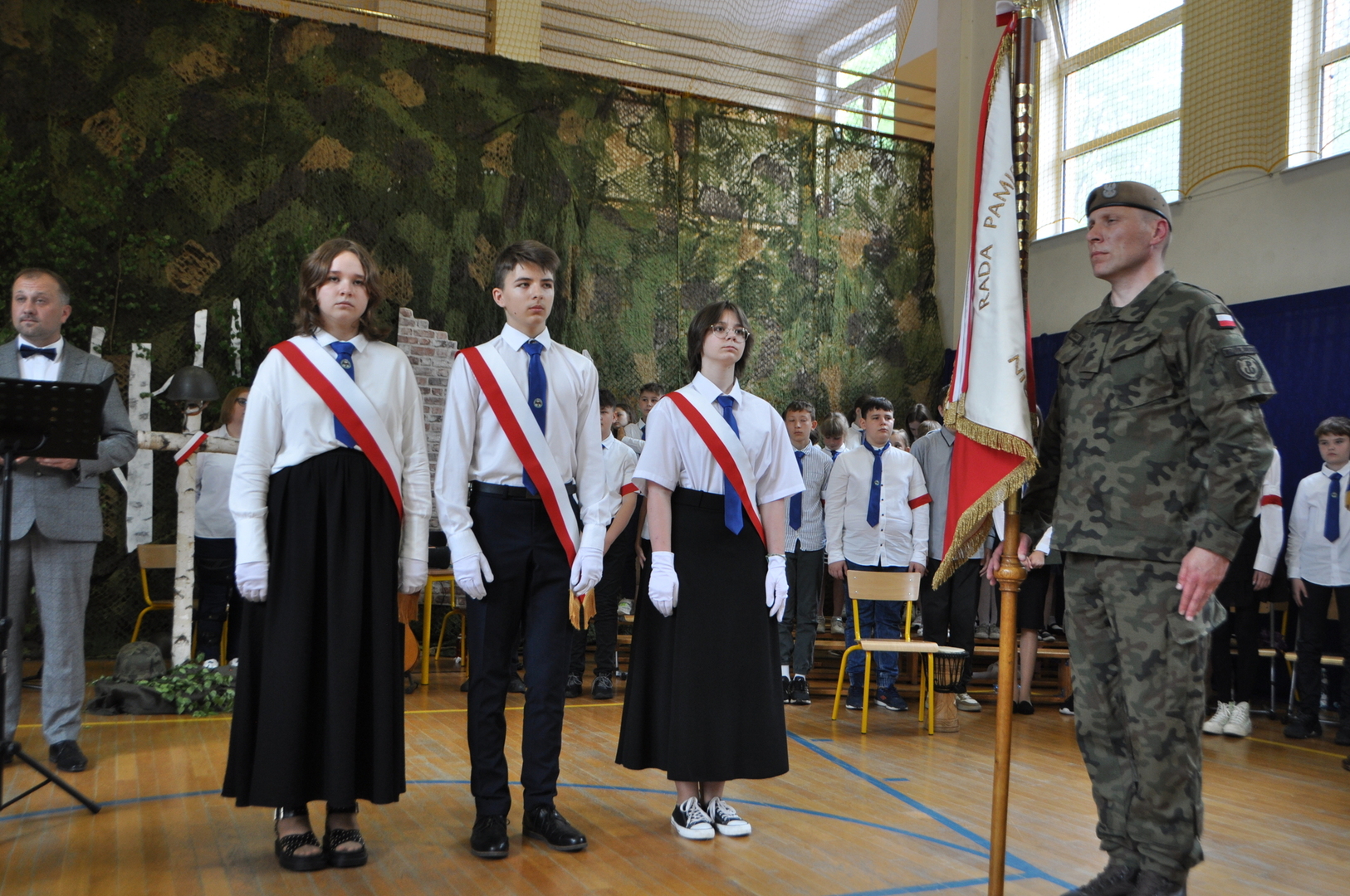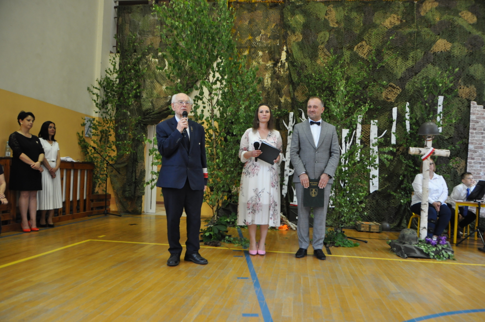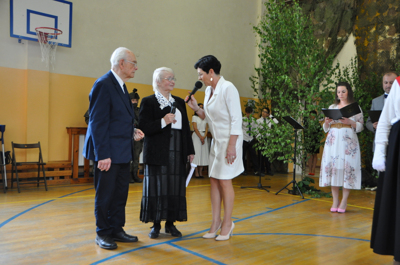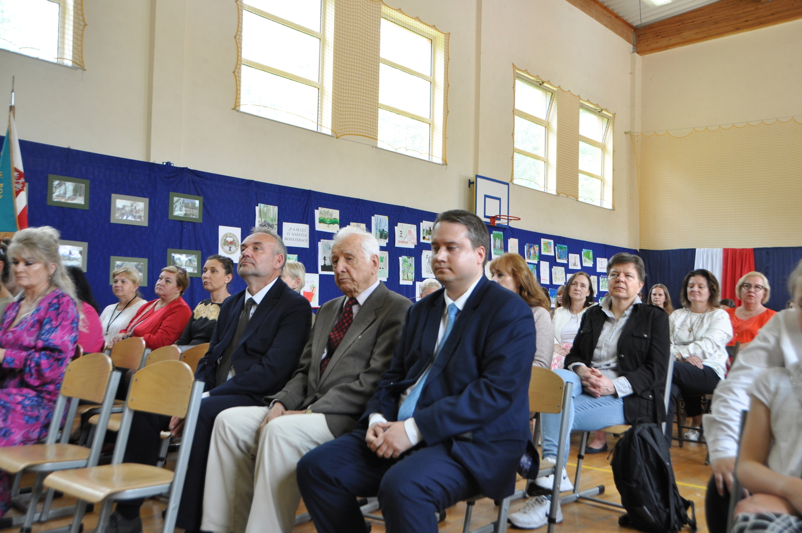 Jednym z ważniejszych punktów Jubileuszu było uroczyste przekazanie p. Dyrektor Annie Tarsale sztandaru Rady Pamięci Niepodległej Rzeczypospolitej Kampinoskiej przez panią Prezes RPNRK p. Urszulę Przymus. Ta chwila zapisała się na kartach historii szkoły złotymi literami ze względu na to, że otrzymaliśmy ważną pamiątkę związaną z działalnością żołnierzy Grupy Kampinos na naszym terytorium. W obecności wszystkich zebranych uczniowie złożyli uroczystą rotę przysięgi.